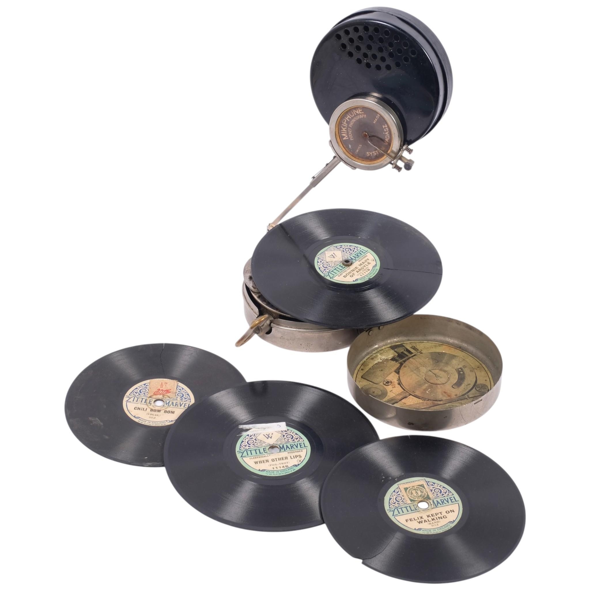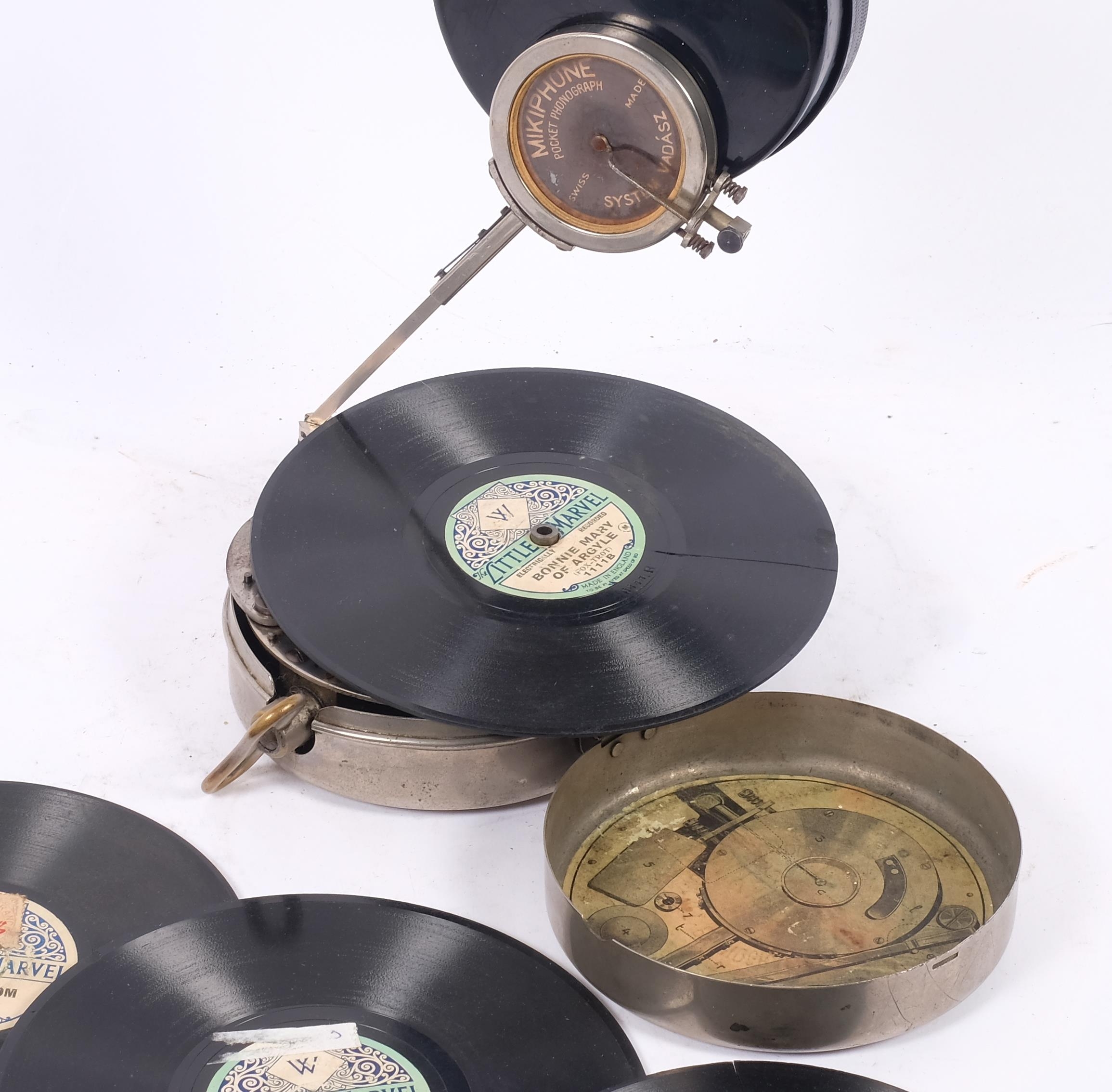 A Vintage Mikiphone pocket phonograph, circa 1926, case diameter 11cm