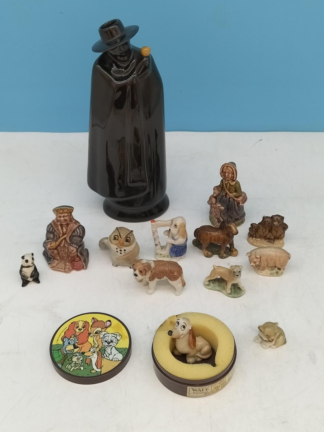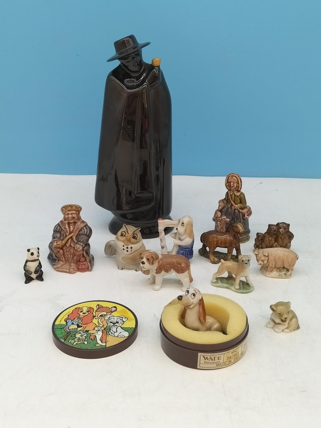 Collection of Wade Whimsies plus 20cm Wade Sandeman Don Decanter (Empty).