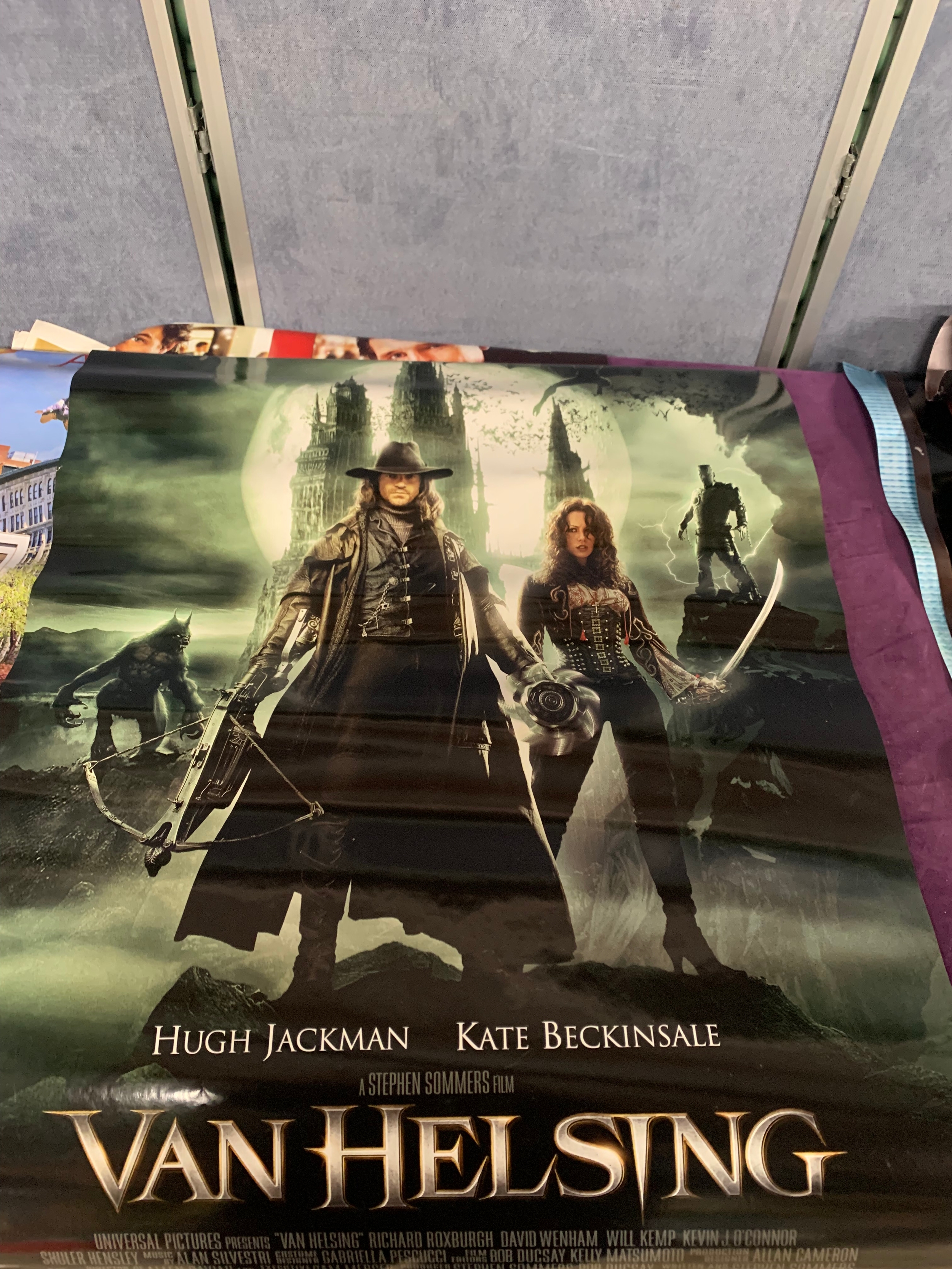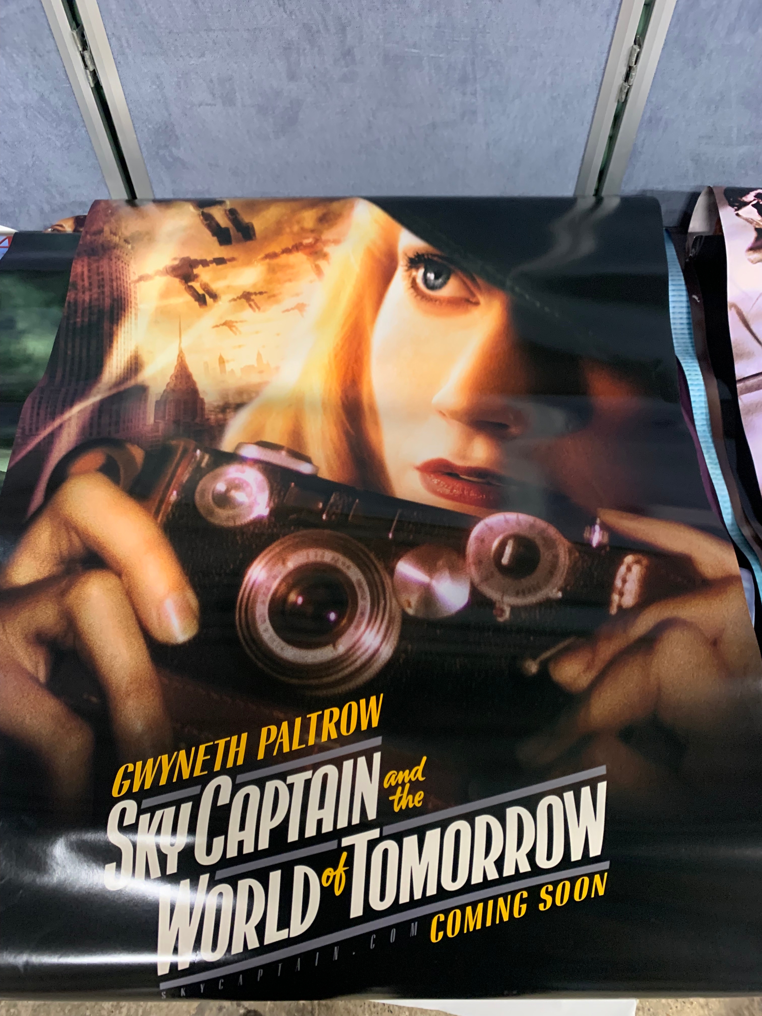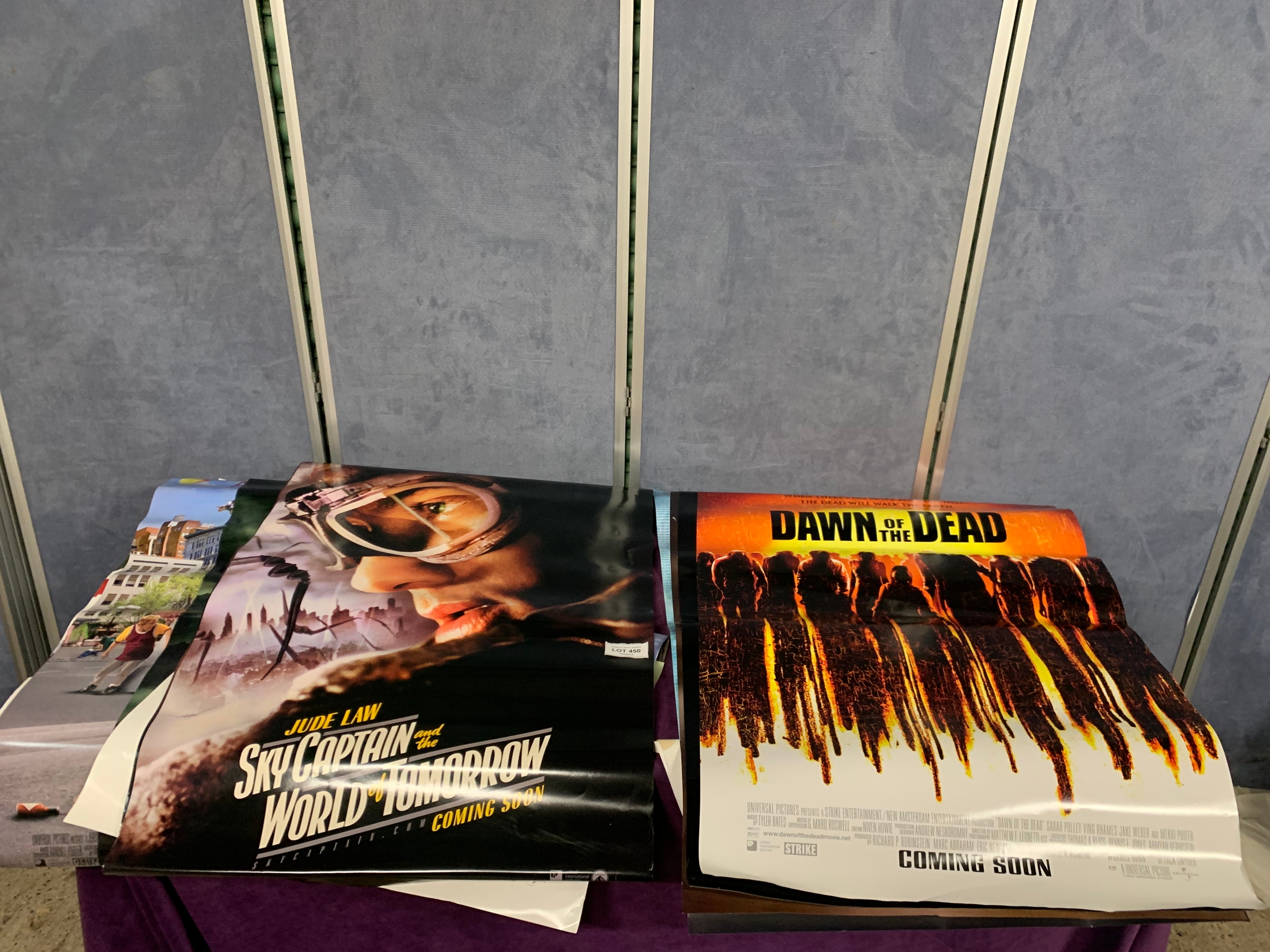 A large collection of movie posters Including Sky captain and the world of tomorrow, Dawn of the Dead, Along came Polly, Van Helsing, Ray and Love Actually
