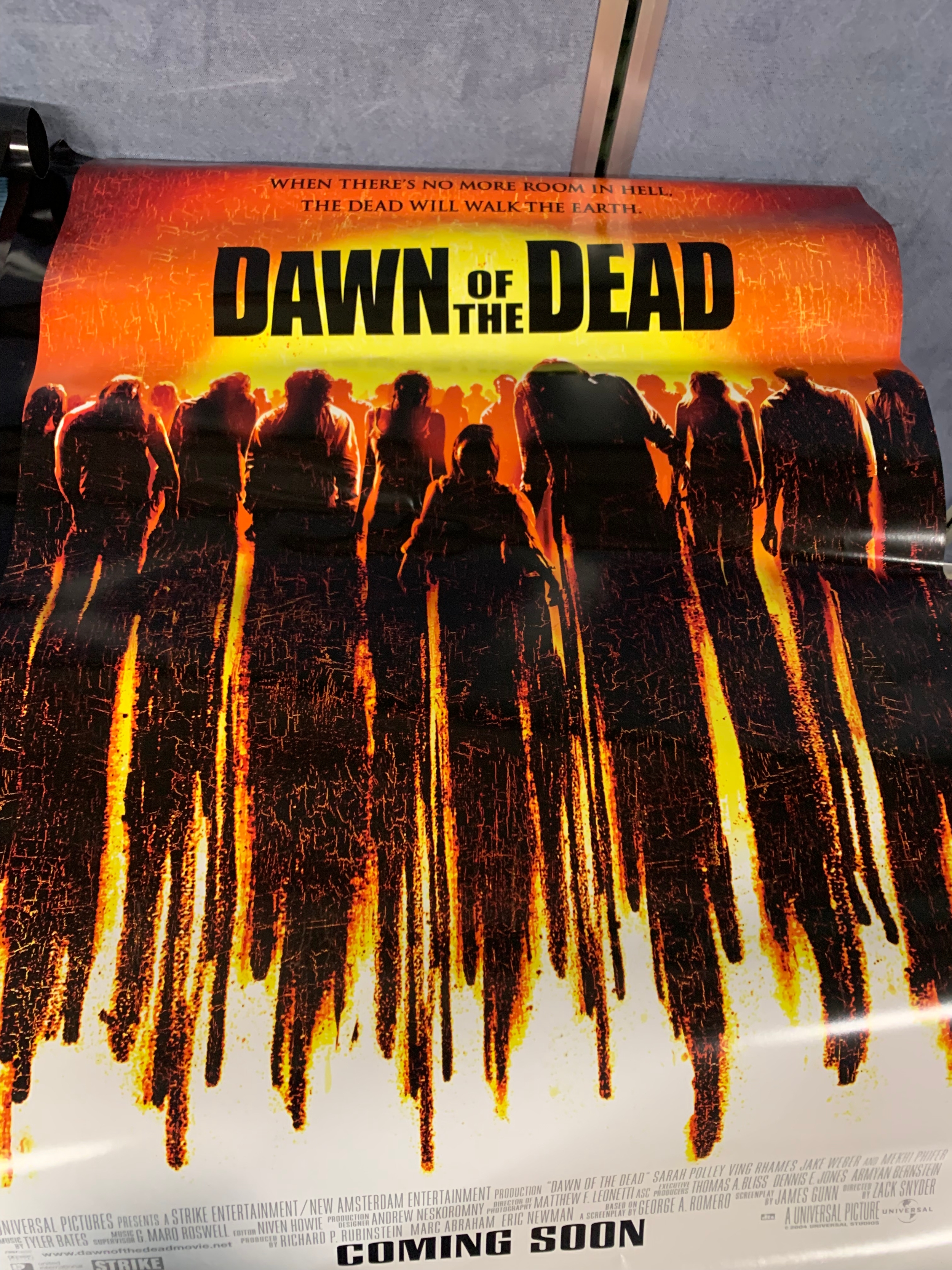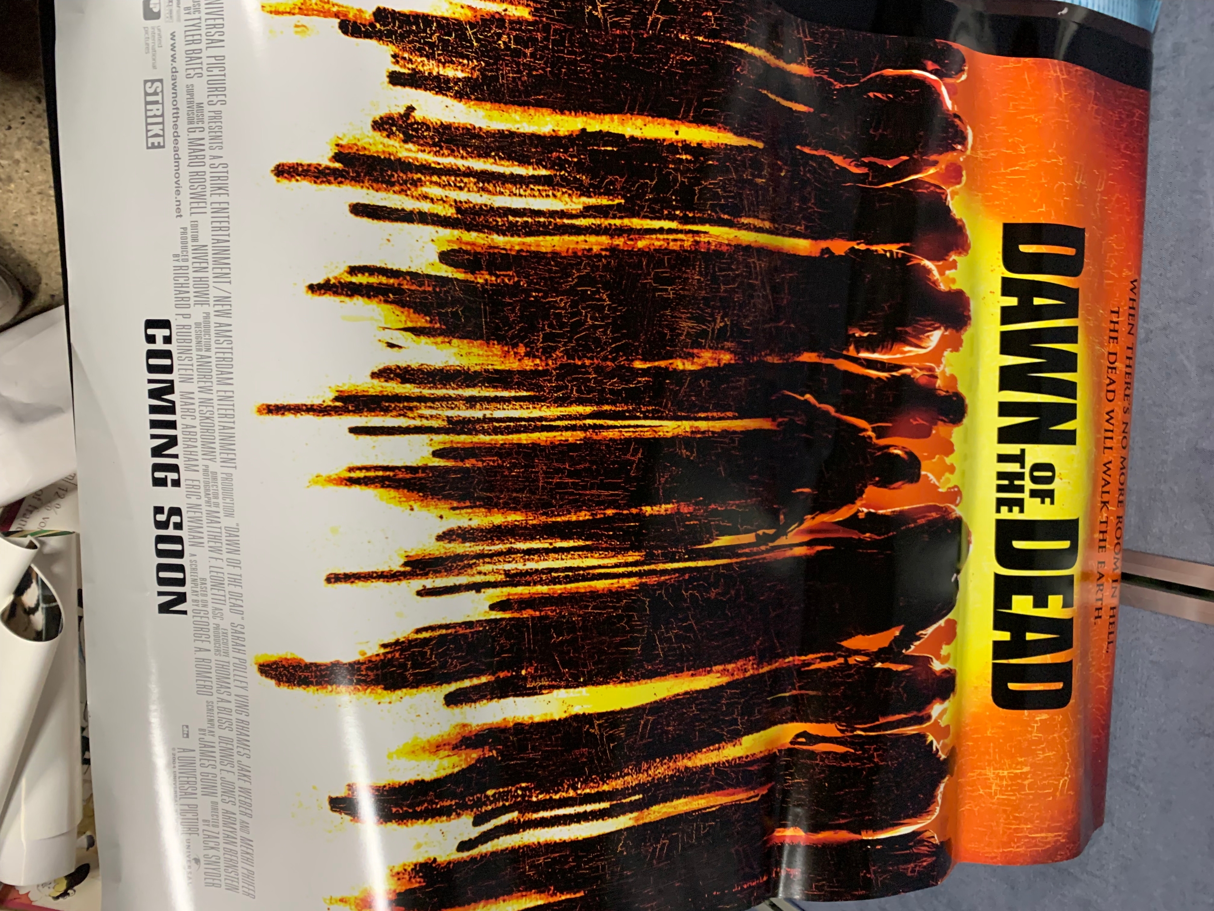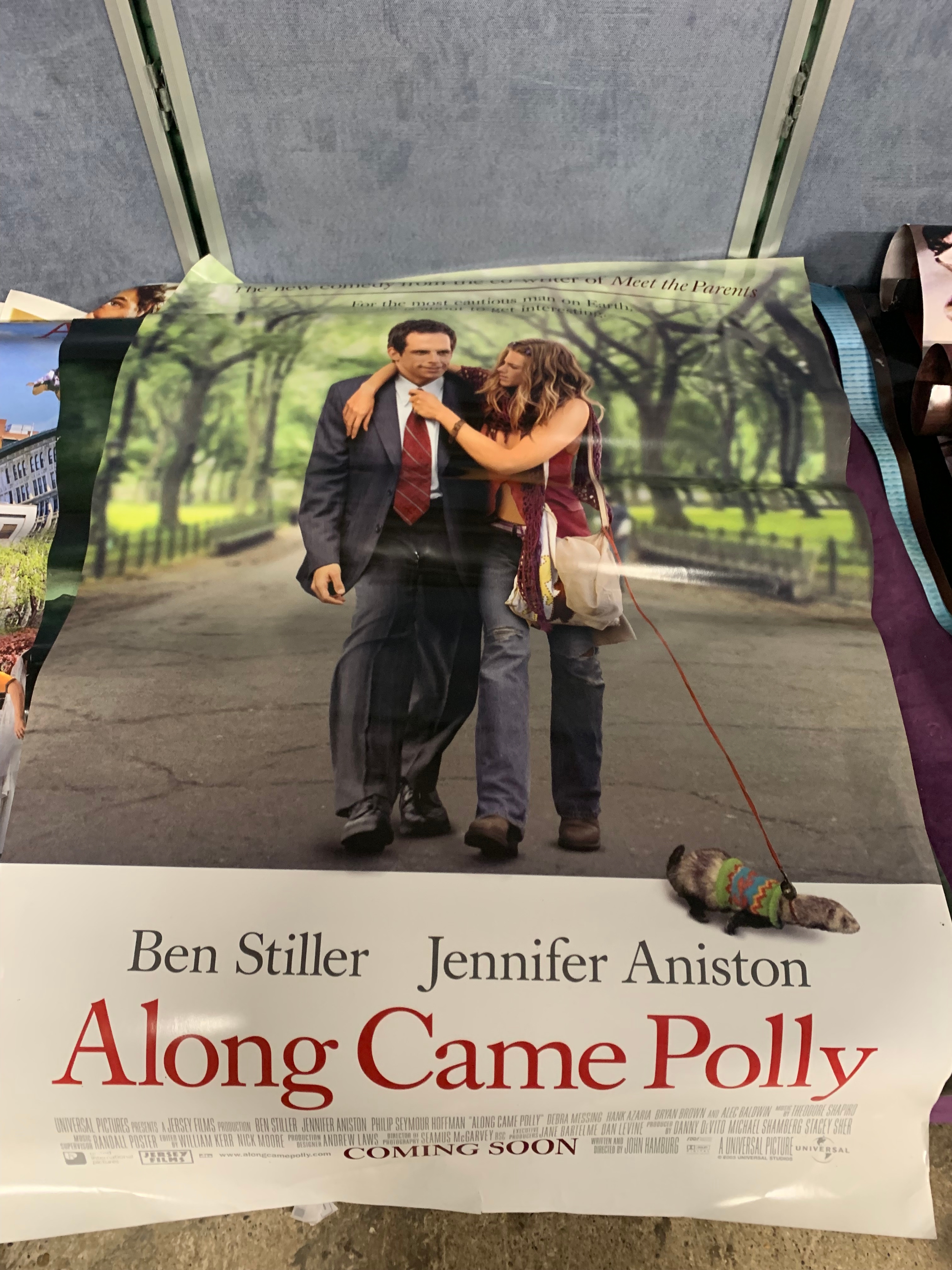 A large collection of movie posters Including Sky captain and the world of tomorrow, Dawn of the Dead, Along came Polly, Van Helsing, Ray and Love Actually