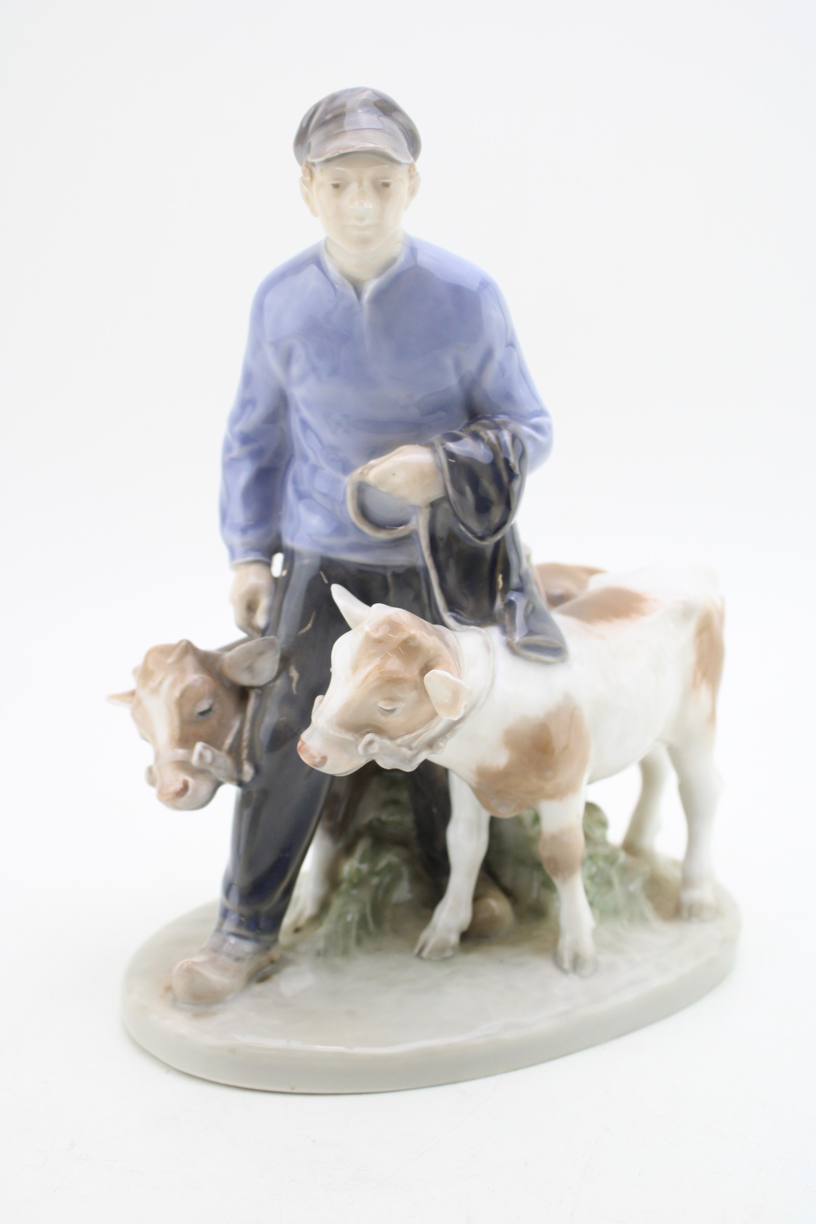 Royal Copenhagen porcelain figure of a boy with two calves, 1858.