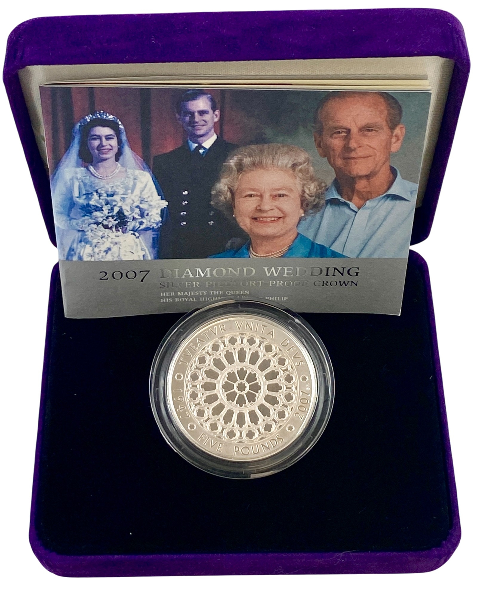 2007 Diamond Wedding Anniversary Silver proof Piedfort £5 Coin.
