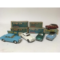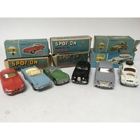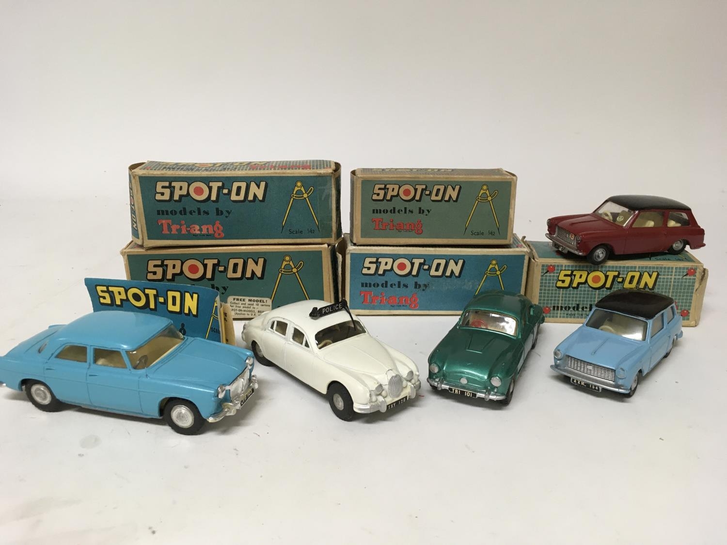 Triang Spot on, 1:42 scale, #Austin A40 x2 , Jenson, Jaguar police car and Rover 3000, boxed, wear to boxes