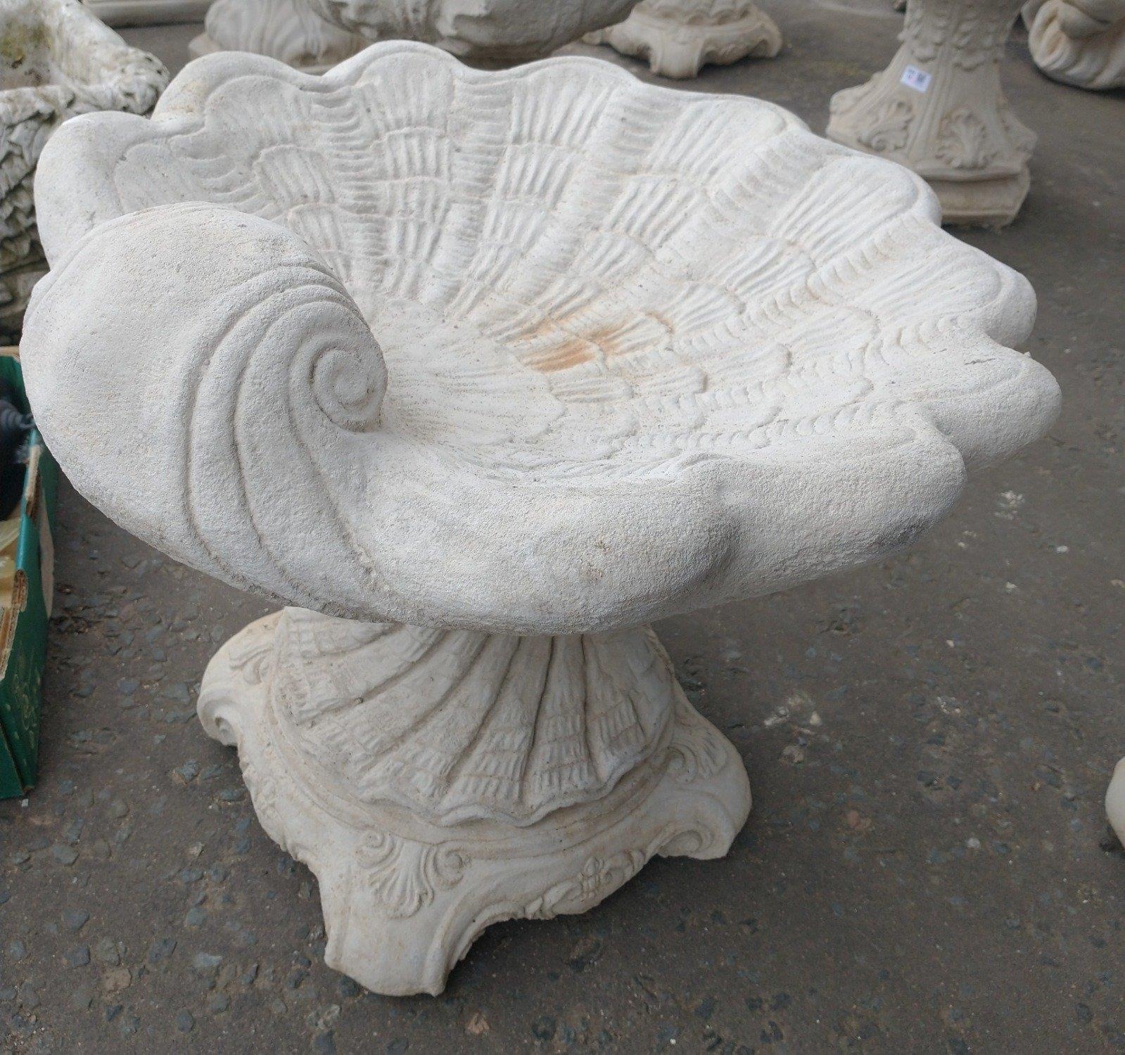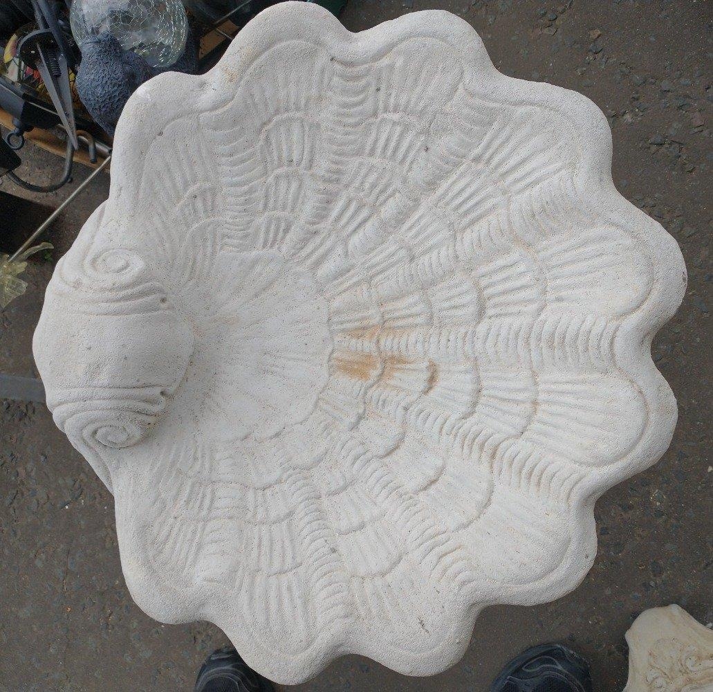 A stonework birdbath in the form of a clam shell, comes in 2 pieces 50x50x45cmH - brand new item