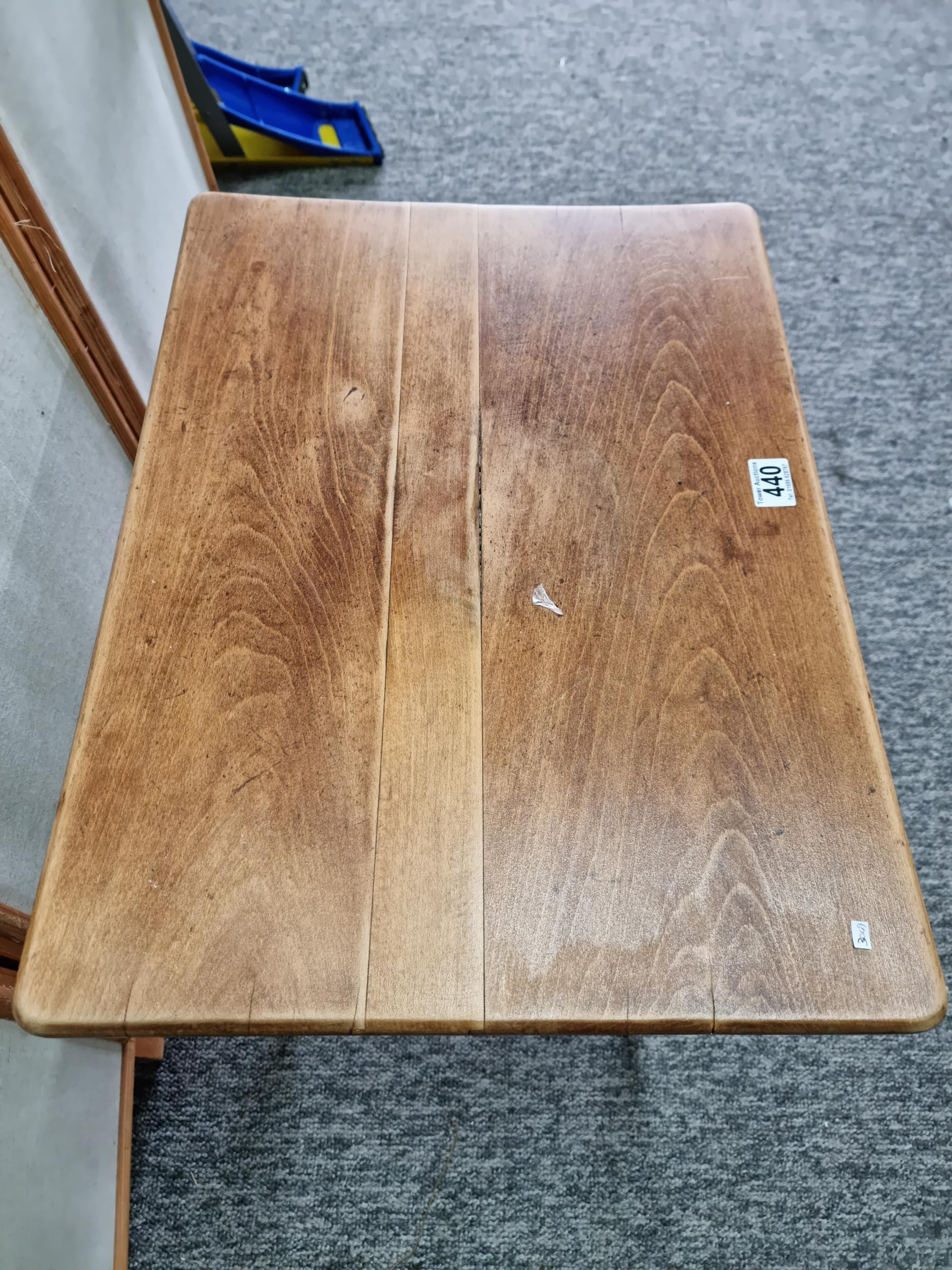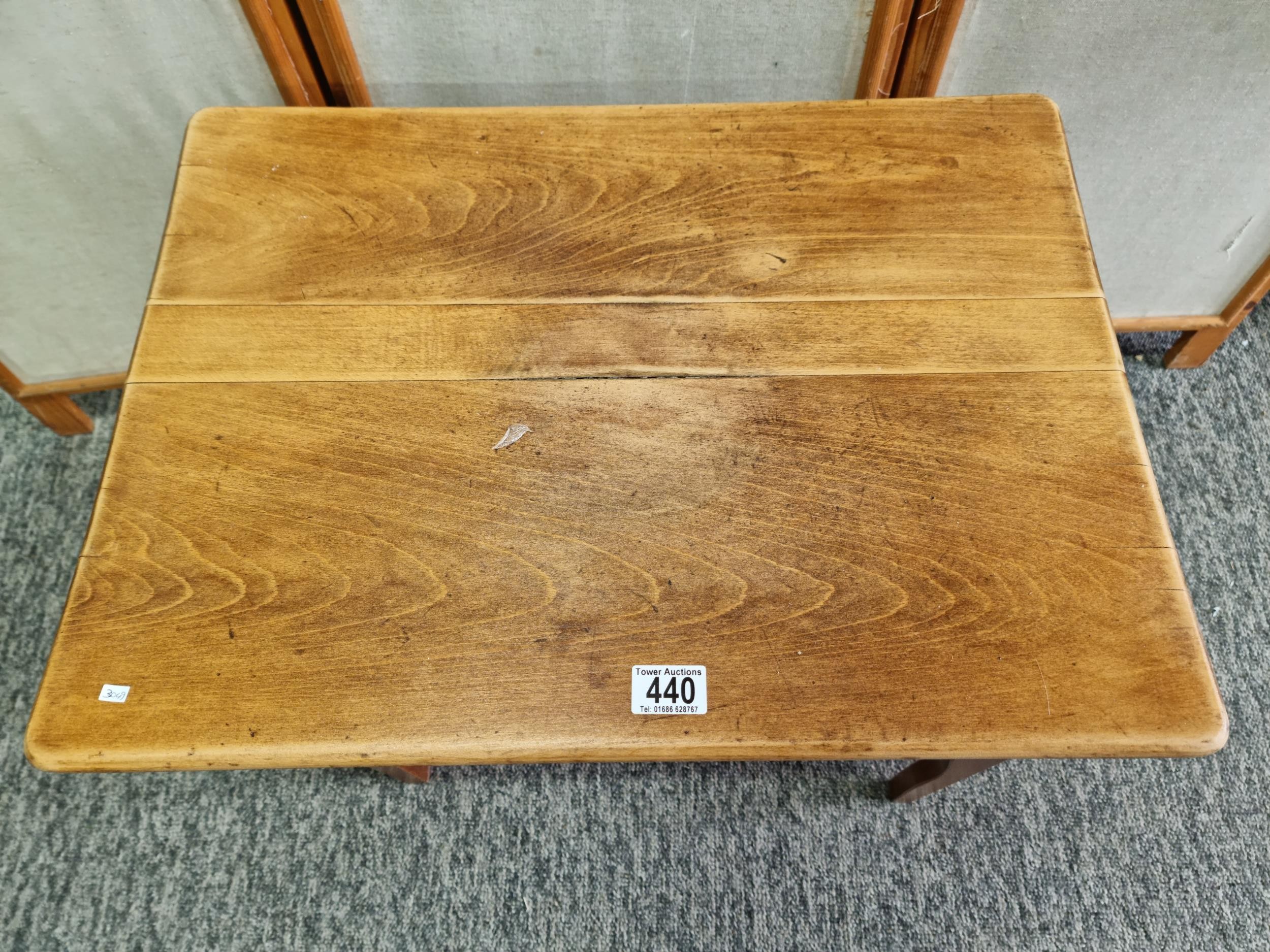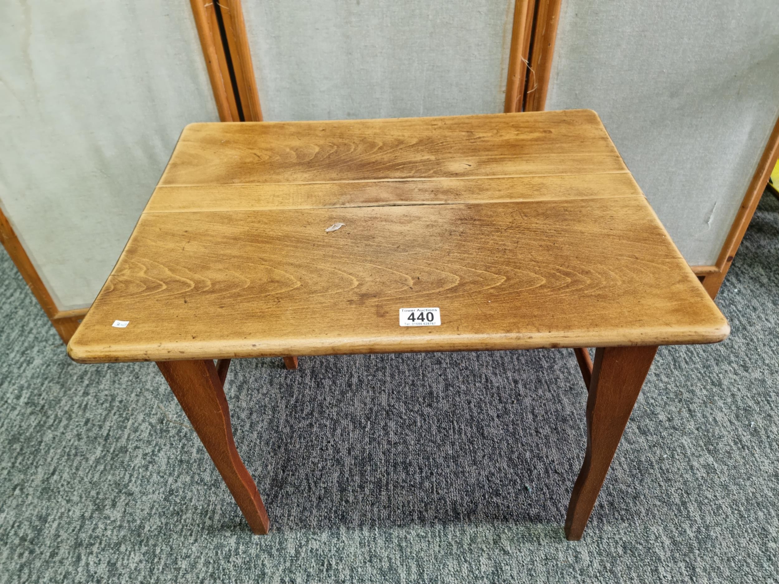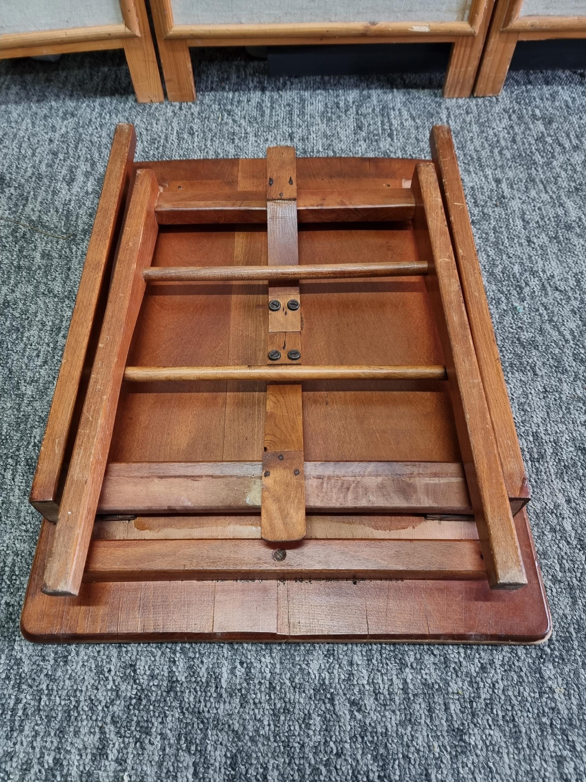 Good quality solid Mid-Century foldable teak table in good looked after condition, standing on good wooden legs. The table features excellent grain. Height of 50.5cm x length of 61cm x 45cm depth
