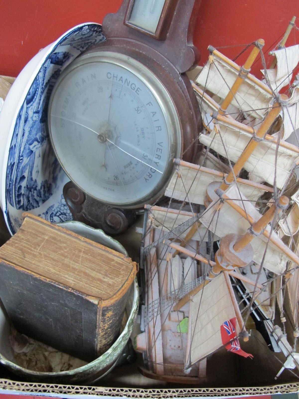 Banjo Barometer, model ships, jardiniere, Bible, etc:- One Box,