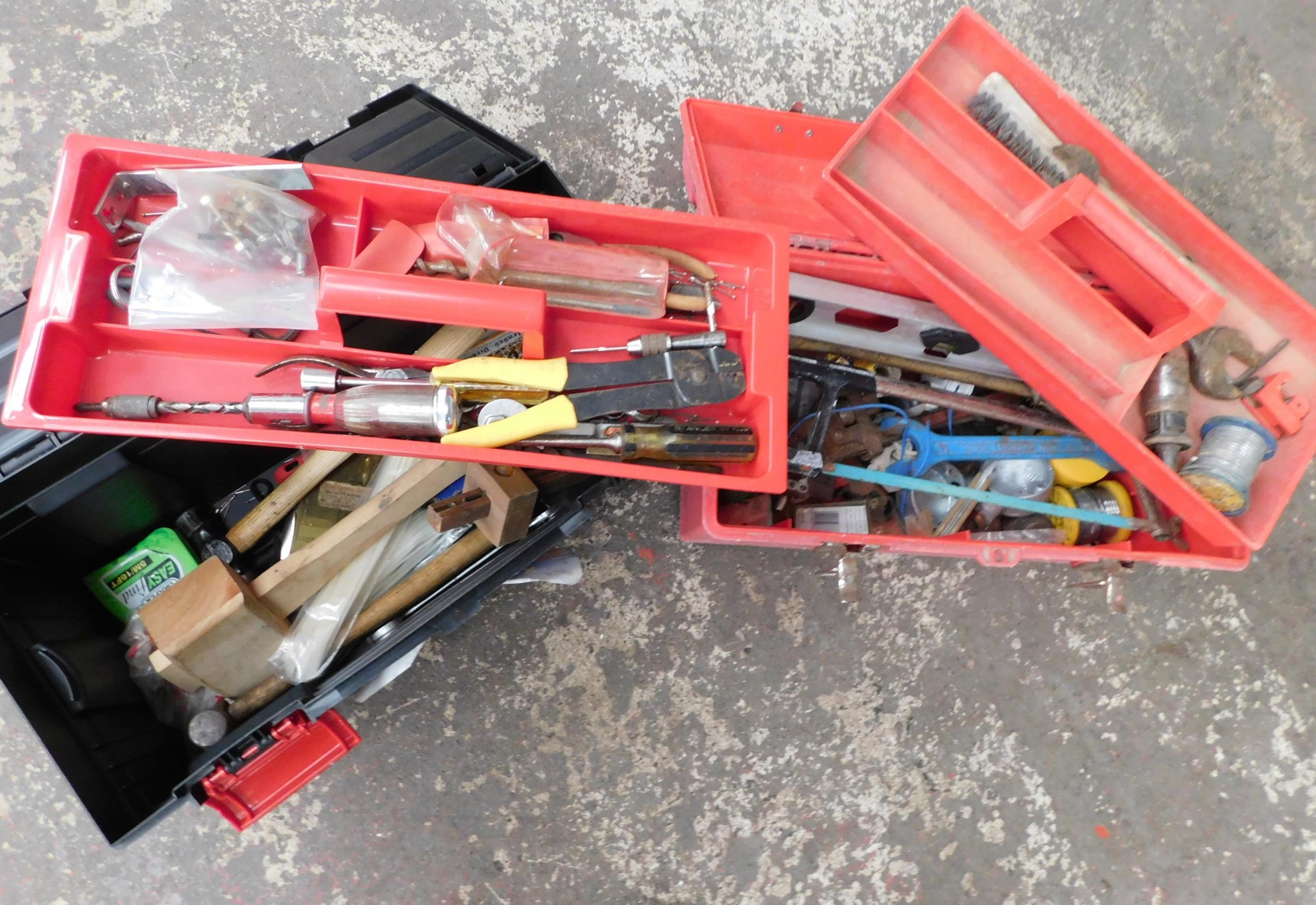 Two plastic toolboxes with tools