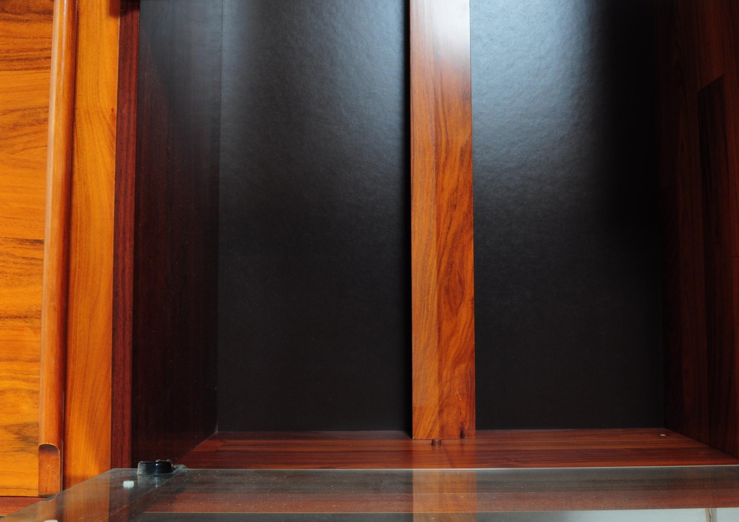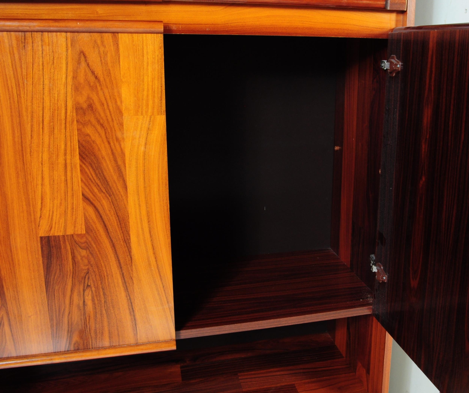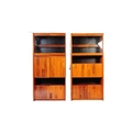 A 20th century Belgium fruit wood wall unit comprising of a series of glazed and fall front cabinets as well alongside shelves. - Measures approx 199cm x 95cm x 53cm.