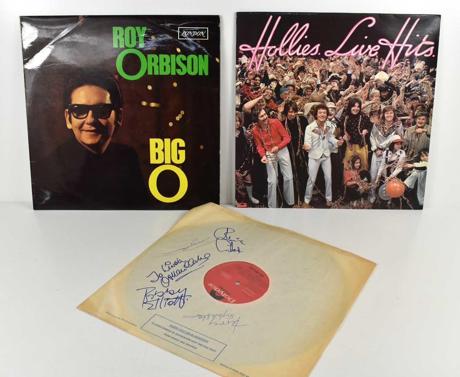 Roy Orbison autographed LP record, signed to the back, together with an autographed Hollies LP signed by all members of the band, Allan Clarke, Terry Sylvester, Bobby Elliott, Tony Hicks and Bernie Calvert.