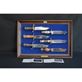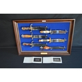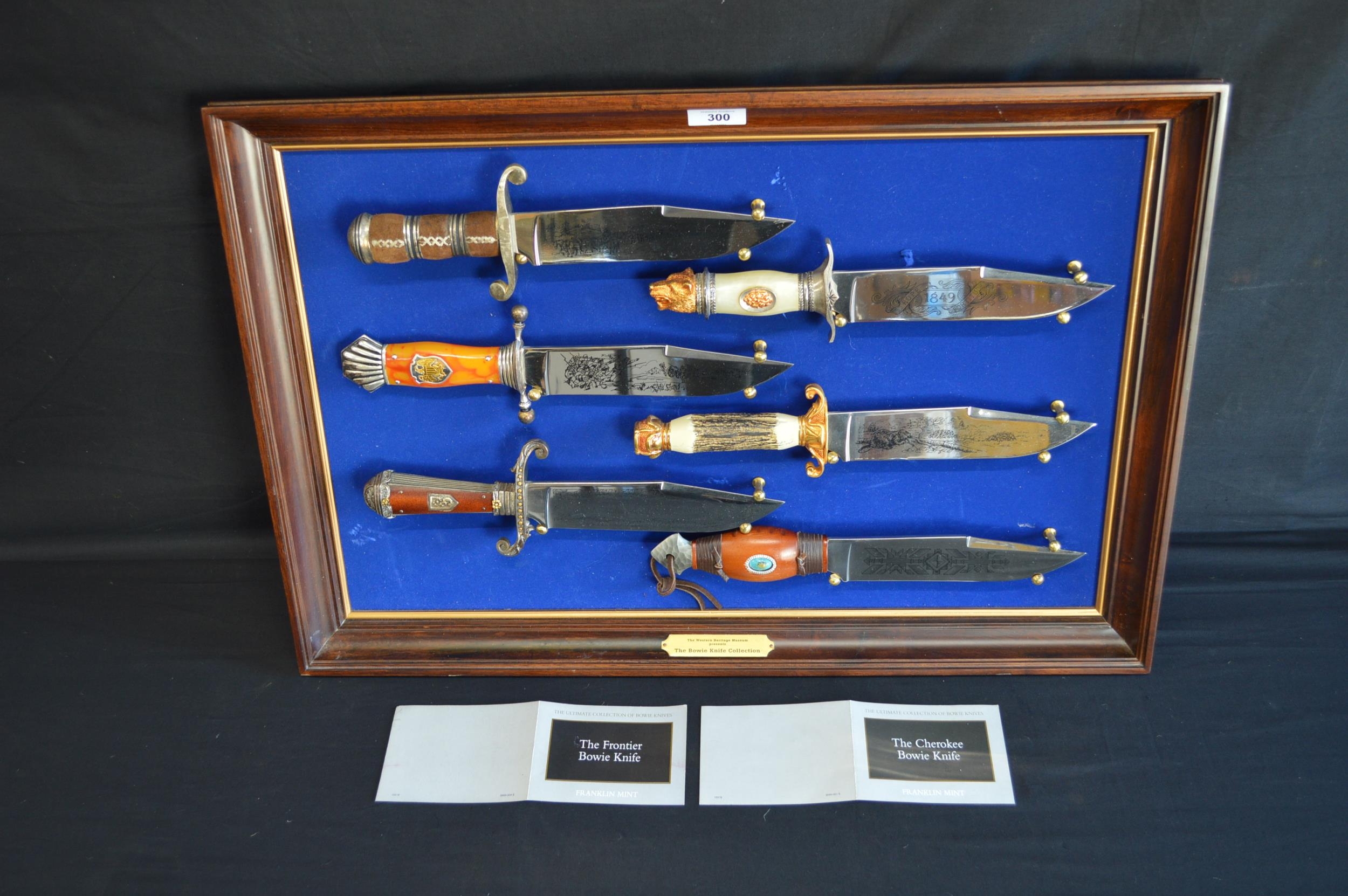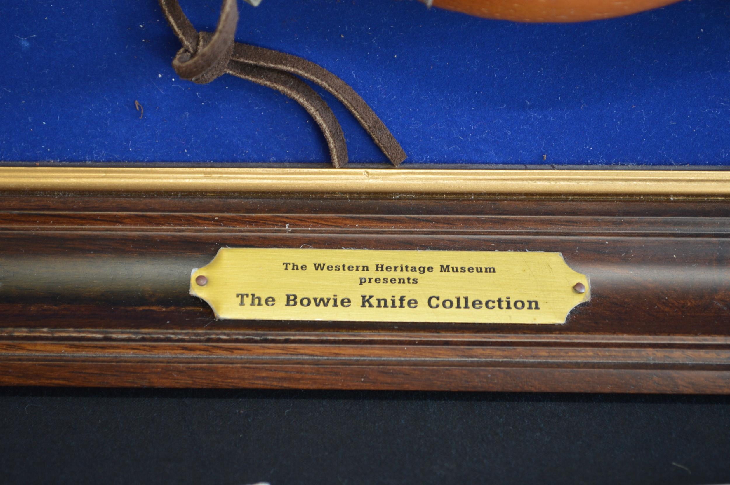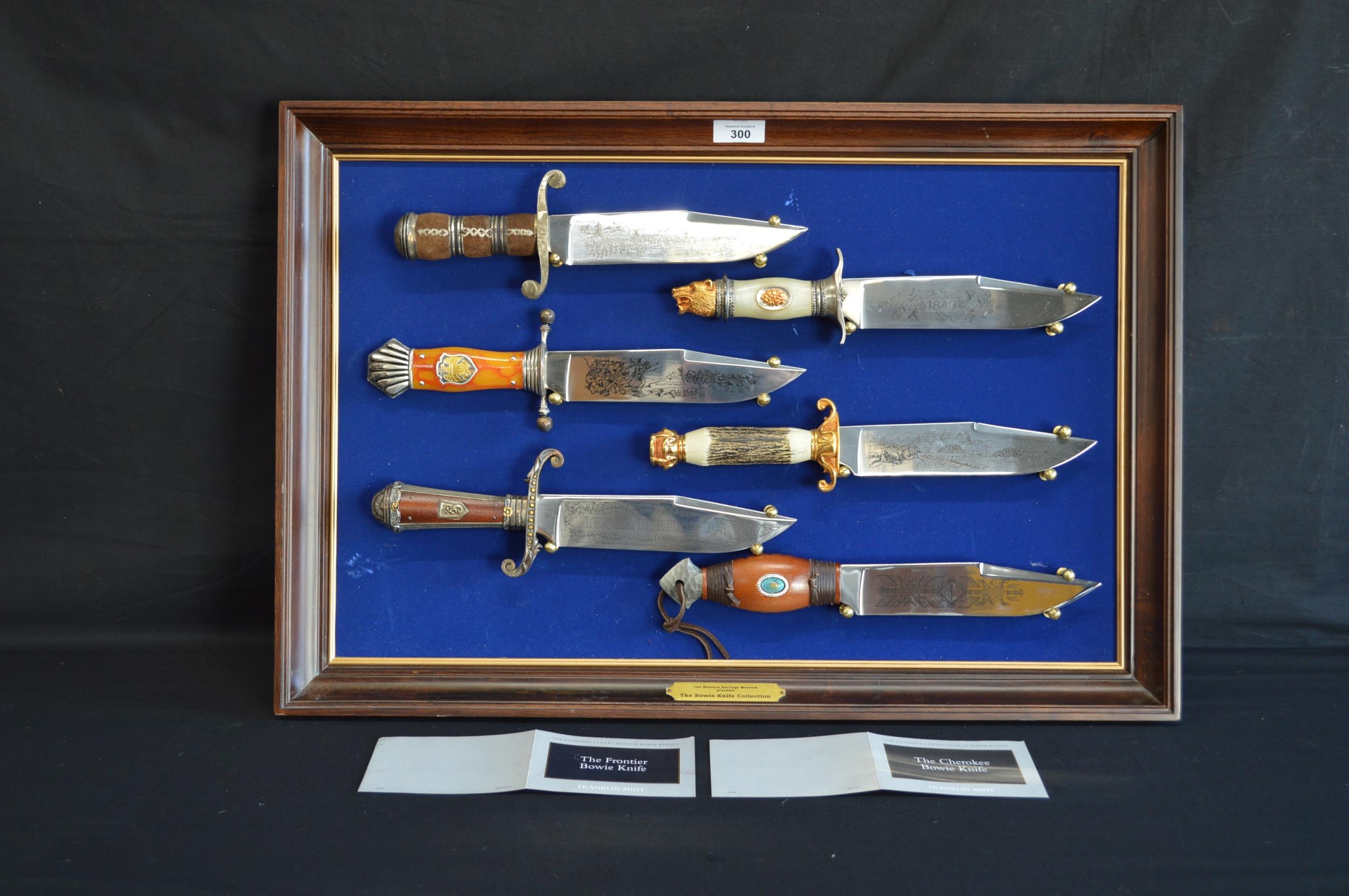 Franklin Mint set of six Bowie knives on framed display board with plaque inscribed The Western Heritage Museum Presents The Bowie Knife Collection - 67cm x 46cm