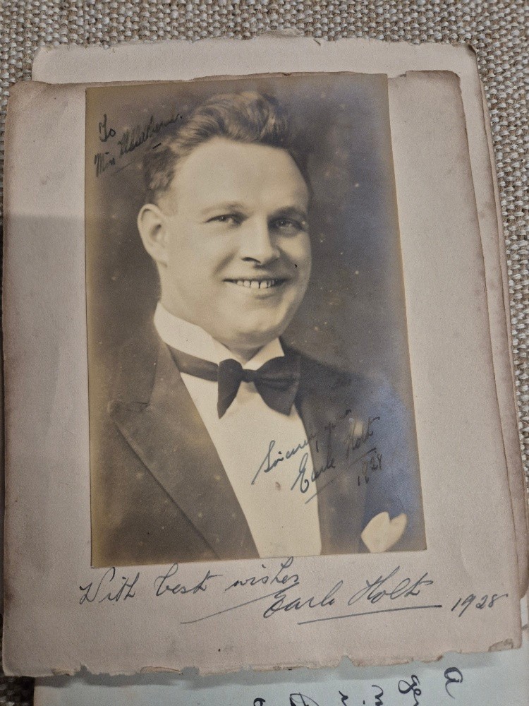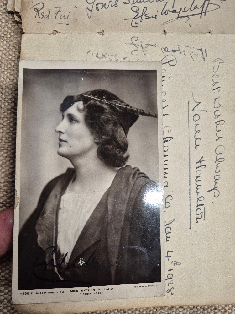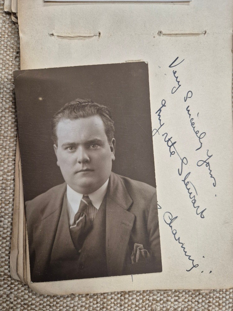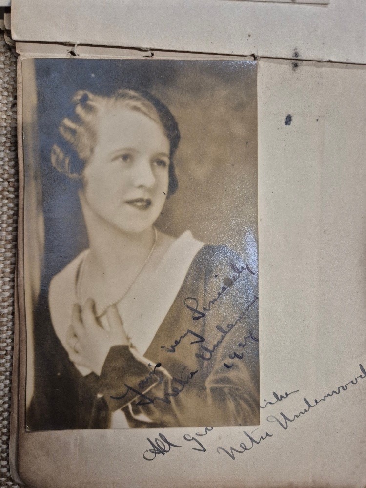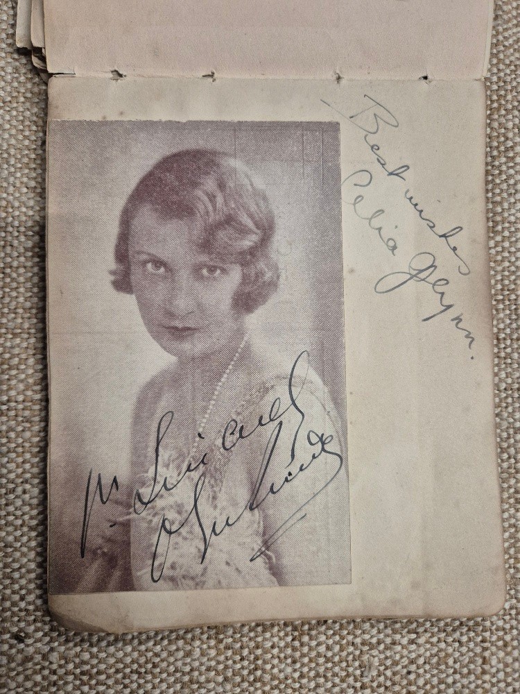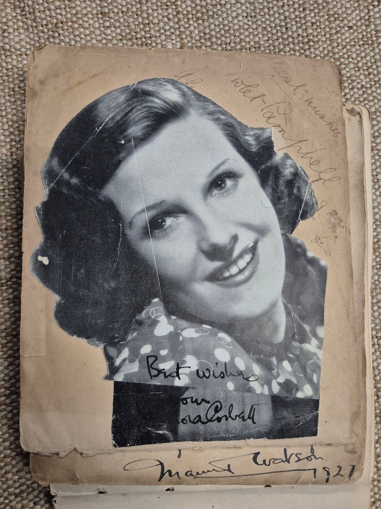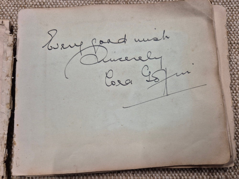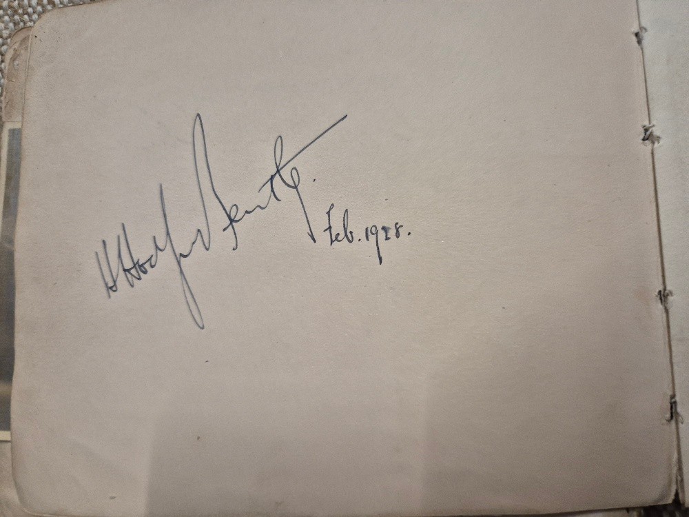 A vintage autograph book with various signed photos etc.