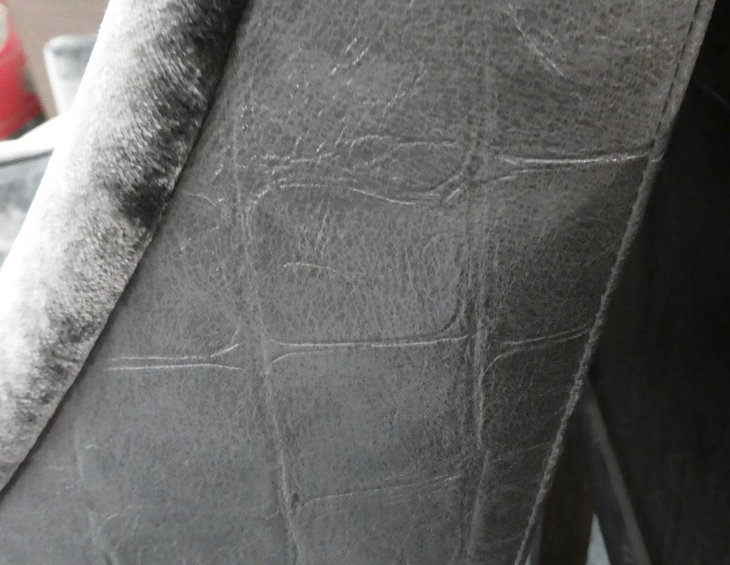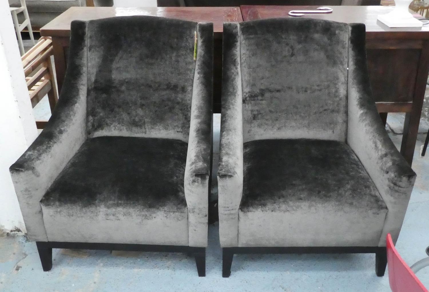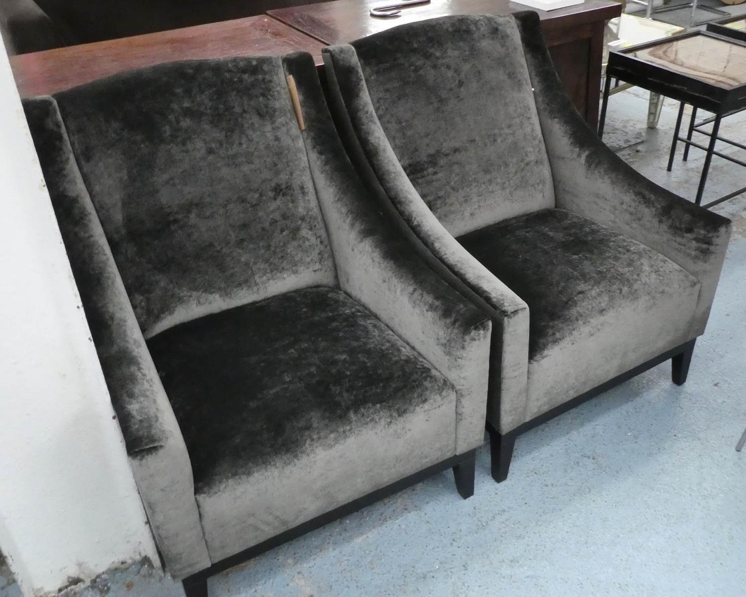ARMCHAIRS, a pair, contemporary design, grey velvet upholstered with leather detail, 74cm W x 80cm D x 93cm H.