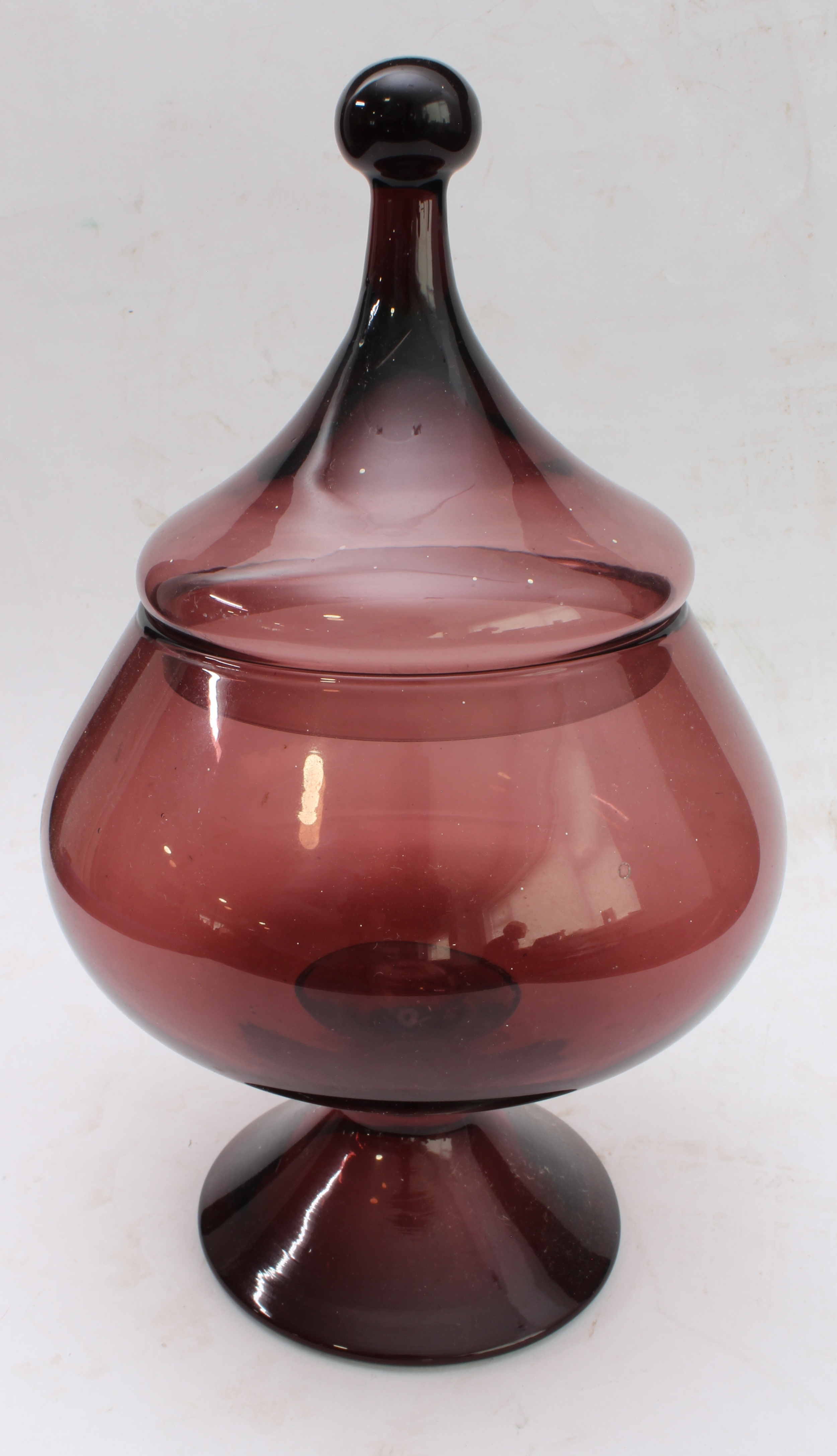 3. a purple-glass bonbon dish with lid (24 cm high).