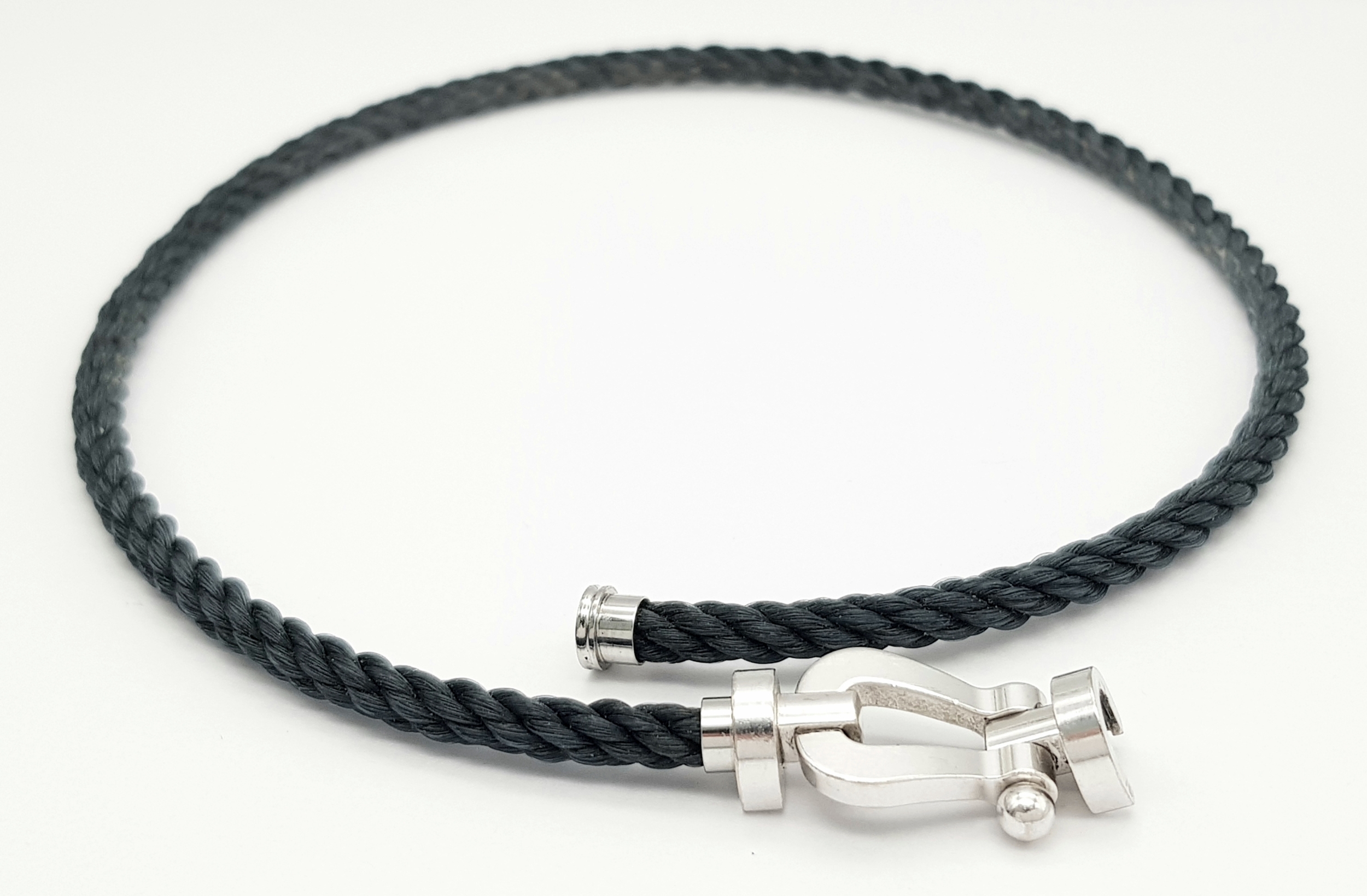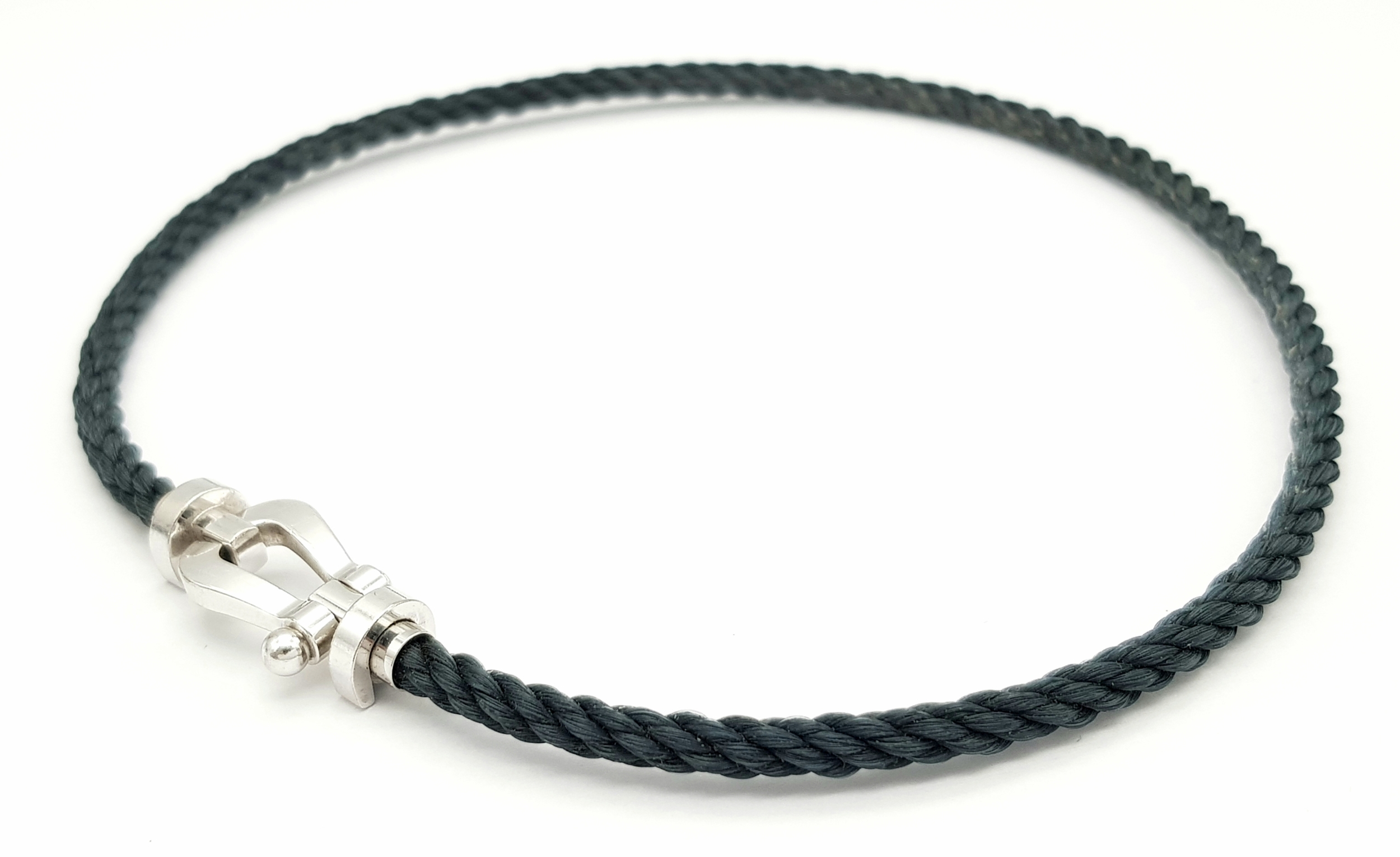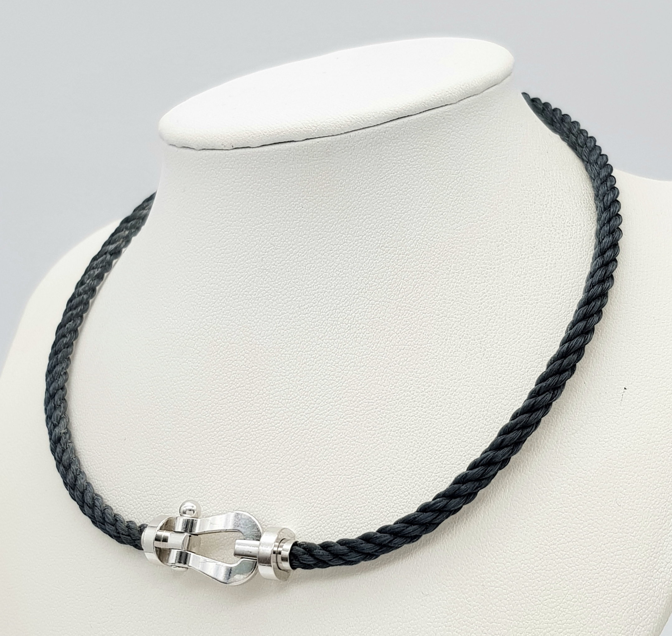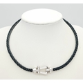 A Fred, Designer 18k White Gold and Rope Form Textile Choker Necklace. 37cm. Ref: STK024026