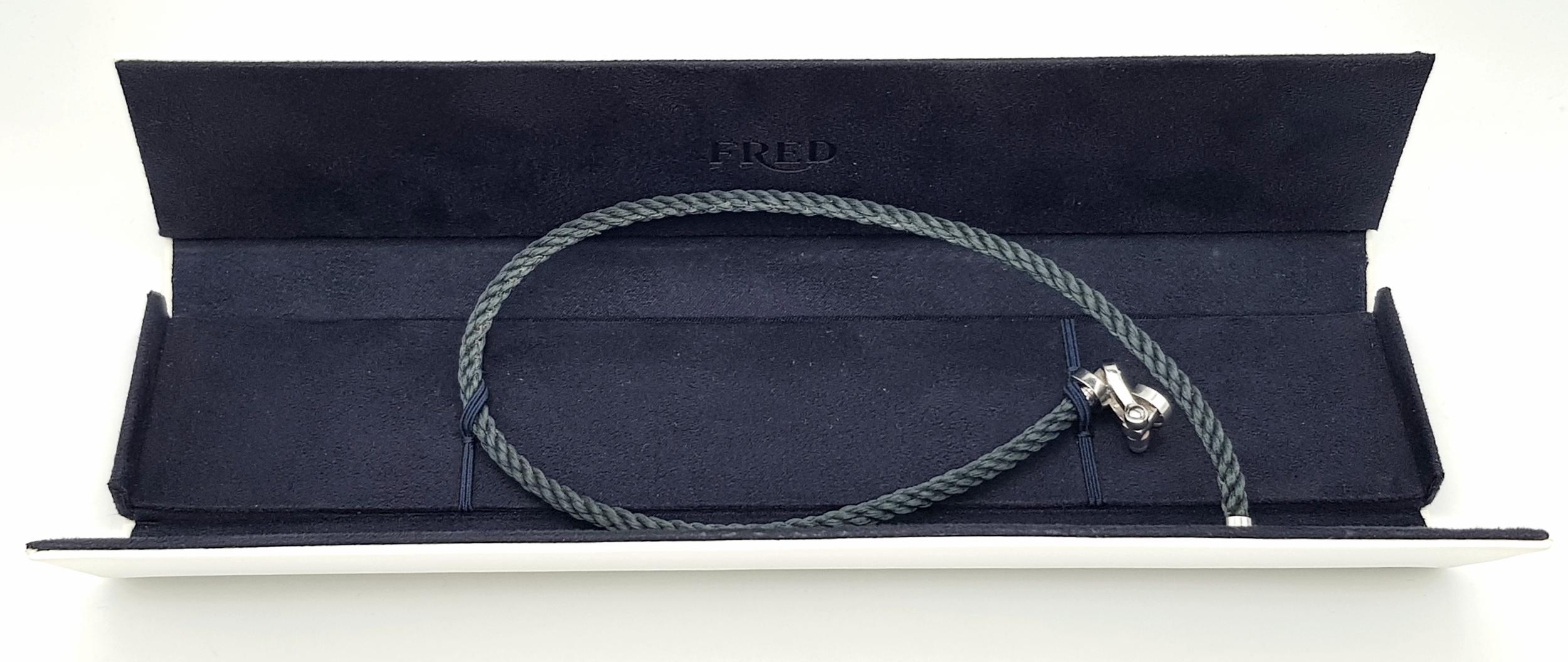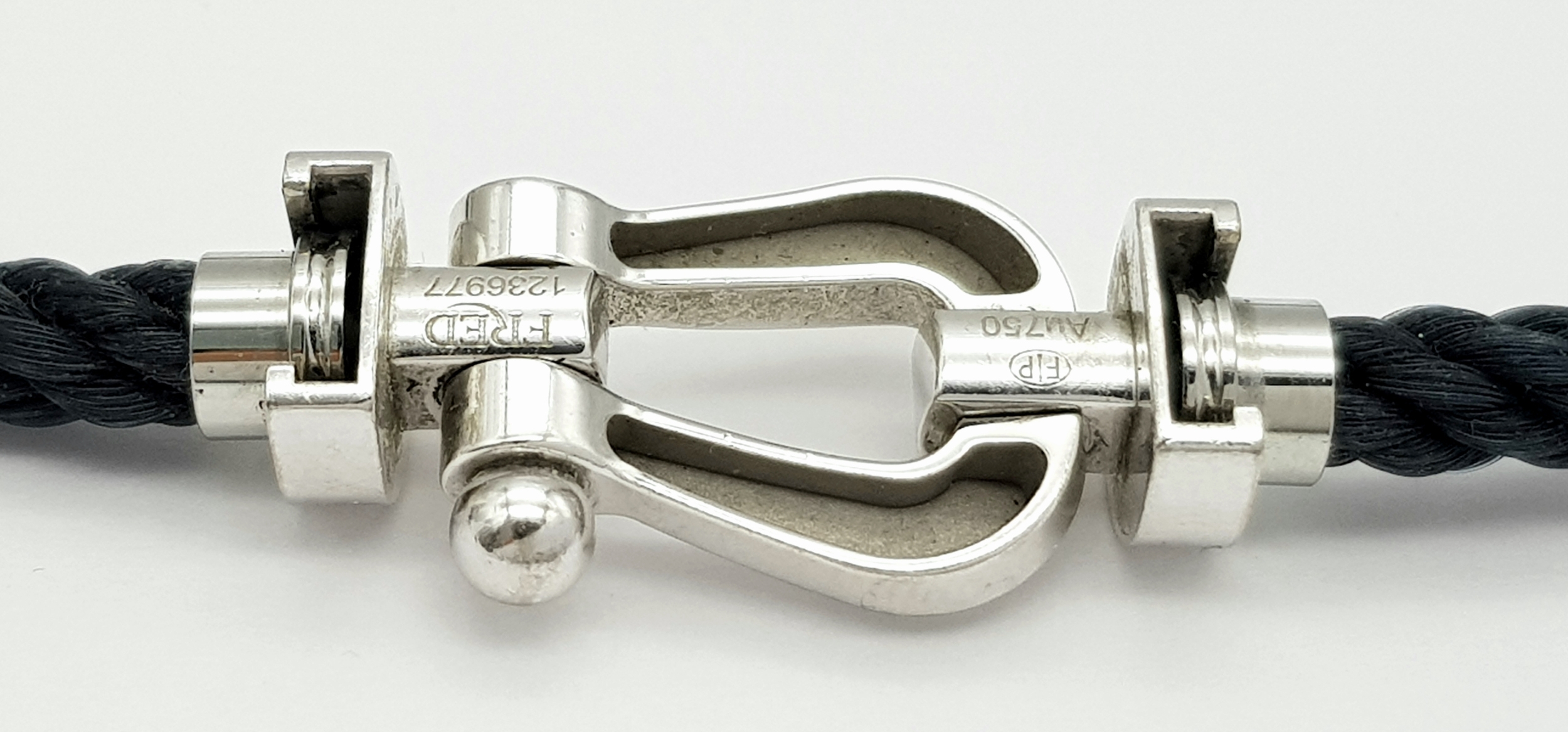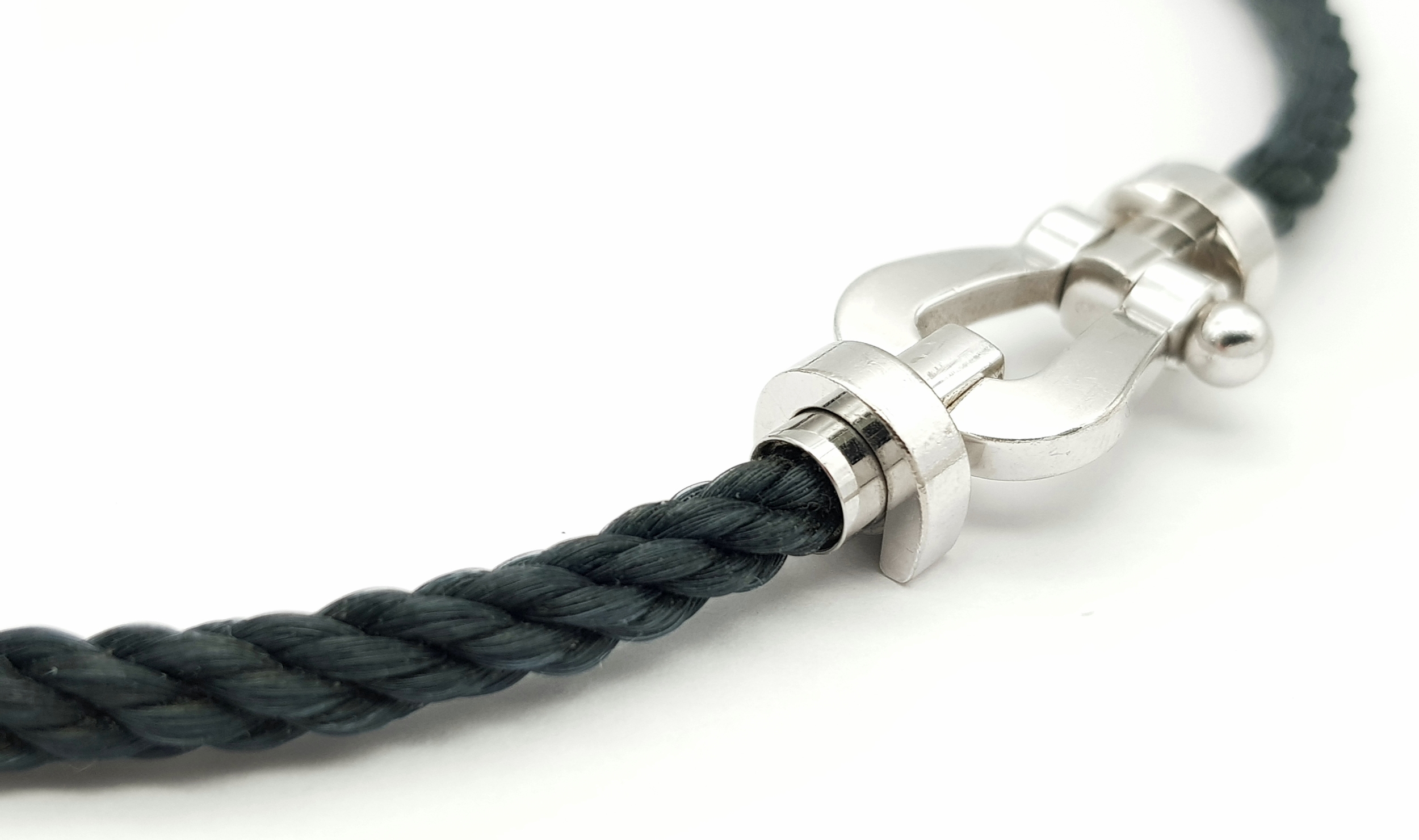 A Fred, Designer 18k White Gold and Rope Form Textile Choker Necklace. 37cm. Ref: STK024026