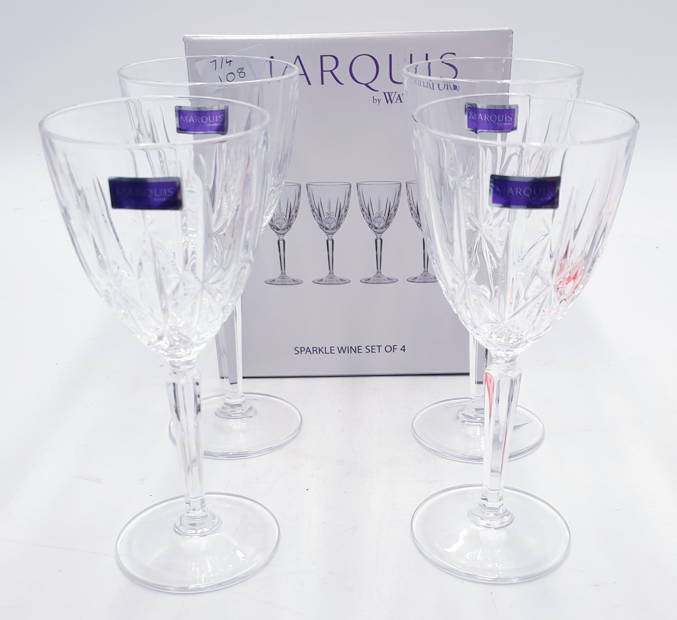 WATERFORD CRYSTAL For MARQUIS (Boxed Set Of Four) WINE GLASSES IN THE SPARKLE DESIGN (As New,Unused)
