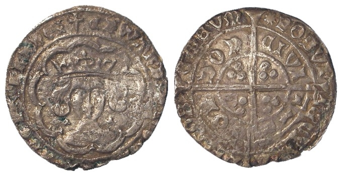 Edward IV, light coinage silver Groat of London, trefoils at neck, muled mintmarks long cross fitchee / sun (11/28), S.2003, 2.40g, F-GF some porosity.