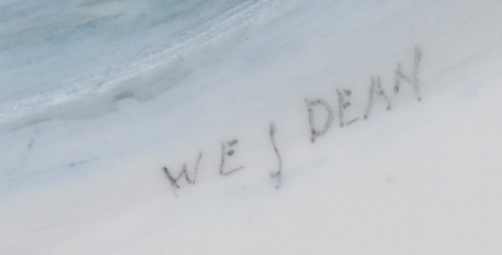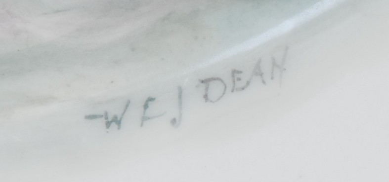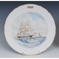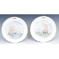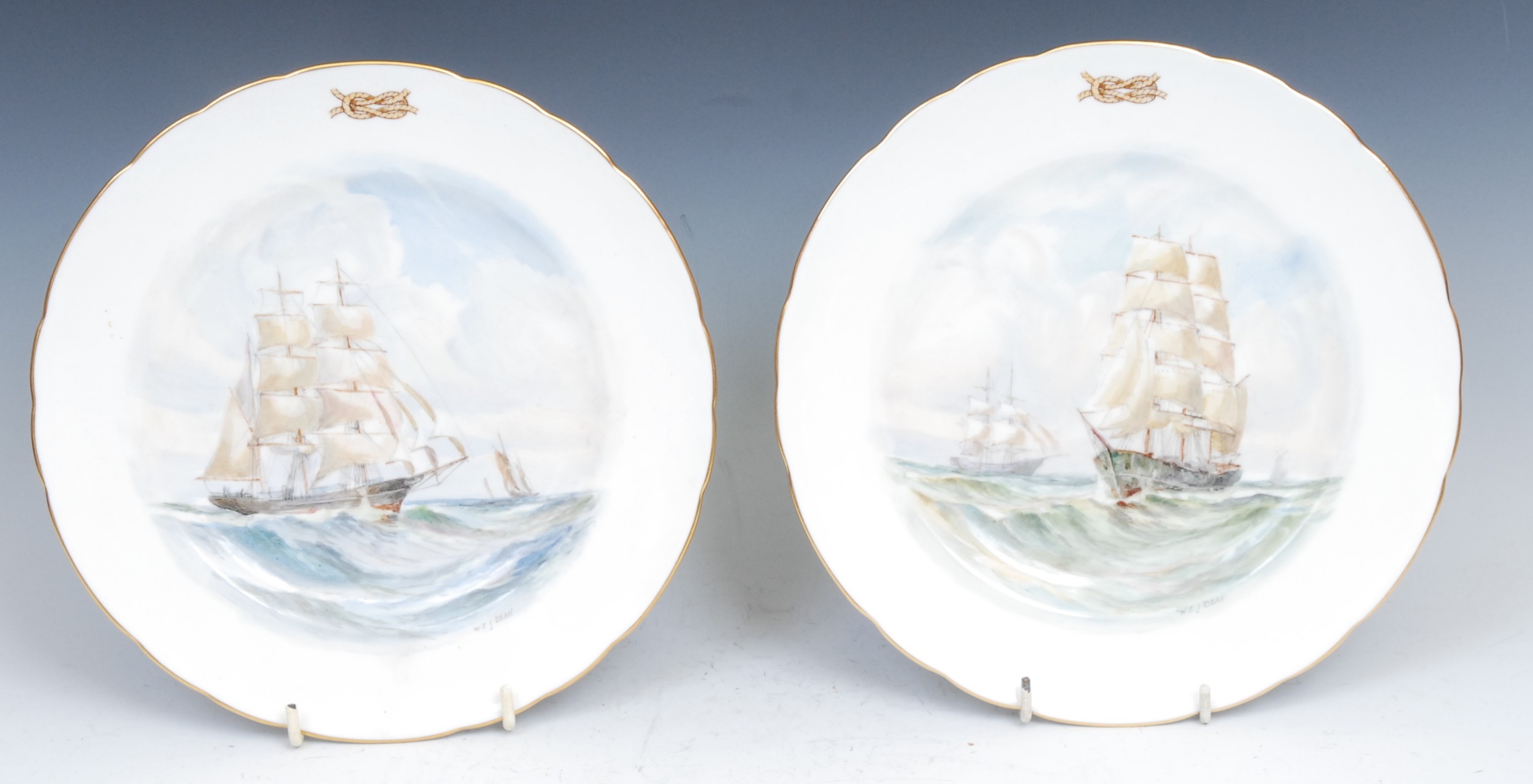 A pair of Royal Crown Derby shaped circular plates, painted by WEJ Dean, signed, Tall Ships on Choppy Seas, 23cm diameter, c.1923/24