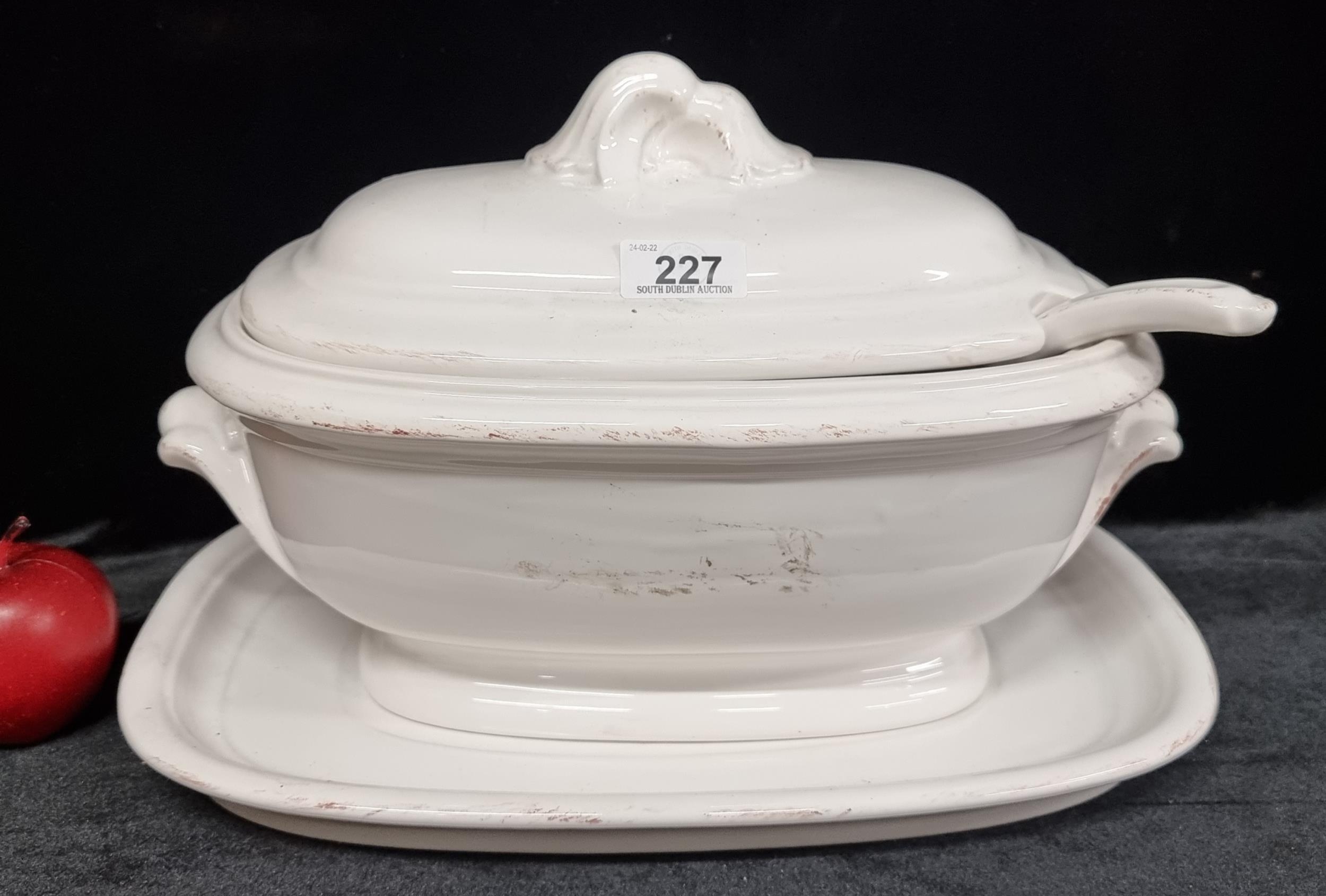 A very large heavy "Flamant" tureen with matching ladle and leaf finial. In great condition and a heavy duty, high quality tureen.