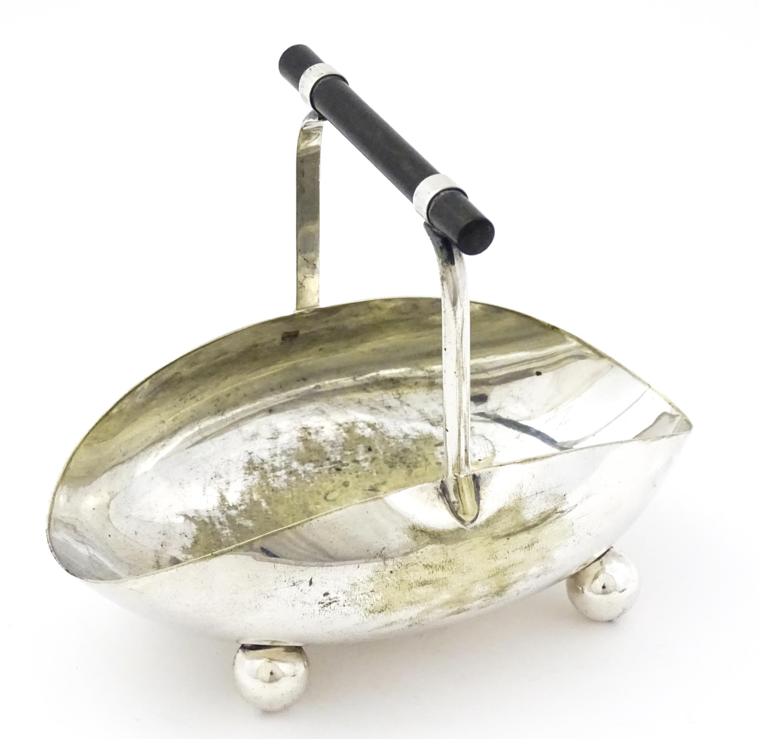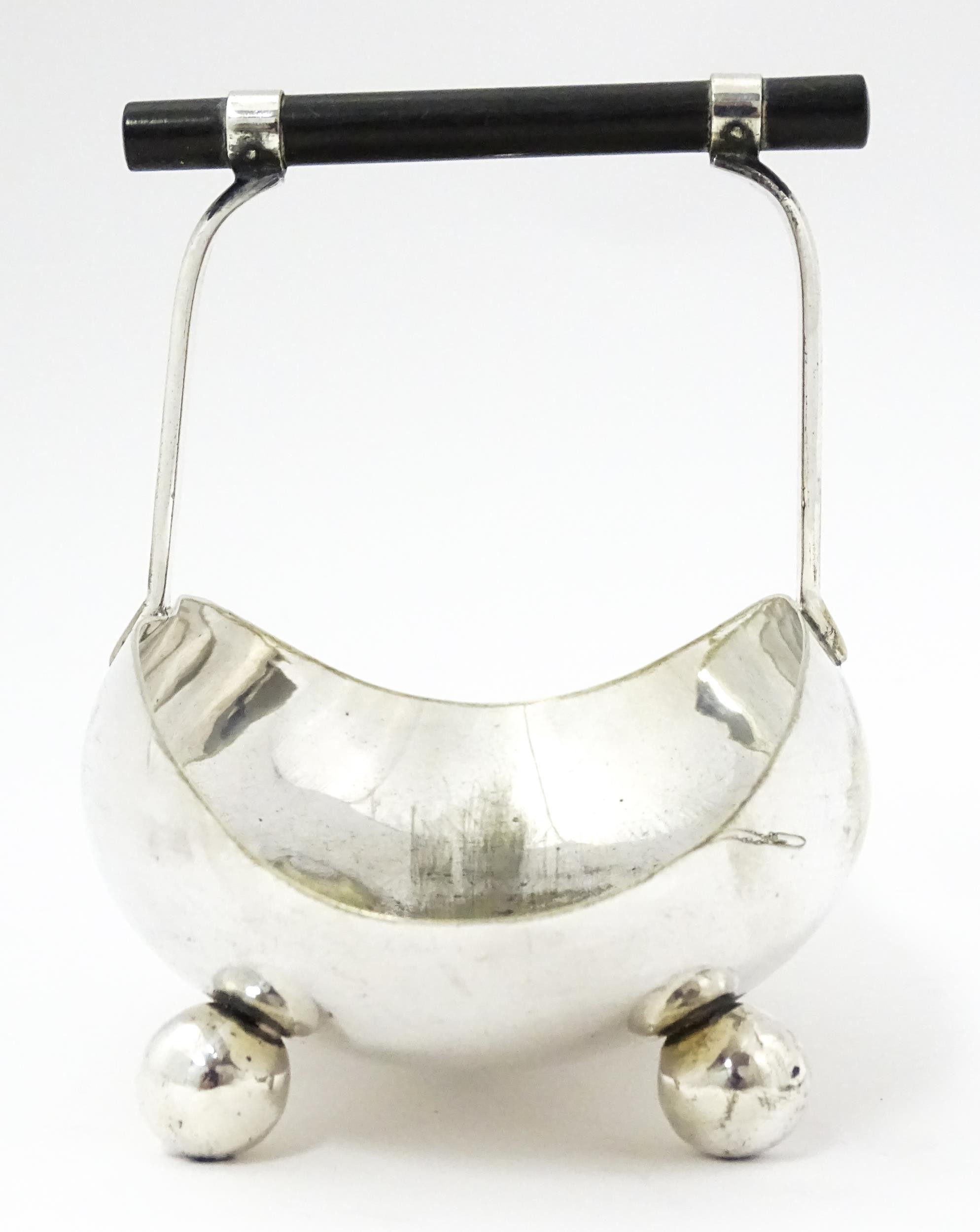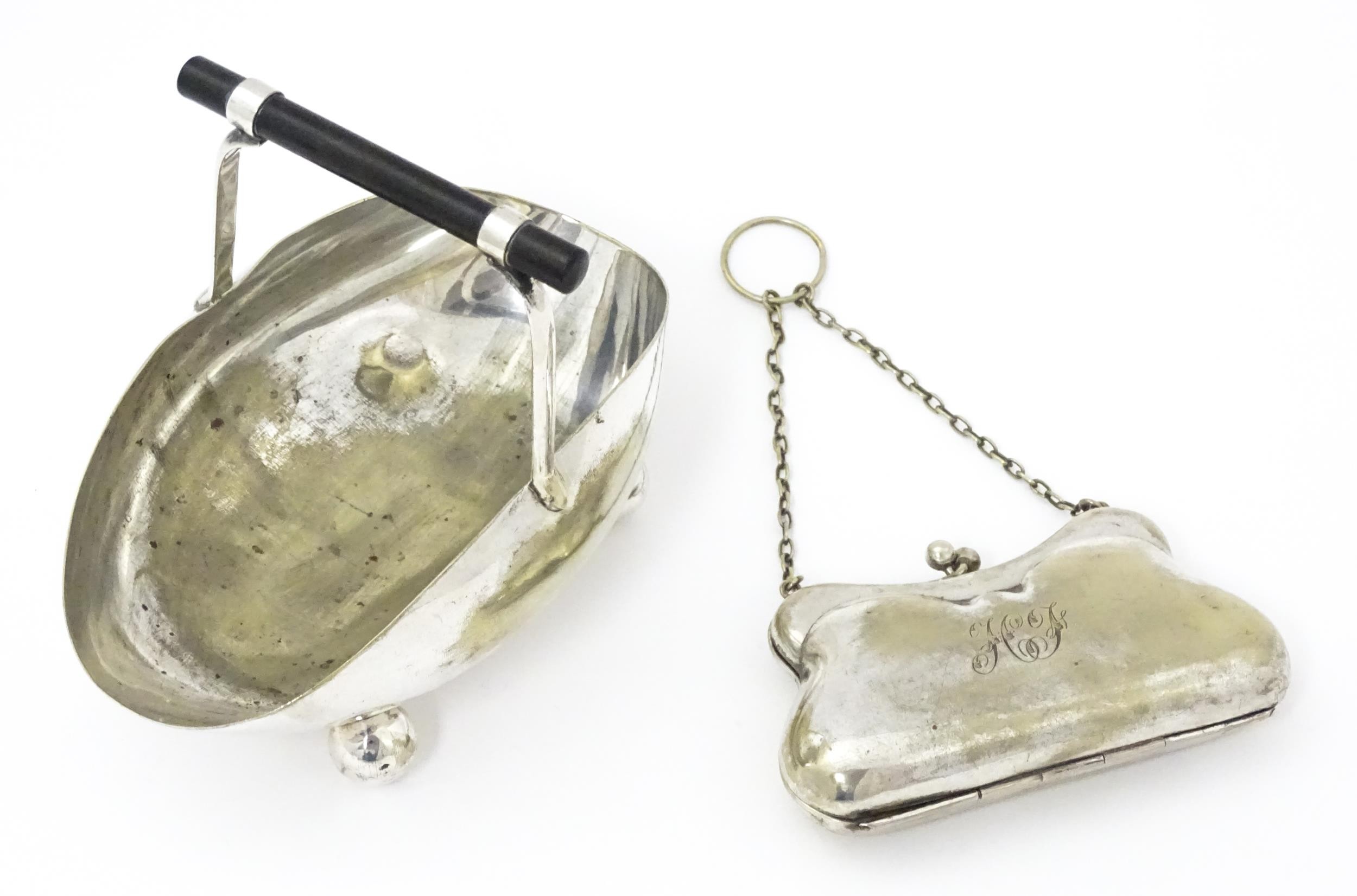 A silver plate sugar basket in the manner of Christopher Dresser. Together with a silver plate purse. Sugar bowl Approx. 6 1/4" wide (2)