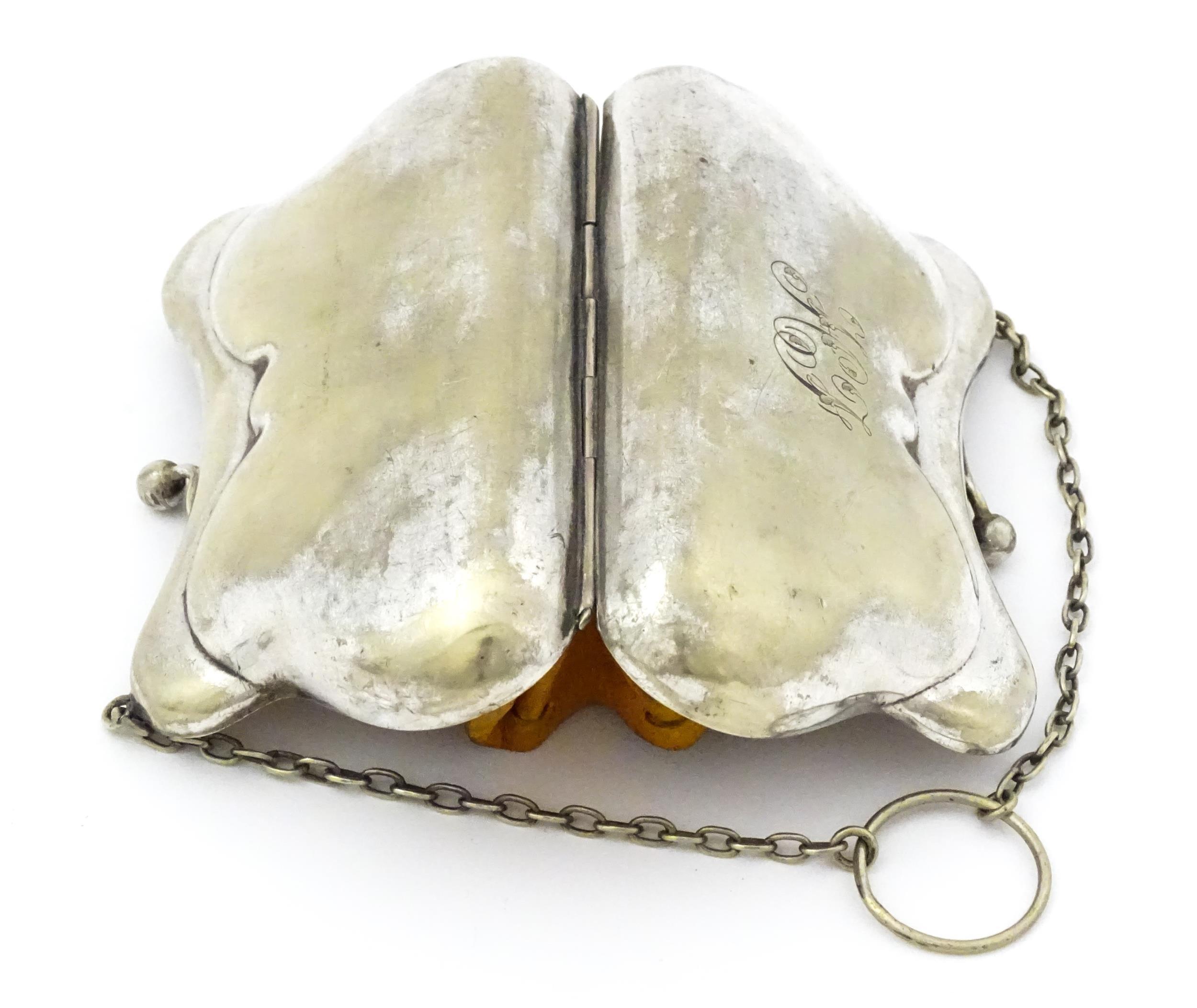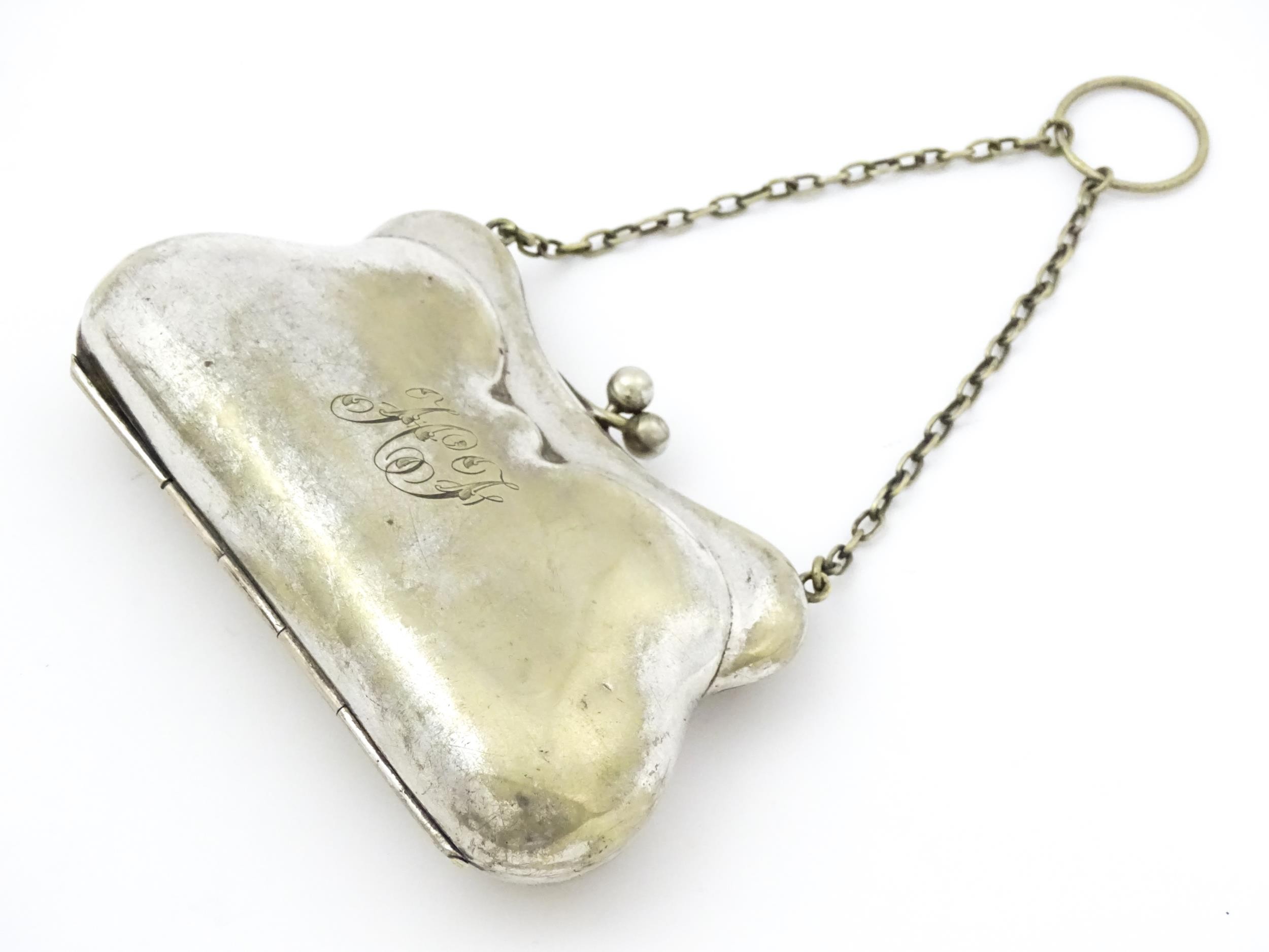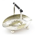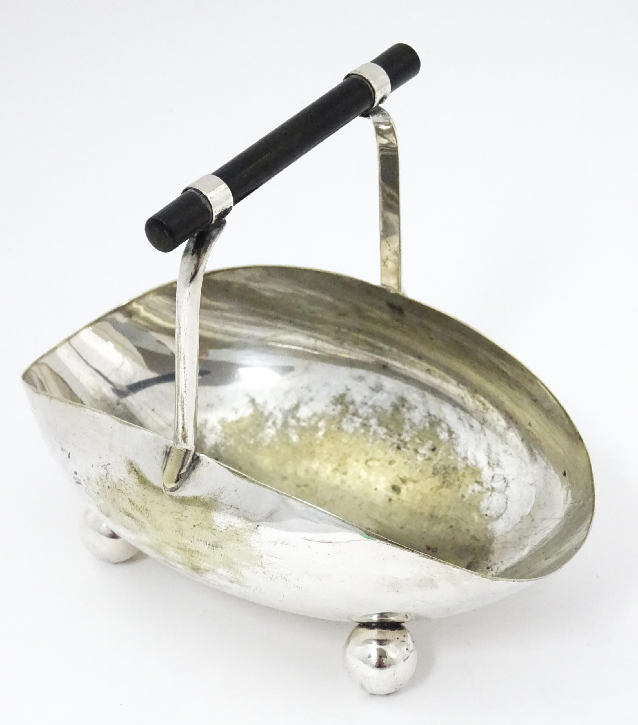 A silver plate sugar basket in the manner of Christopher Dresser. Together with a silver plate purse. Sugar bowl Approx. 6 1/4" wide (2)
