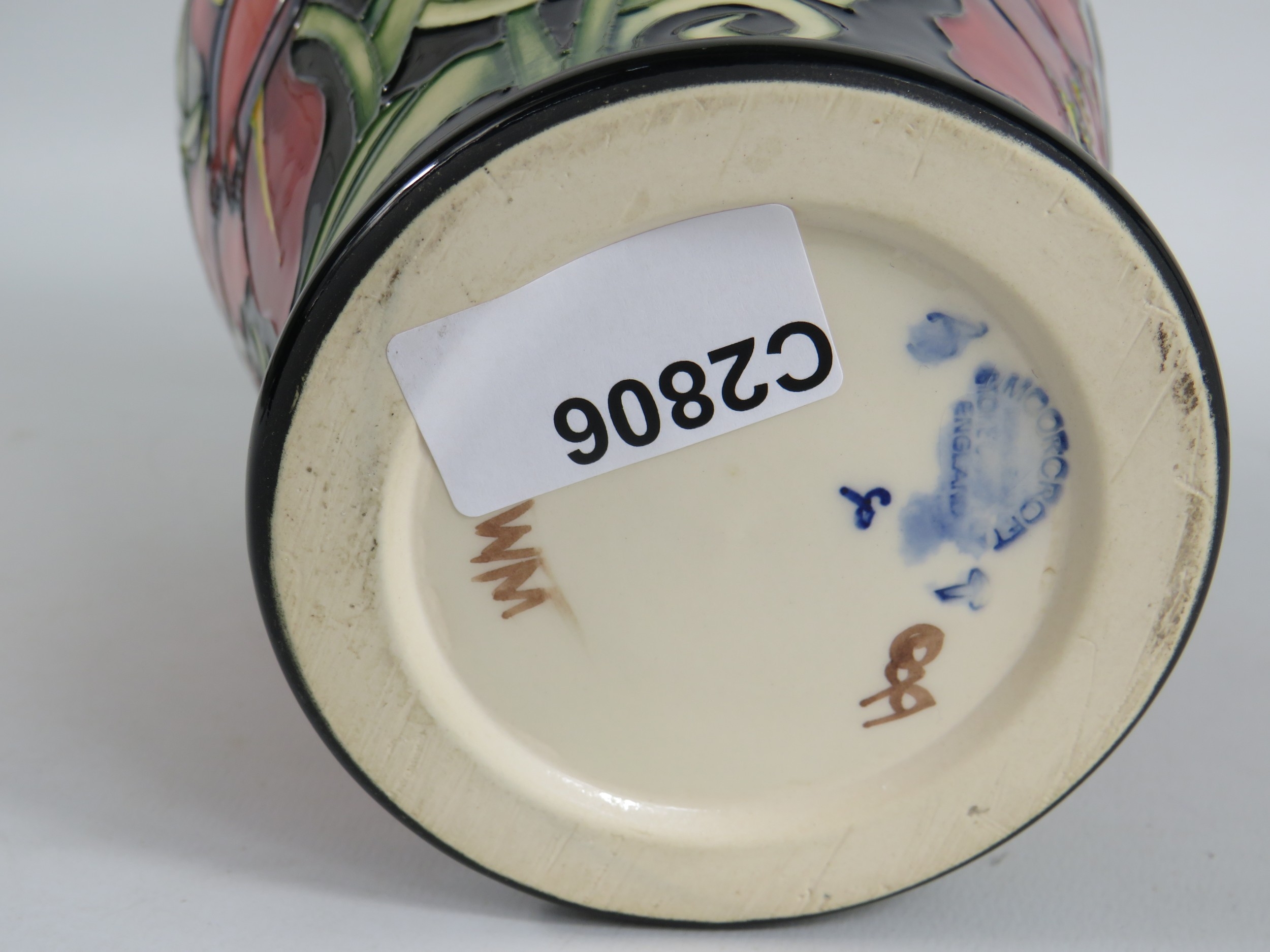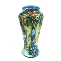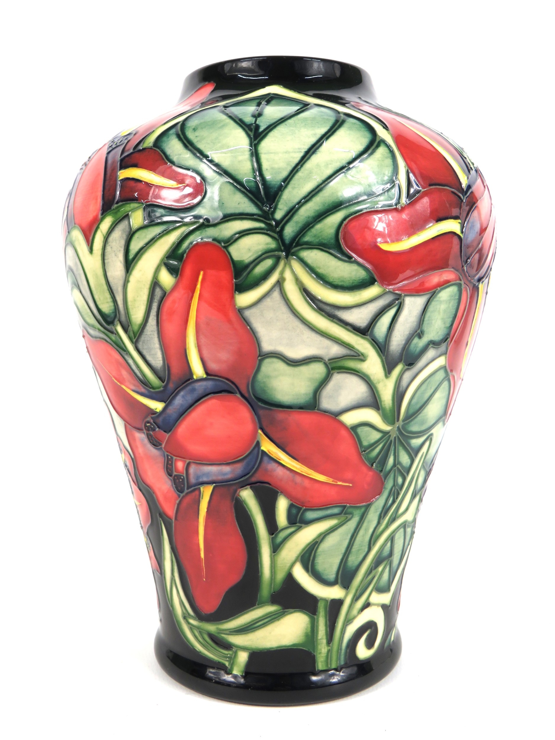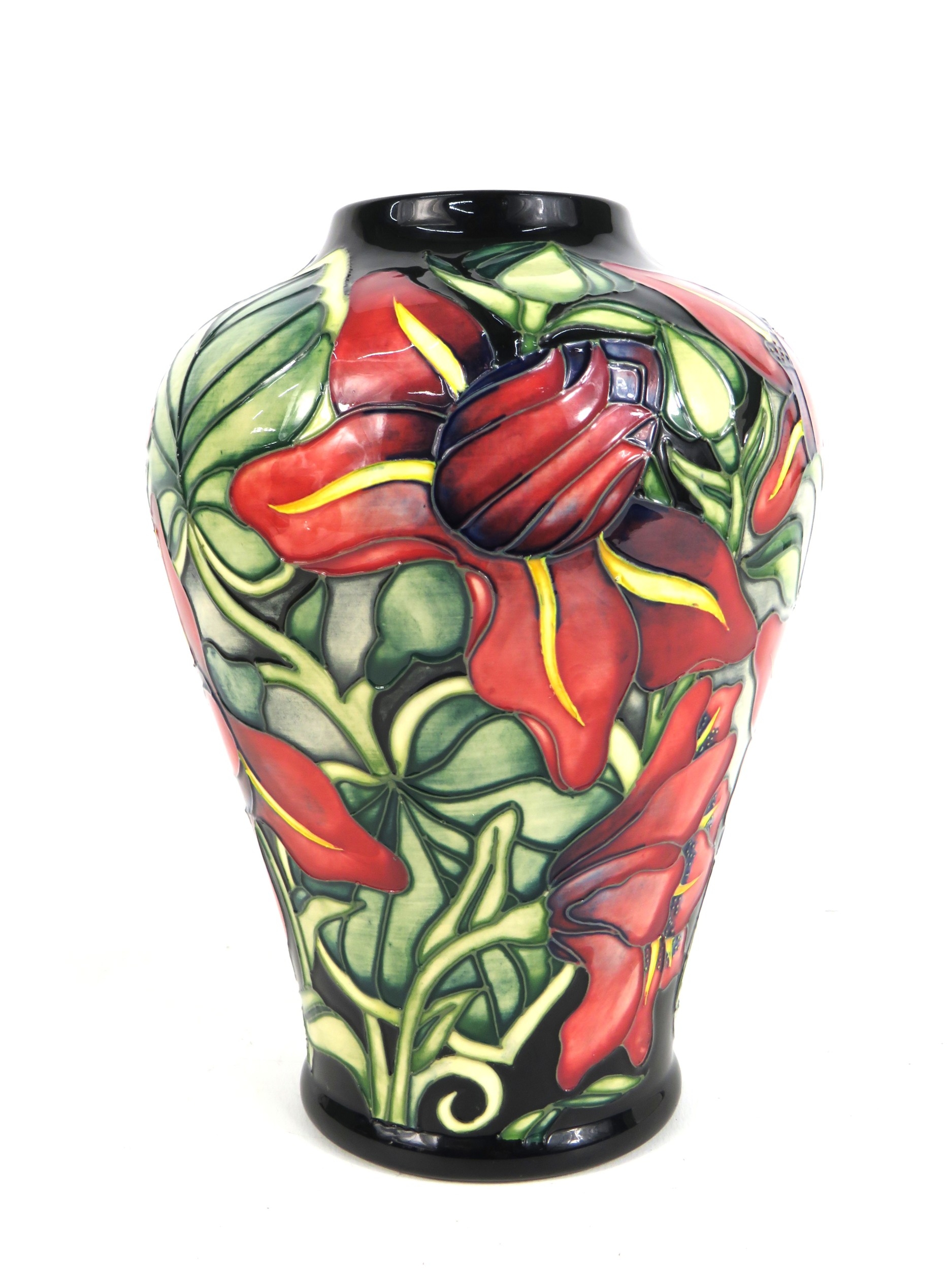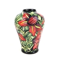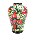 Moorcroft vase Palmata design with red floral design on black ground - 23cm tall