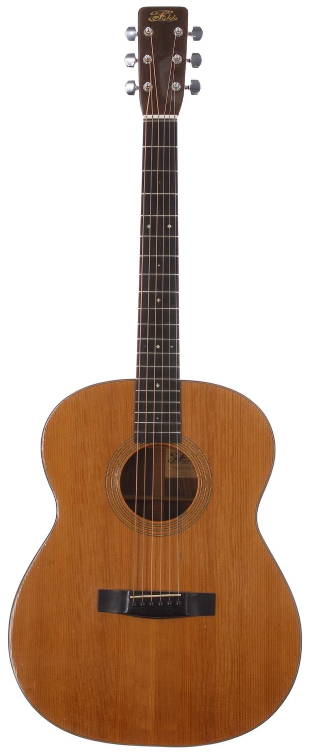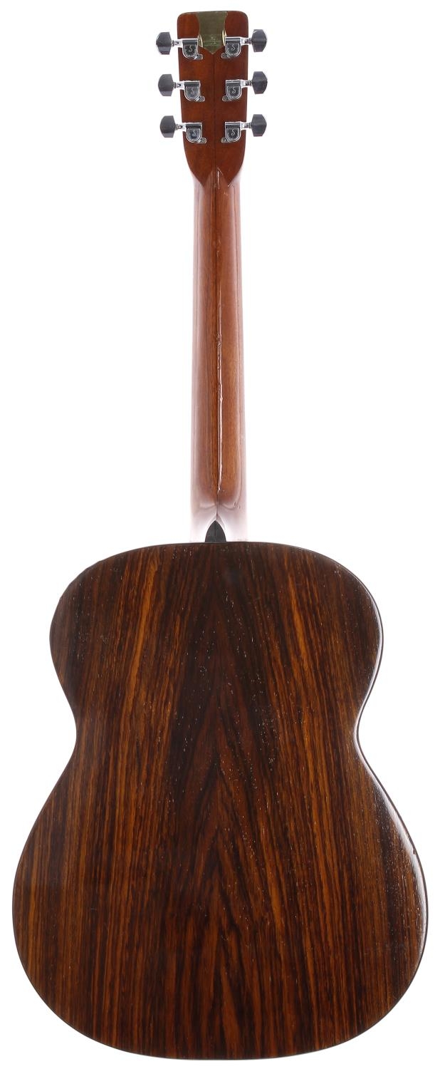 1976 Fylde Oberon acoustic guitar, made in Kirkham, England, Back and sides: rosewood, back refinished, some dings and marks to edges; Top: Spruce, some dings and play wear throughout; Neck: Mahogany, previously reset; Fretboard: rosewood, wear to first and second playing position, some minor chips; Frets: playable but with edge sprouting throughout; Hardware: good; Case: Period hard case; Weight: 1.88kg; Overall condition: fair
