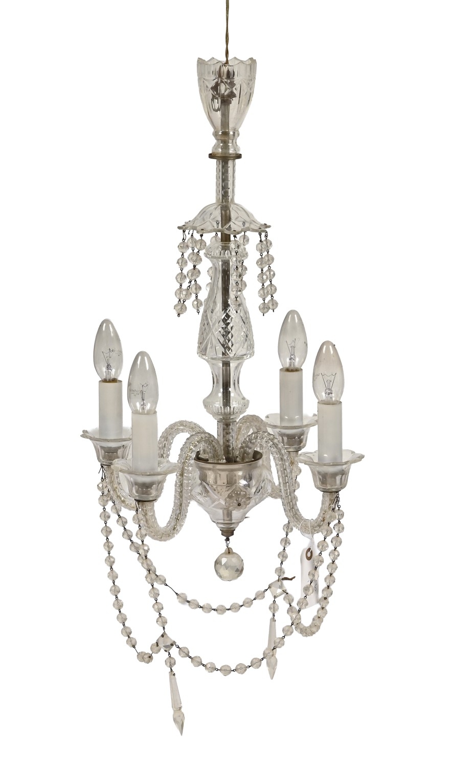 A cut glass four-branch chandelier, early 20th c, 58cm h
