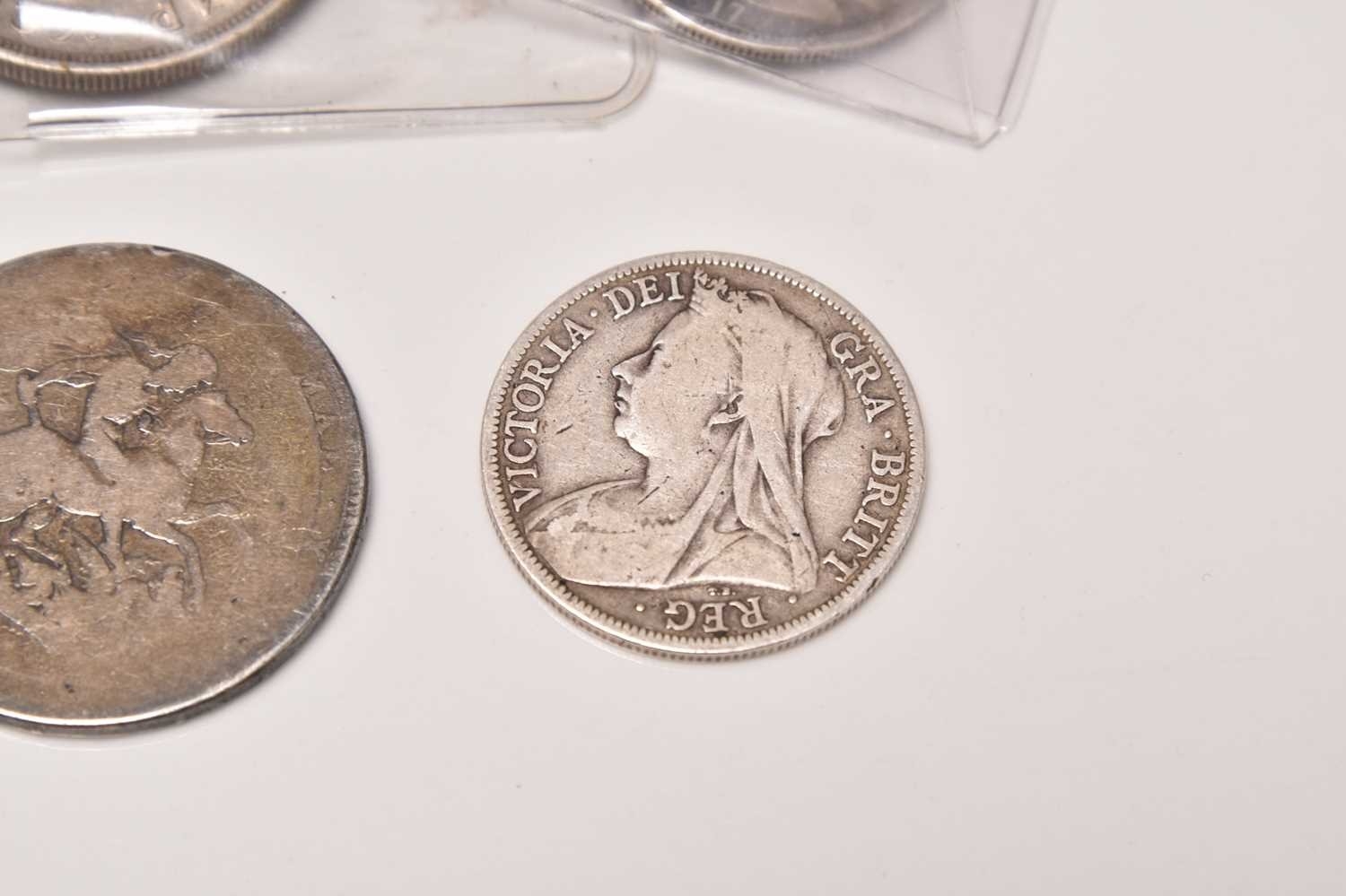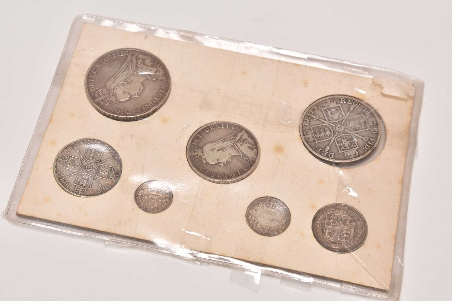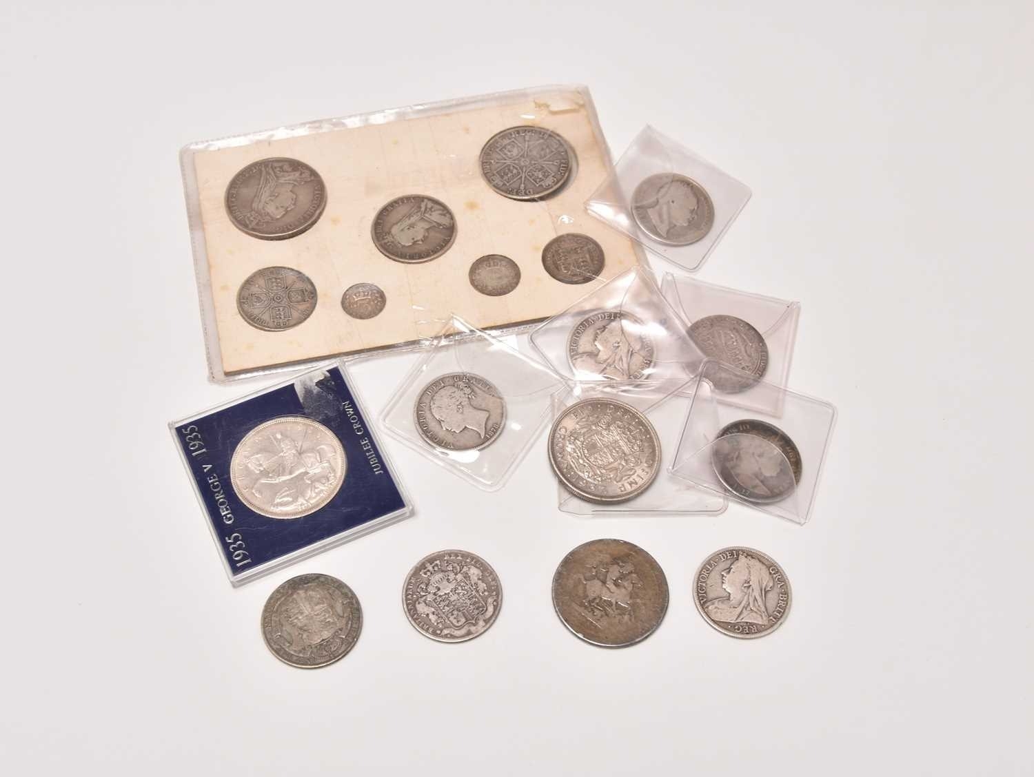 A collection of coinage, to include; Victoria 'The Jubilee Coinage crown to threepence' 7 coin set, crowns and half crowns etc, from George III to George V (a lot)