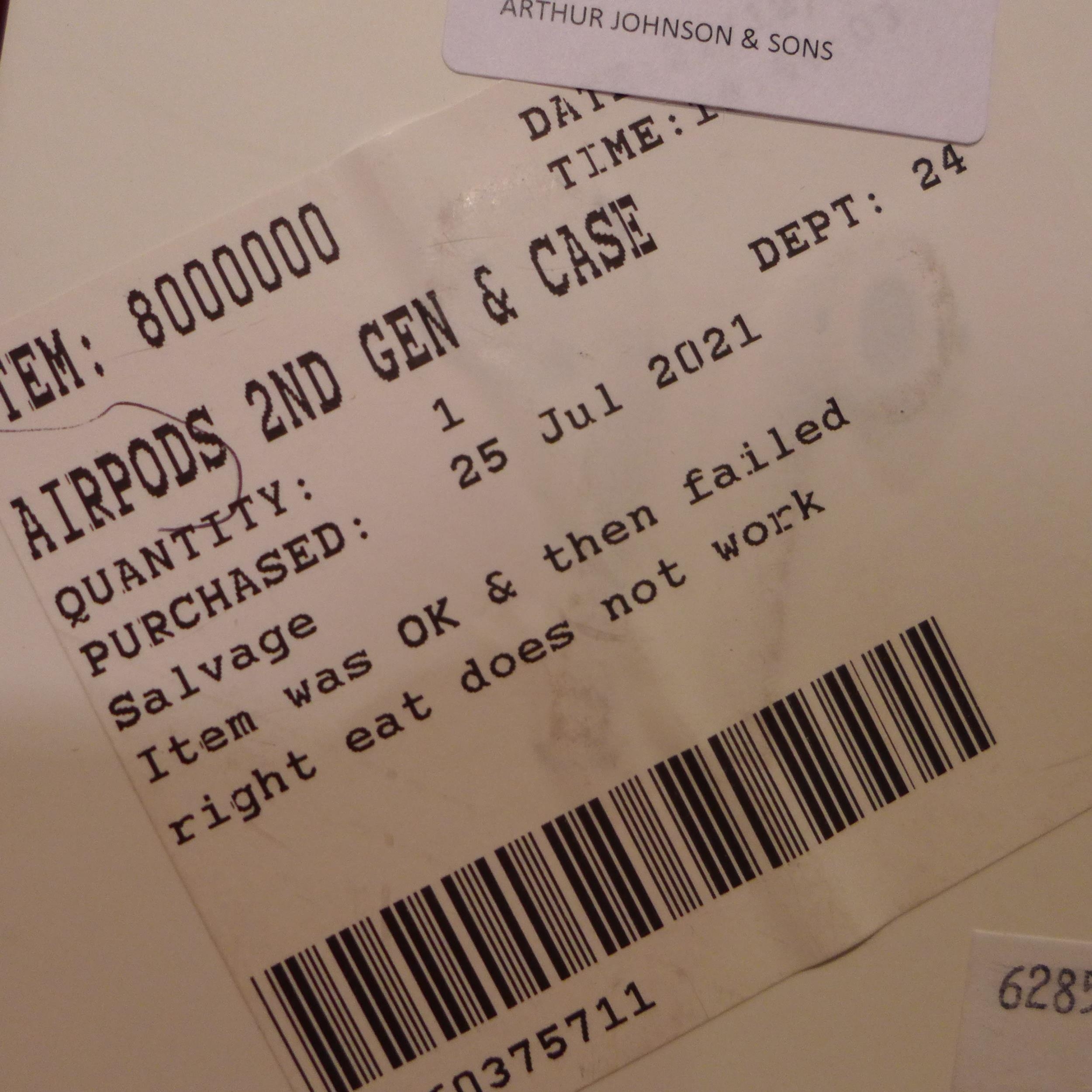 Airpods (2nd Gen) & Case (model:- MV7N2ZMA), original RRP £99.99 + VAT (245-245) * This lot is subject to VAT