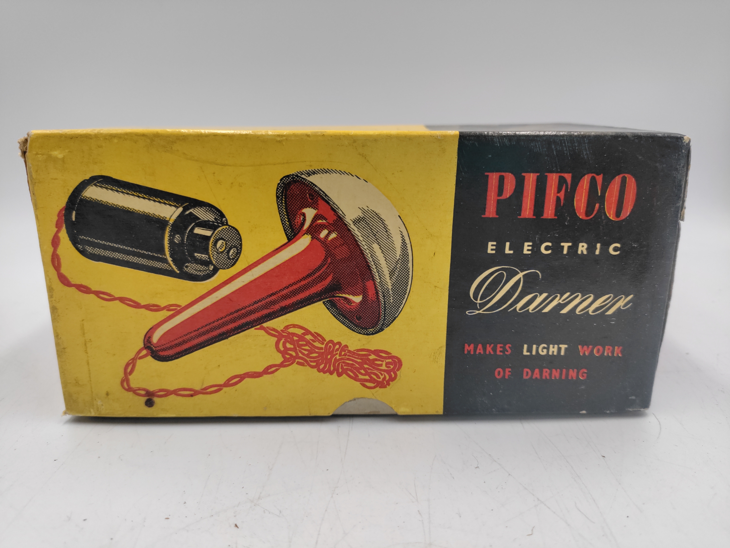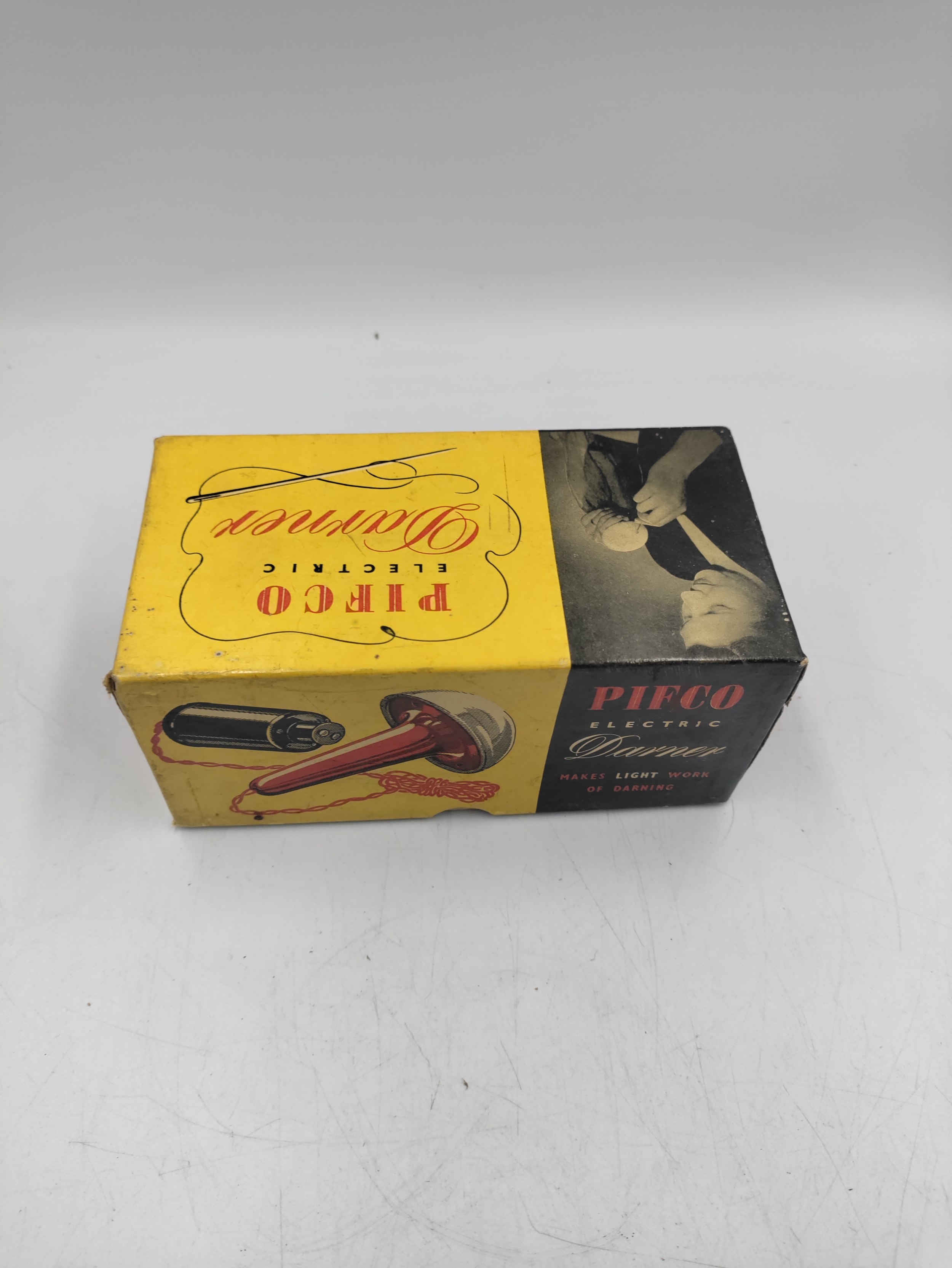 A vintage 1950s pifco electric darner. Tested and working in original box.
