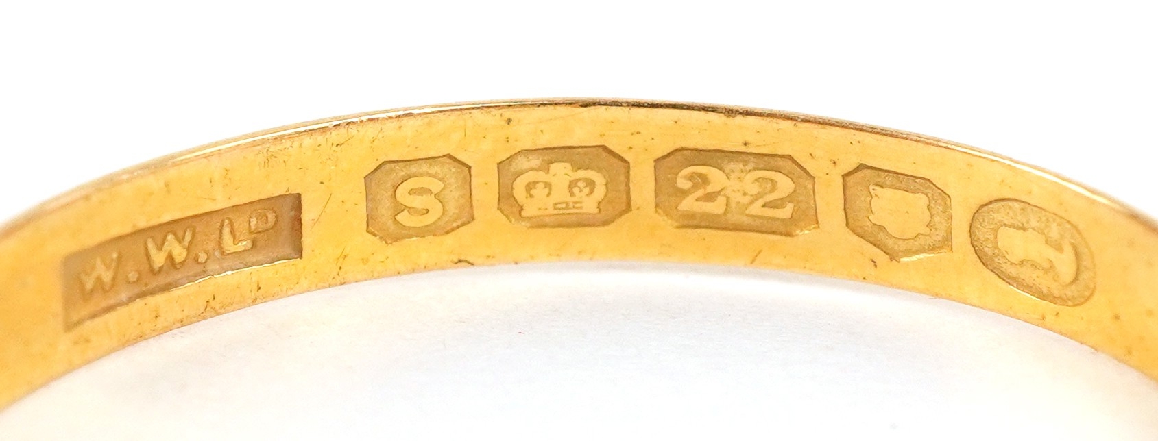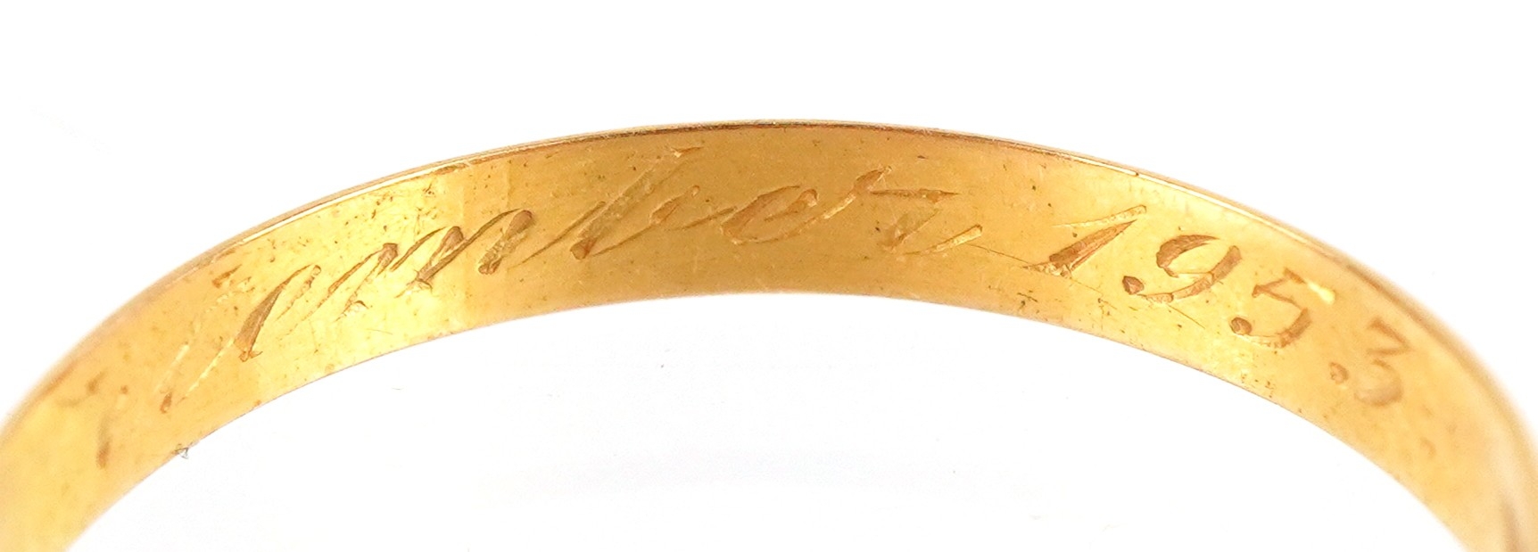 An Elizabeth II 22ct gold wedding band, London 1953, size X, 2.0g.