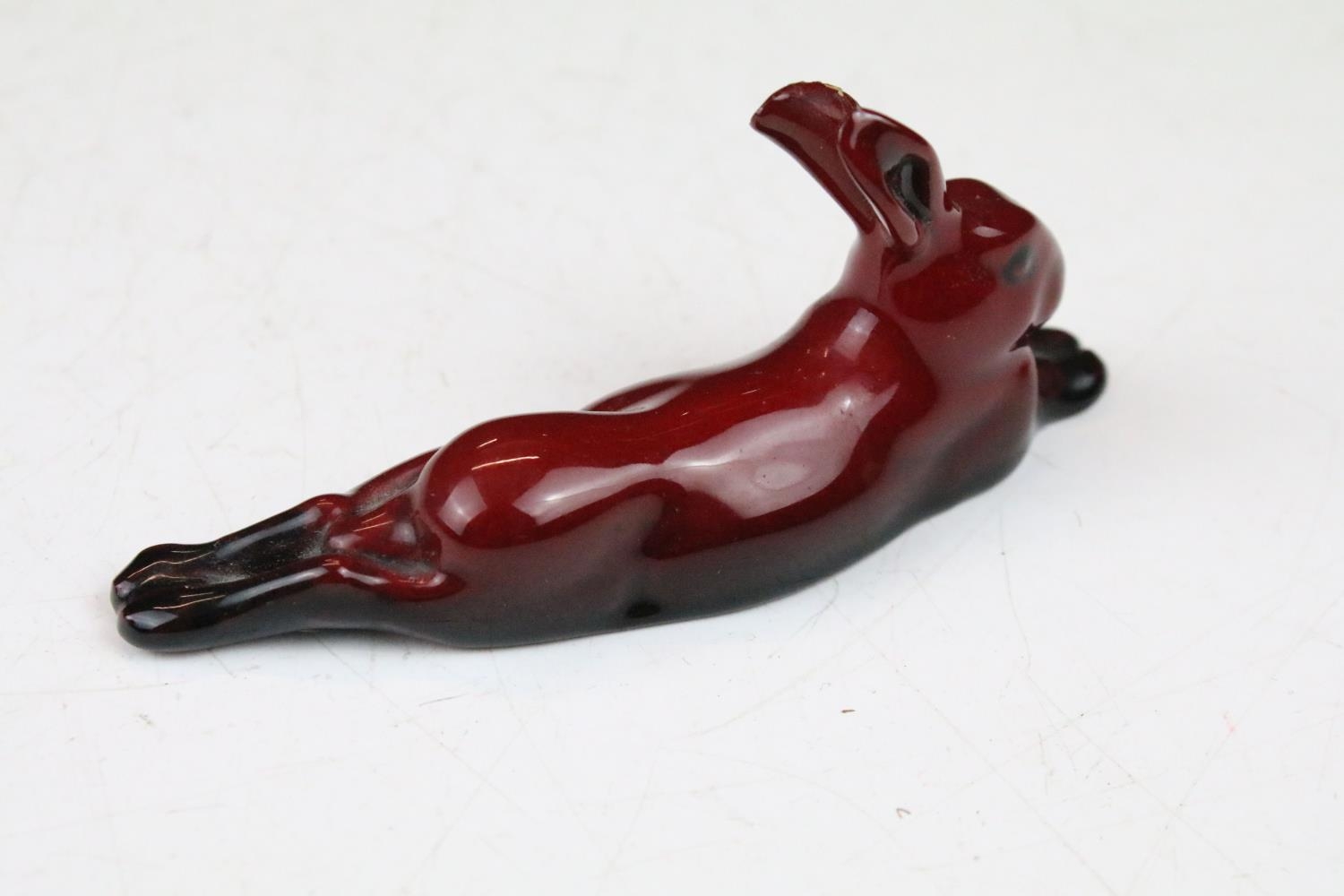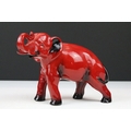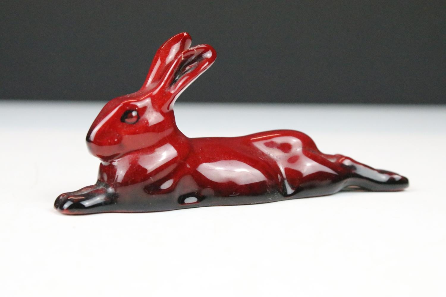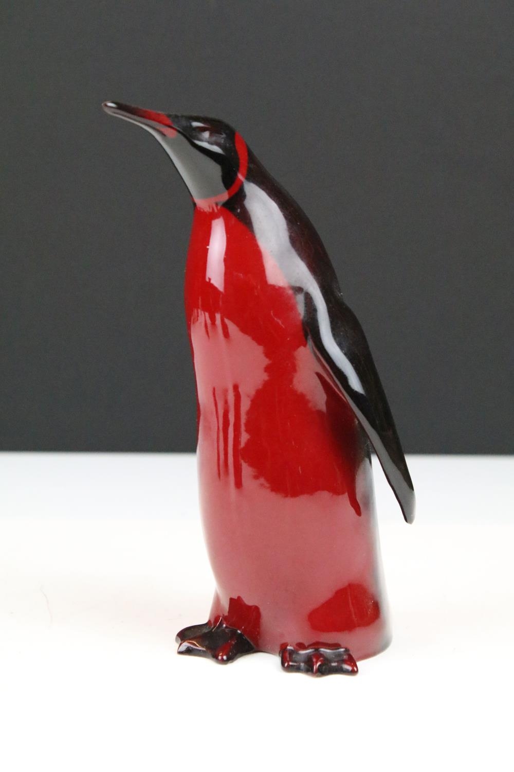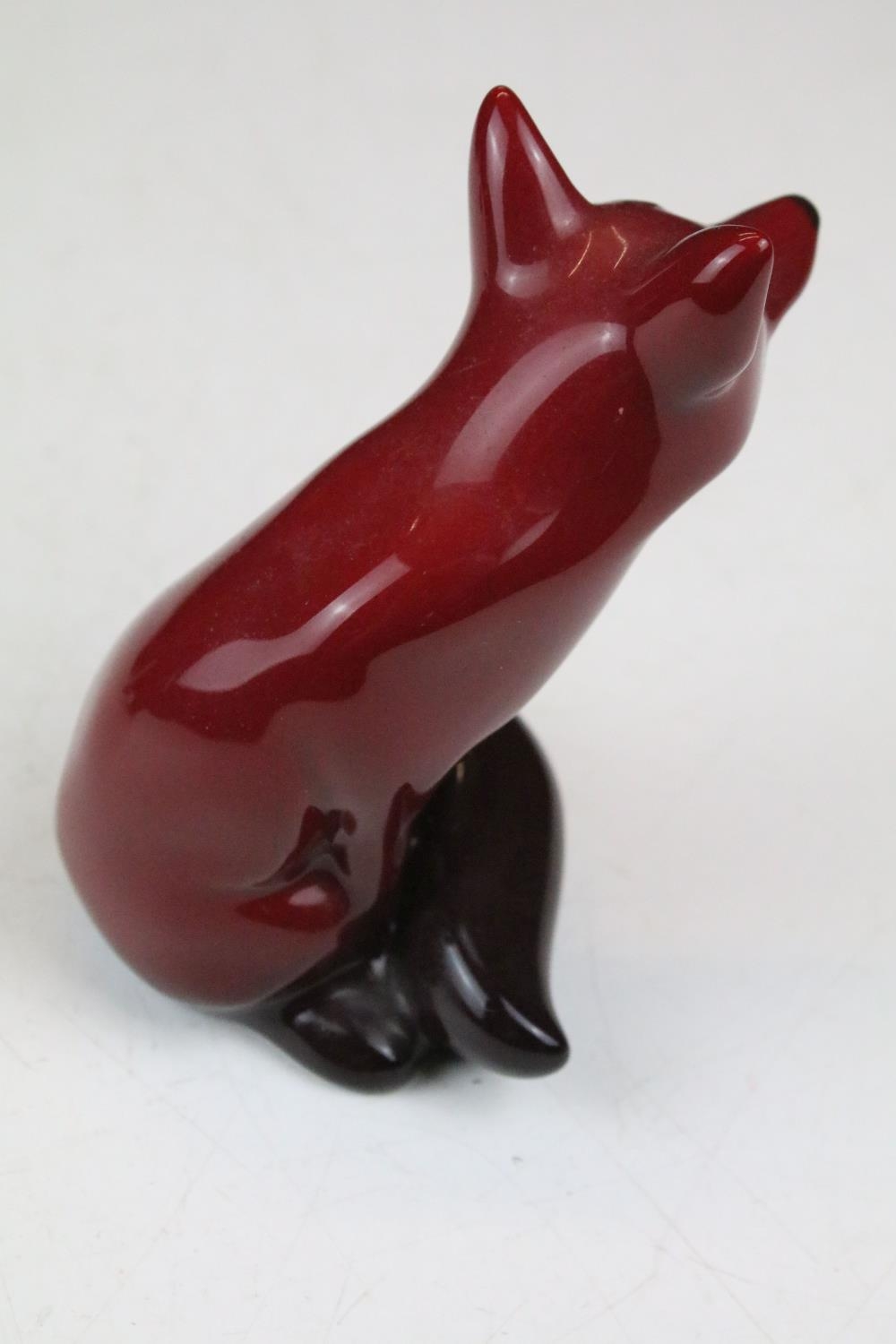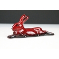 Group of Royal Doulton flambé, five pieces, to include baluster vase, penguin, elephant, fox & hare. Tallest approx 15cm