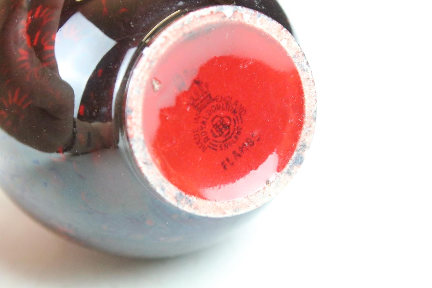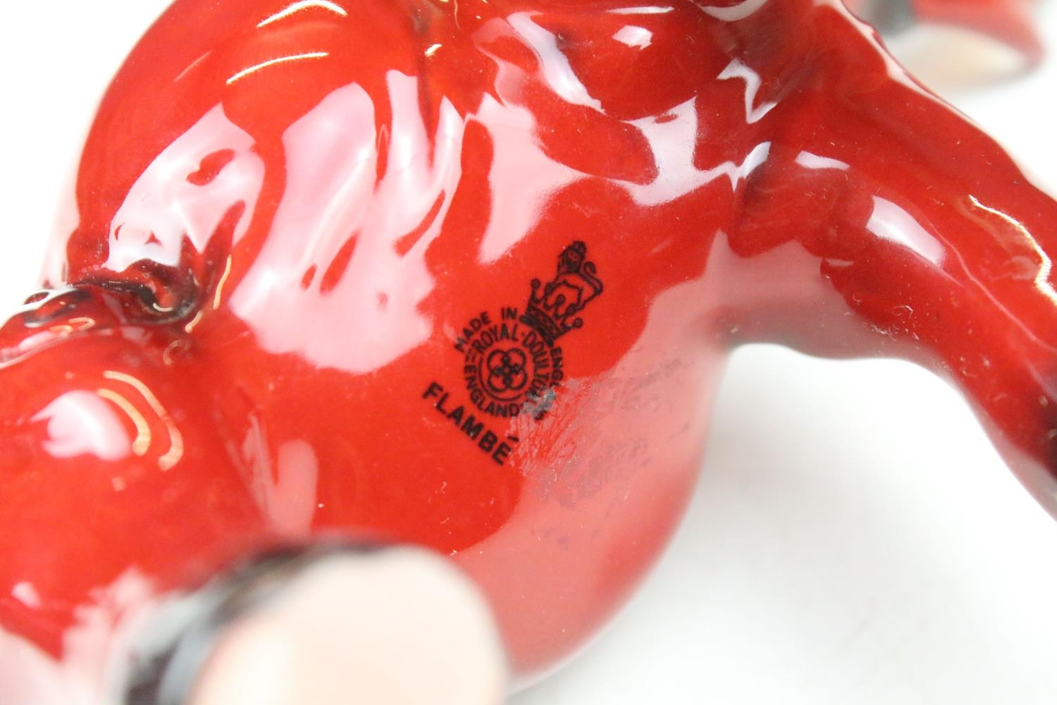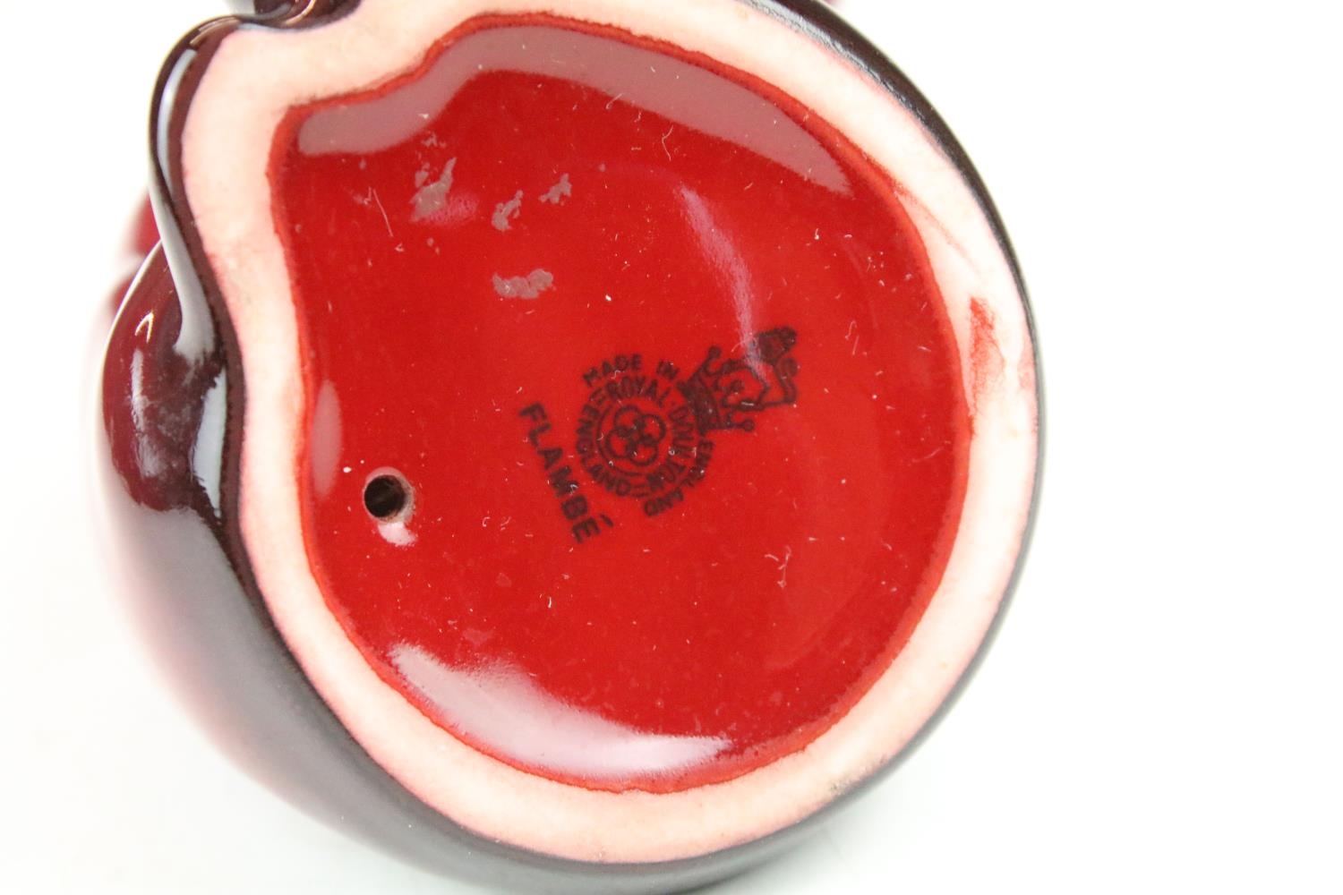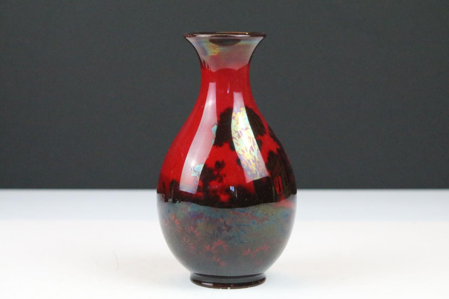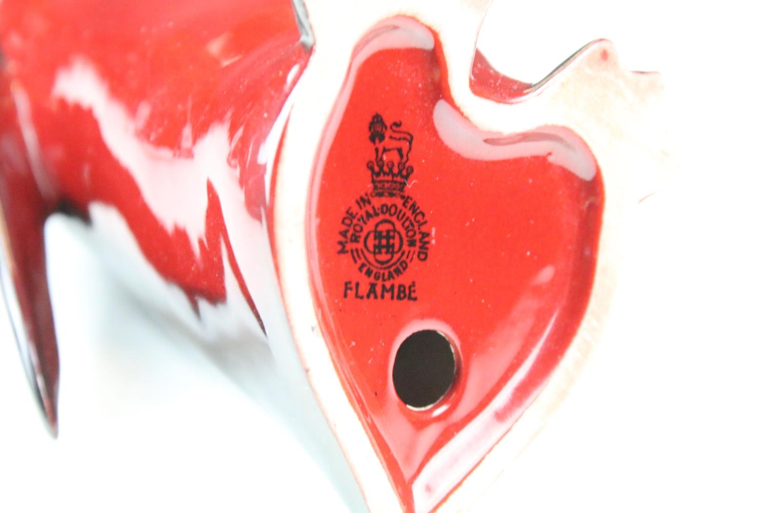 Group of Royal Doulton flambé, five pieces, to include baluster vase, penguin, elephant, fox & hare. Tallest approx 15cm