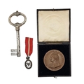 AN EARLY 20TH CENTURY INDIAN WHITE METAL COMMEMORATIVE KEY