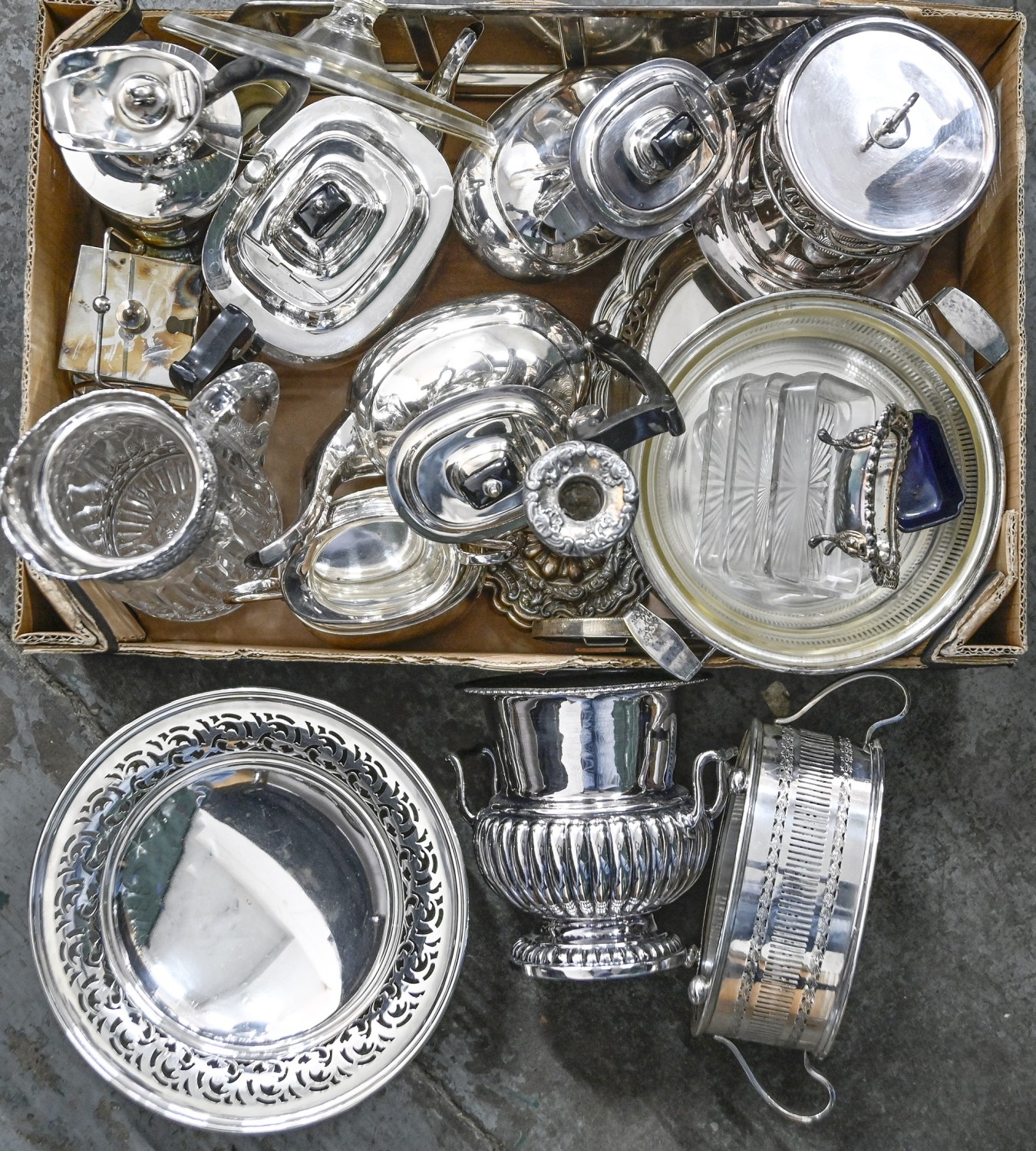 Miscellaneous EPNS and other metalware, Victorian and later, including five-piece tea and coffee service, cut glass lemonade jug, wine cooler, pierced tazza, biscuit barrel, etc