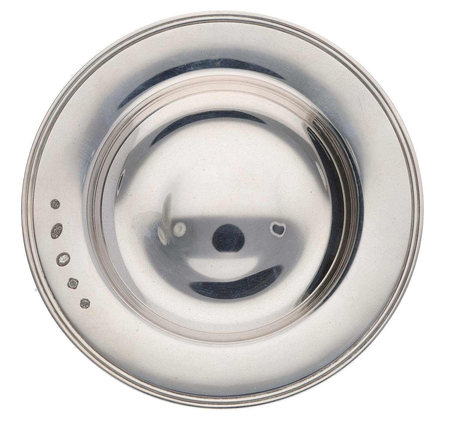 Modern silver Drakes/Armada dish, maker Francis Howard Ltd Sheffield, Charles head hallmark, 4" diameter, 52gm