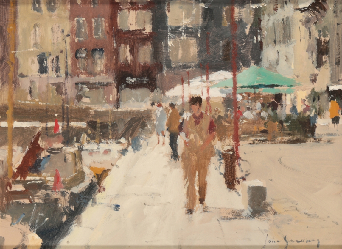 *JOHN YARDLEY (b. 1933) 'Quayside, Honfleur'signed lower left, oil on board, 22cm x 30cm37cm x 45cm overall: