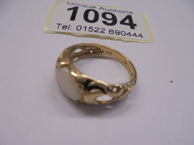 An 14ct (585) gold ring set opal, size L half, 3.47 grams.