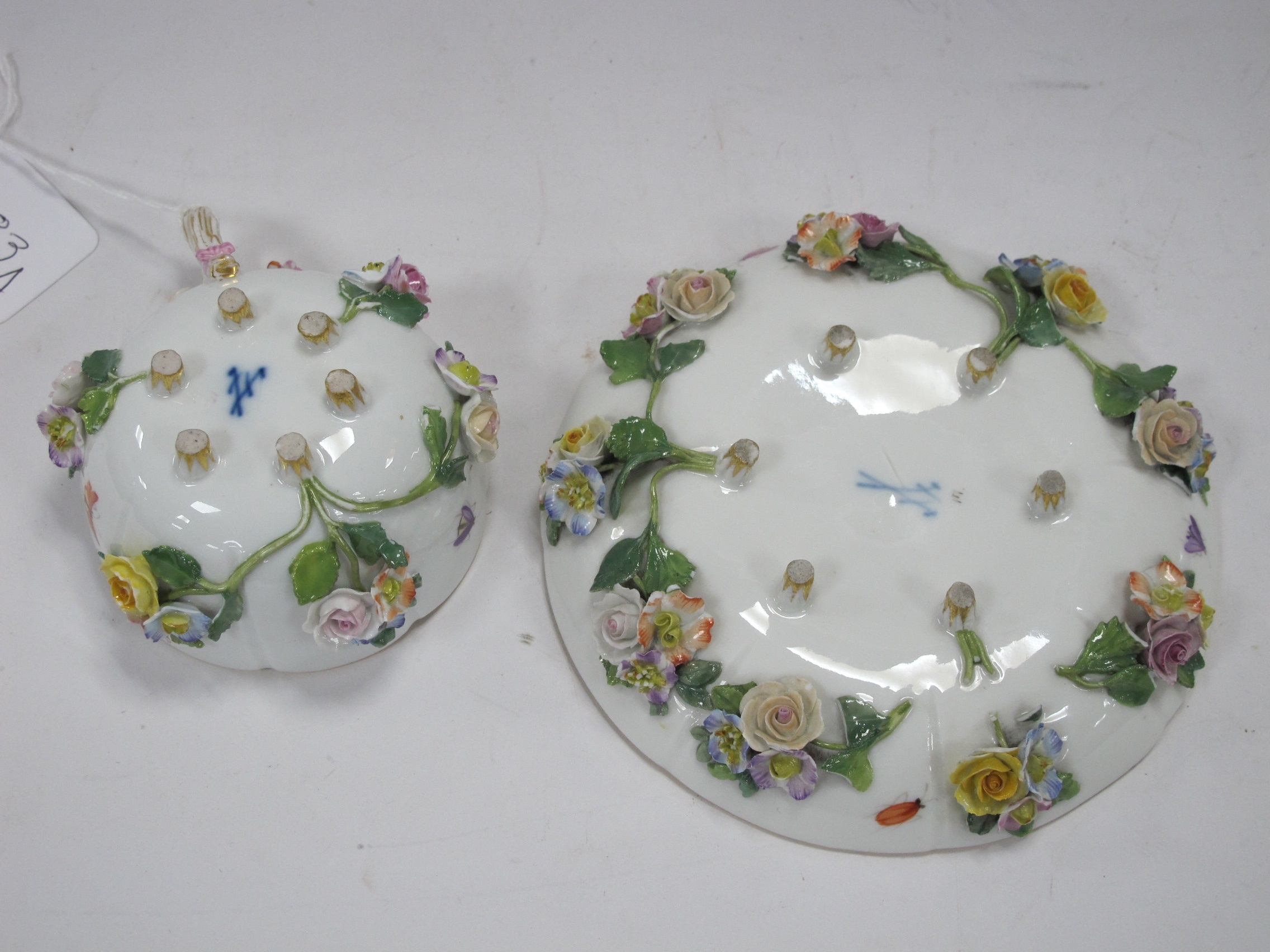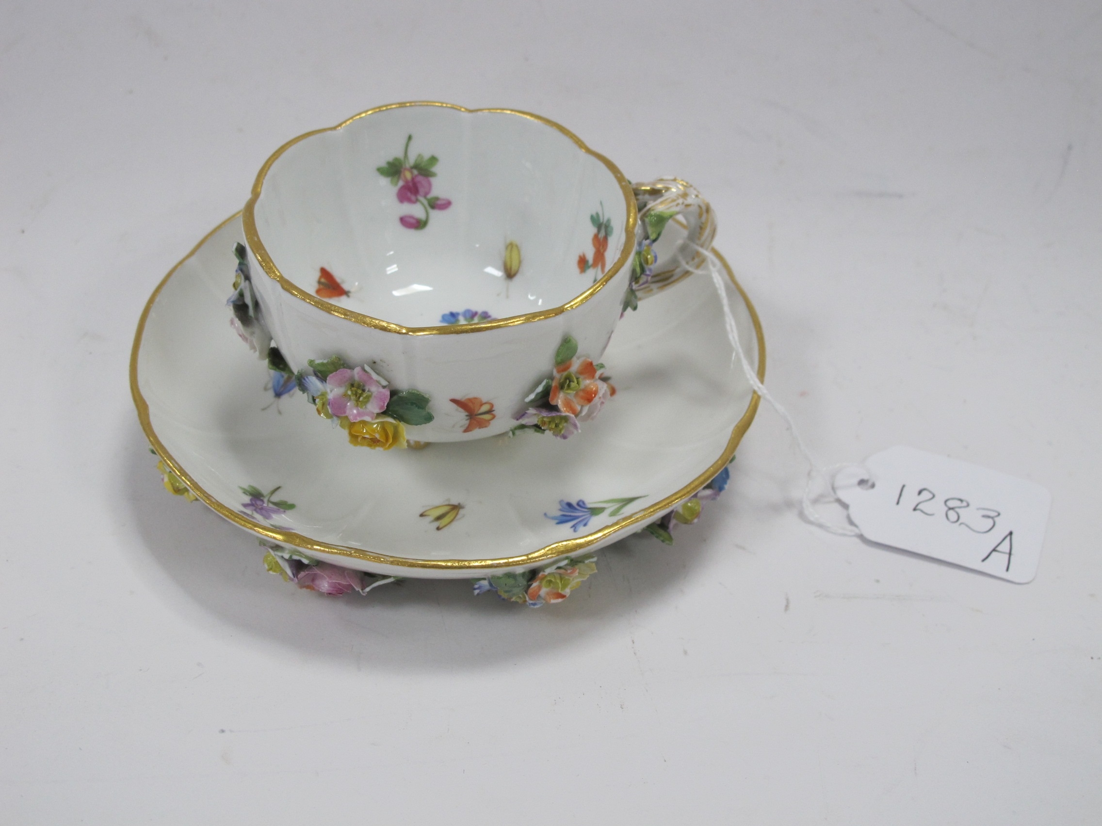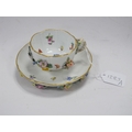 A XIX century Meissen cabinet cup and saucer painted with flowers and insects (with cross swords mark on base)