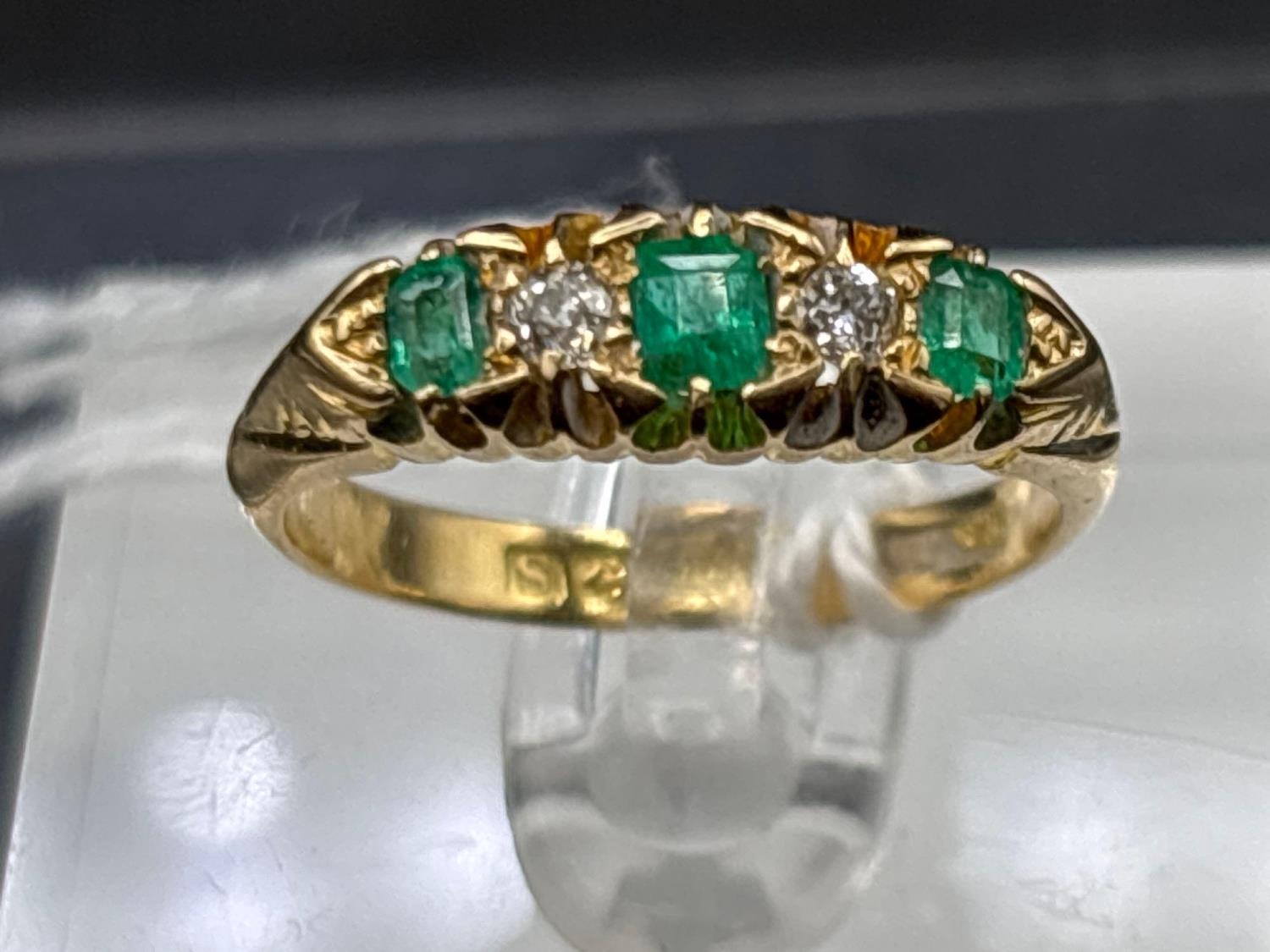 Antique Emerald and diamond 5 stone ring, hallmarked Birmingham 1917, size M