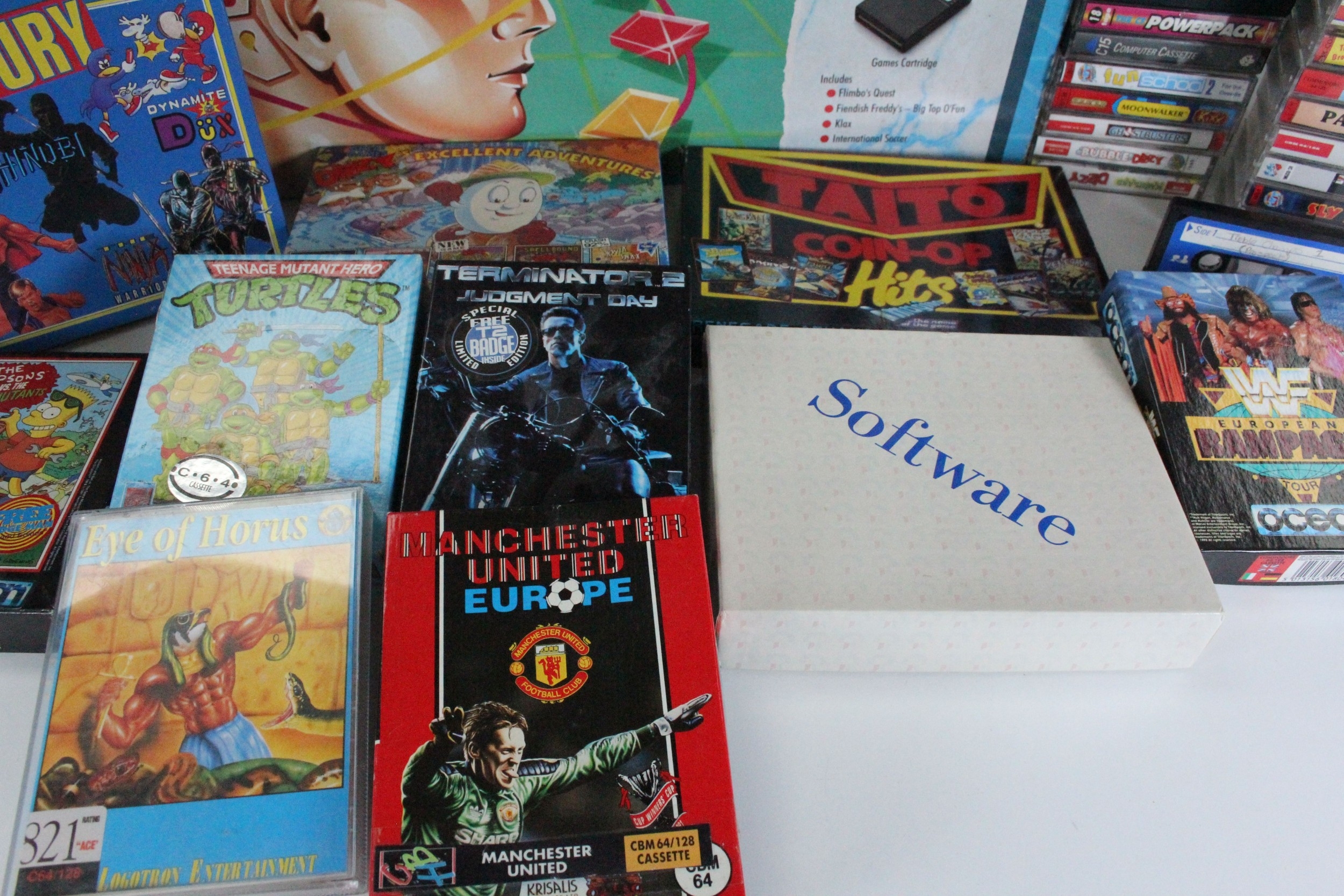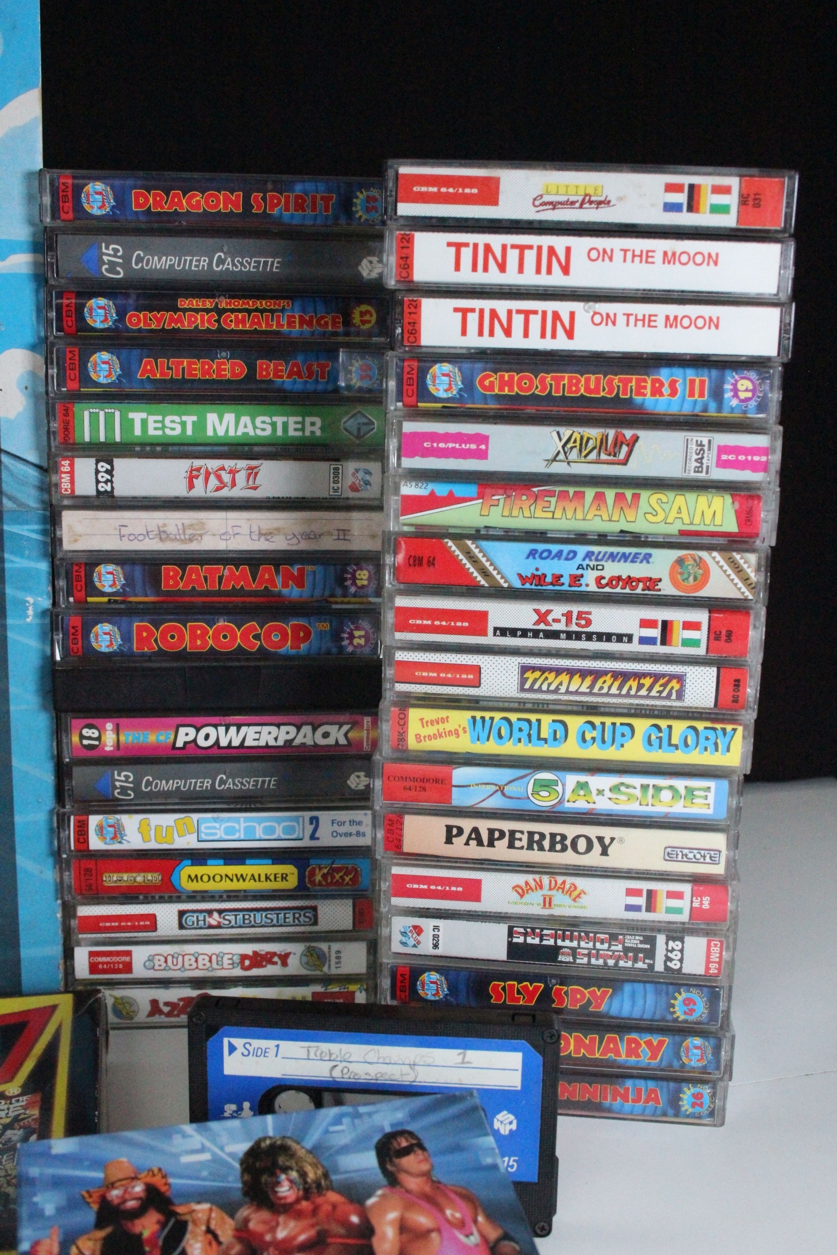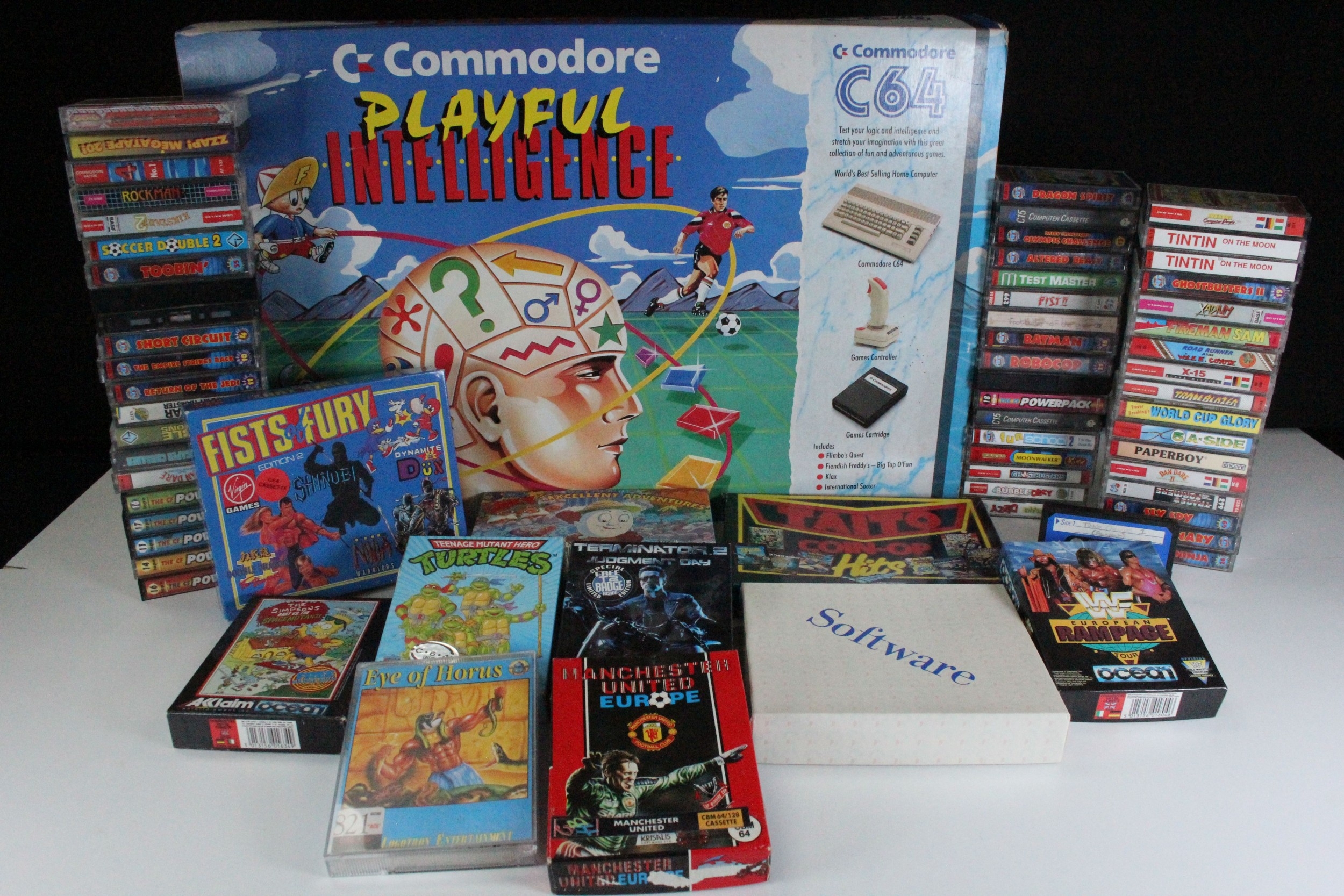 Retro Gaming - Boxed Commodore C64 Playful Intelligence computer system games console, complete, together with a quantity of Commodore 64 games including WWF European Rampage, Fists Of Fury Edition 2, Batman, Robocop, Dragon Spirit, Ghostbusters, etc (2)