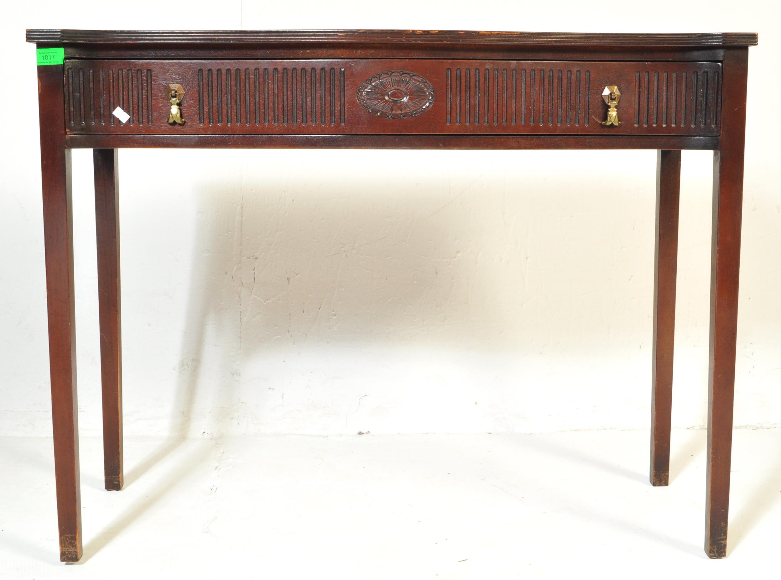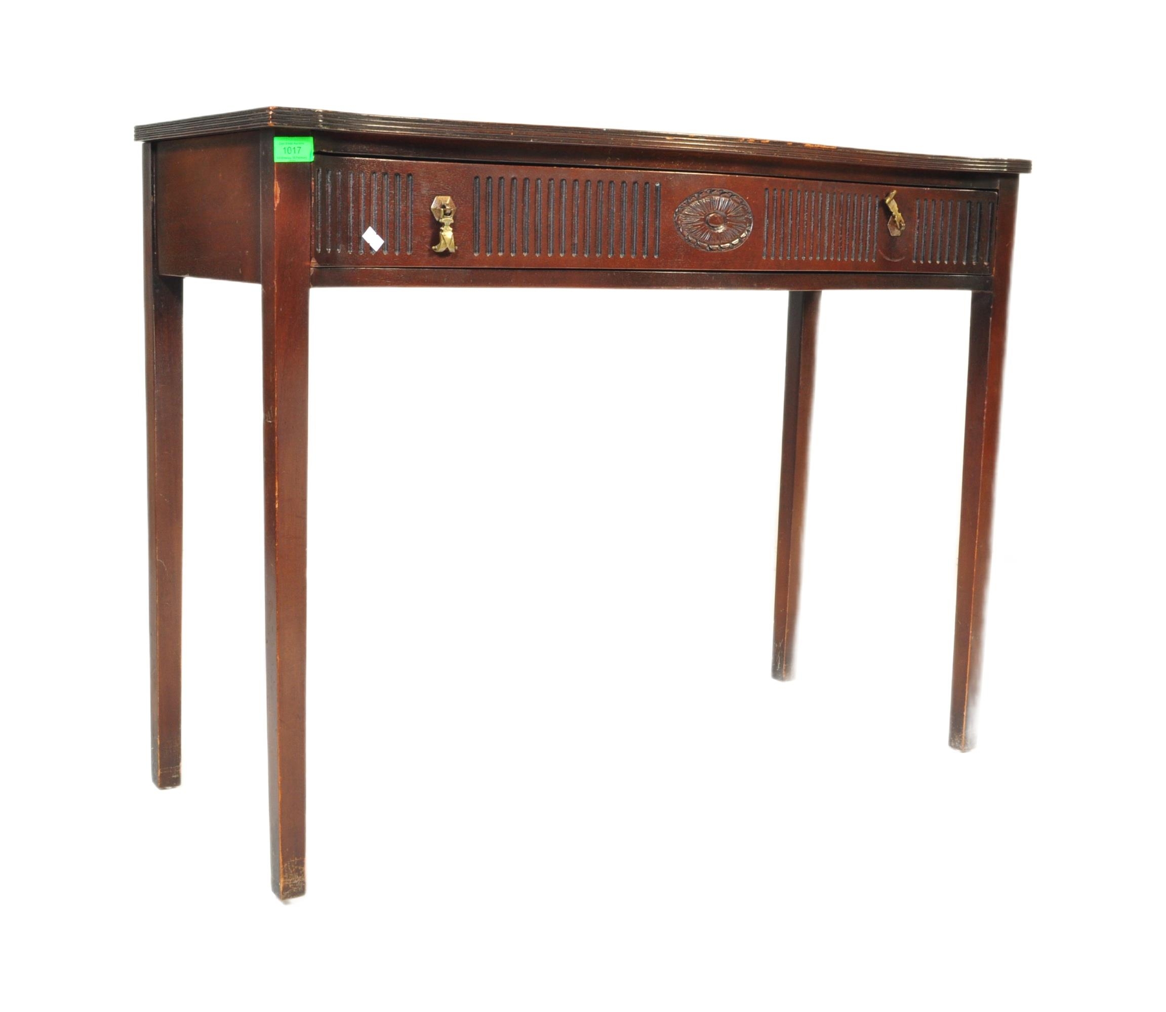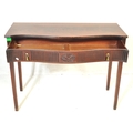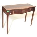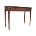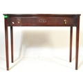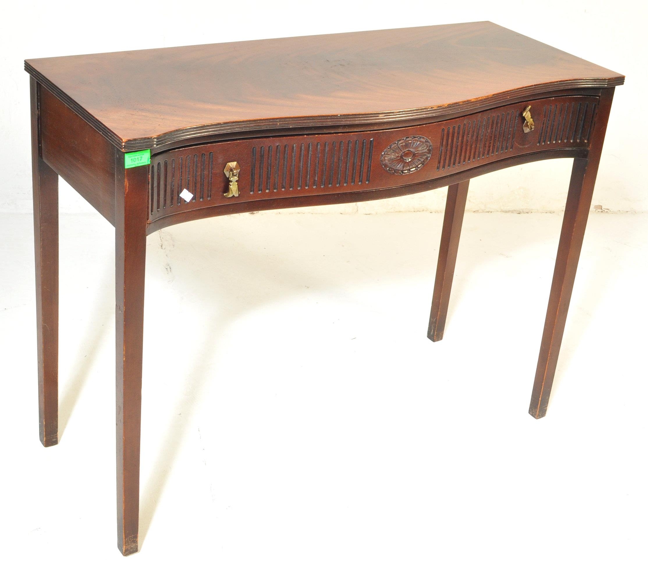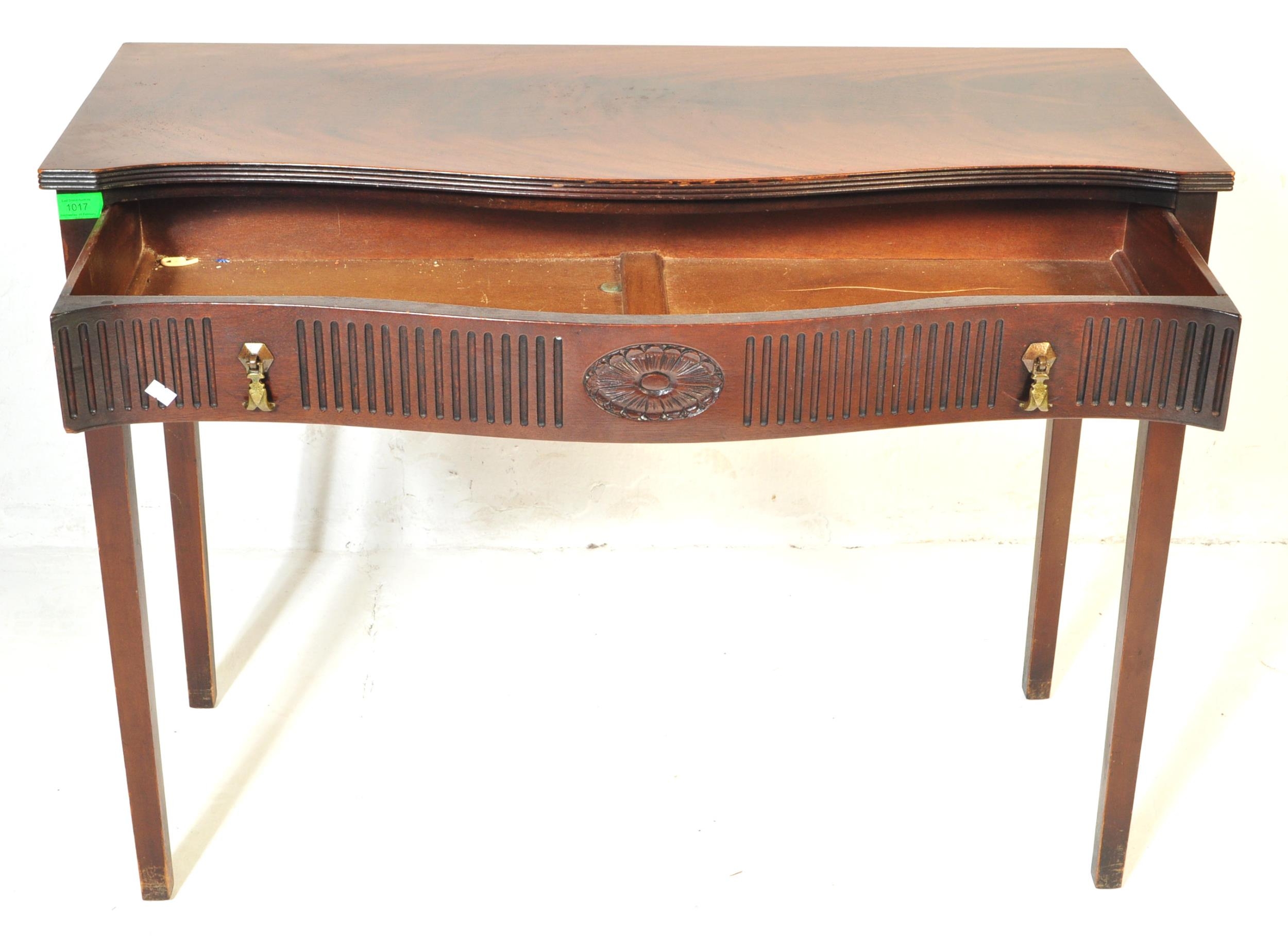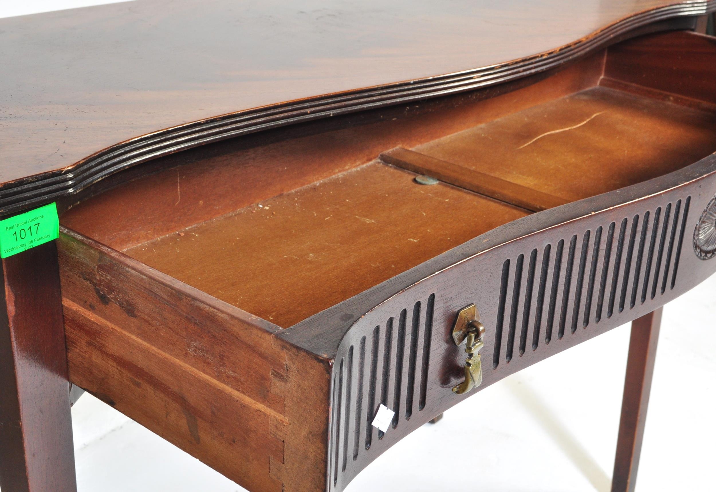 19th century Victorian mahogany Chinese Chippendale revival writing table desk. Raised on squared tapering legs with a serpentine front having carved and reeded detailing with brass drop handles. Flared top above with reeded leading edges