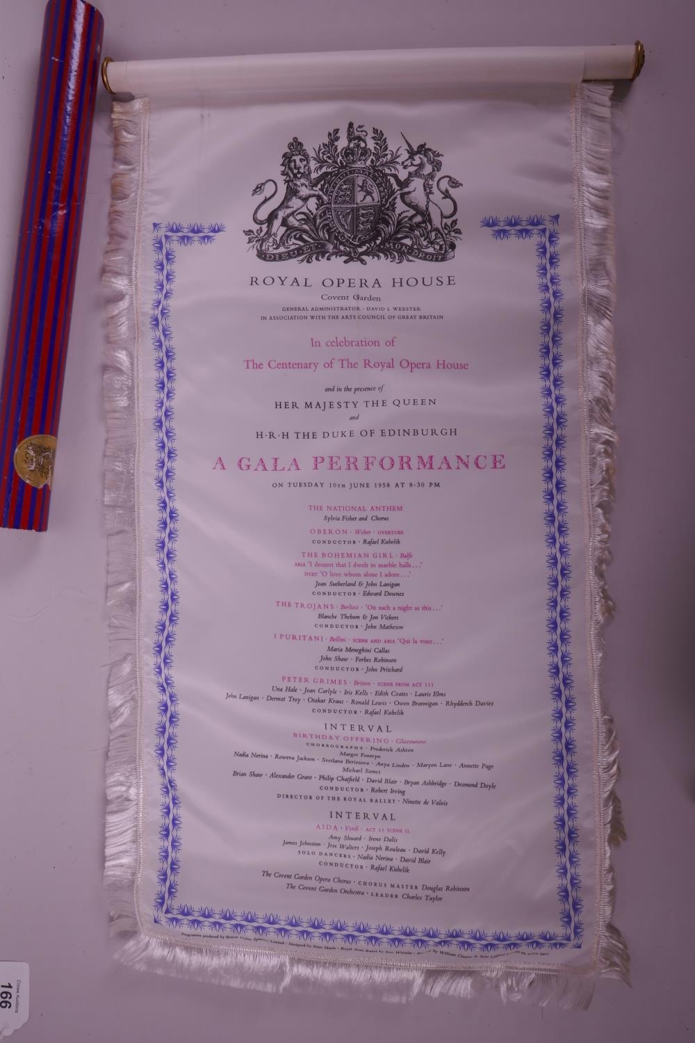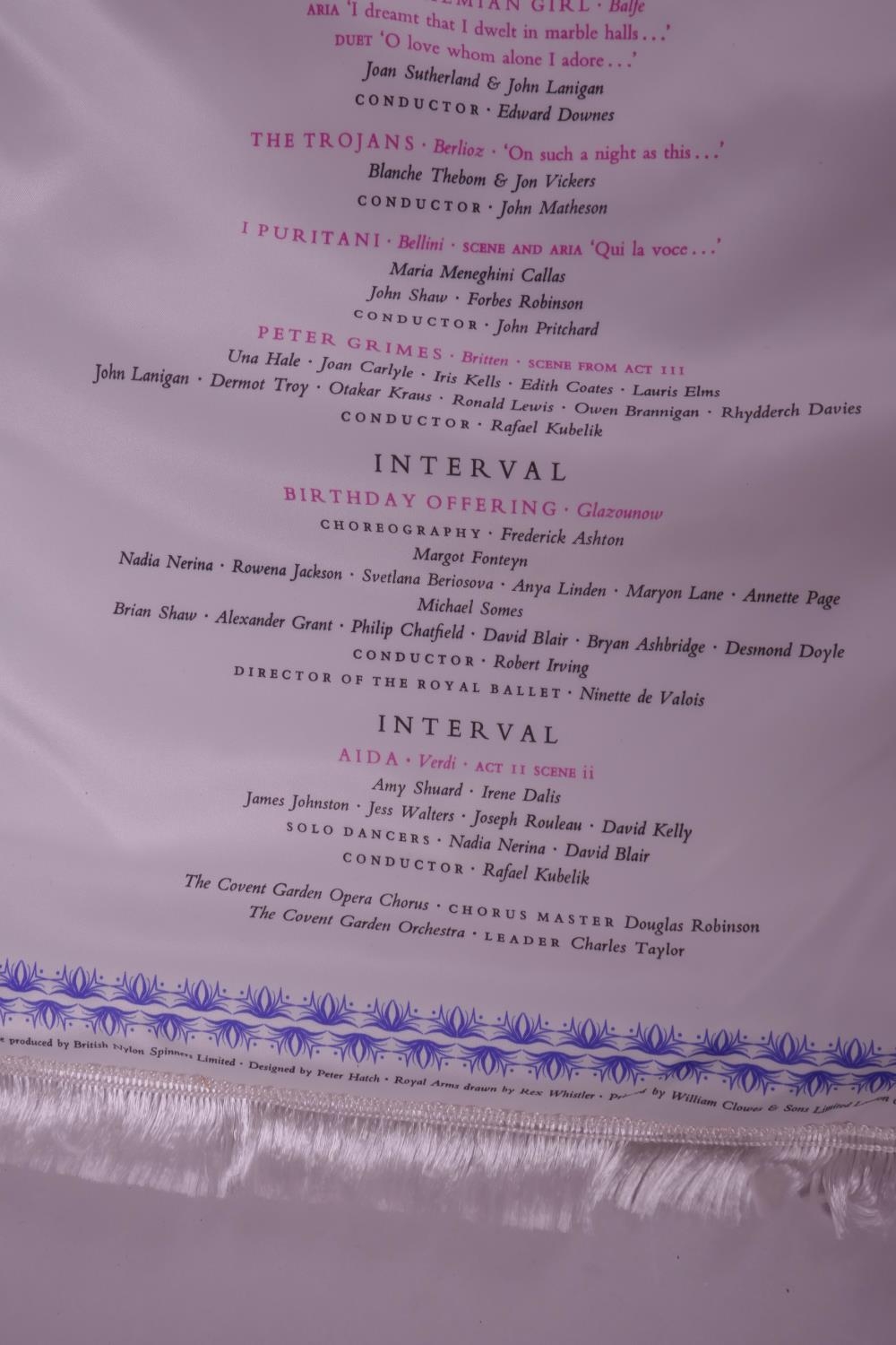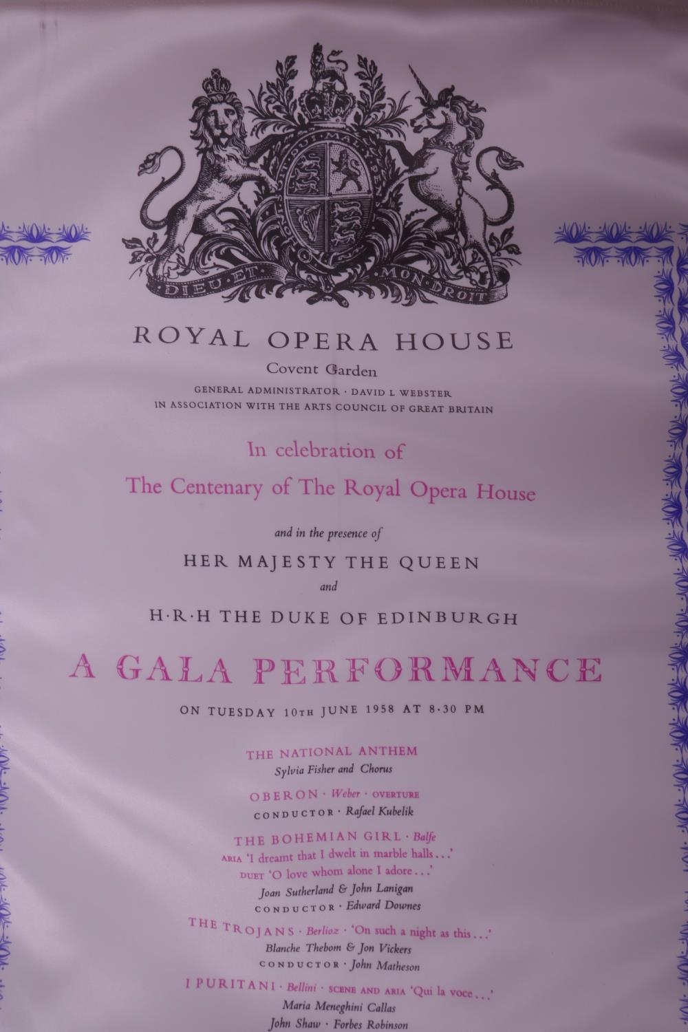 A Royal Opera House silk programme for the gala performance celebrating the centenary of the Royal Opera House on Tuesday 10th June 1958