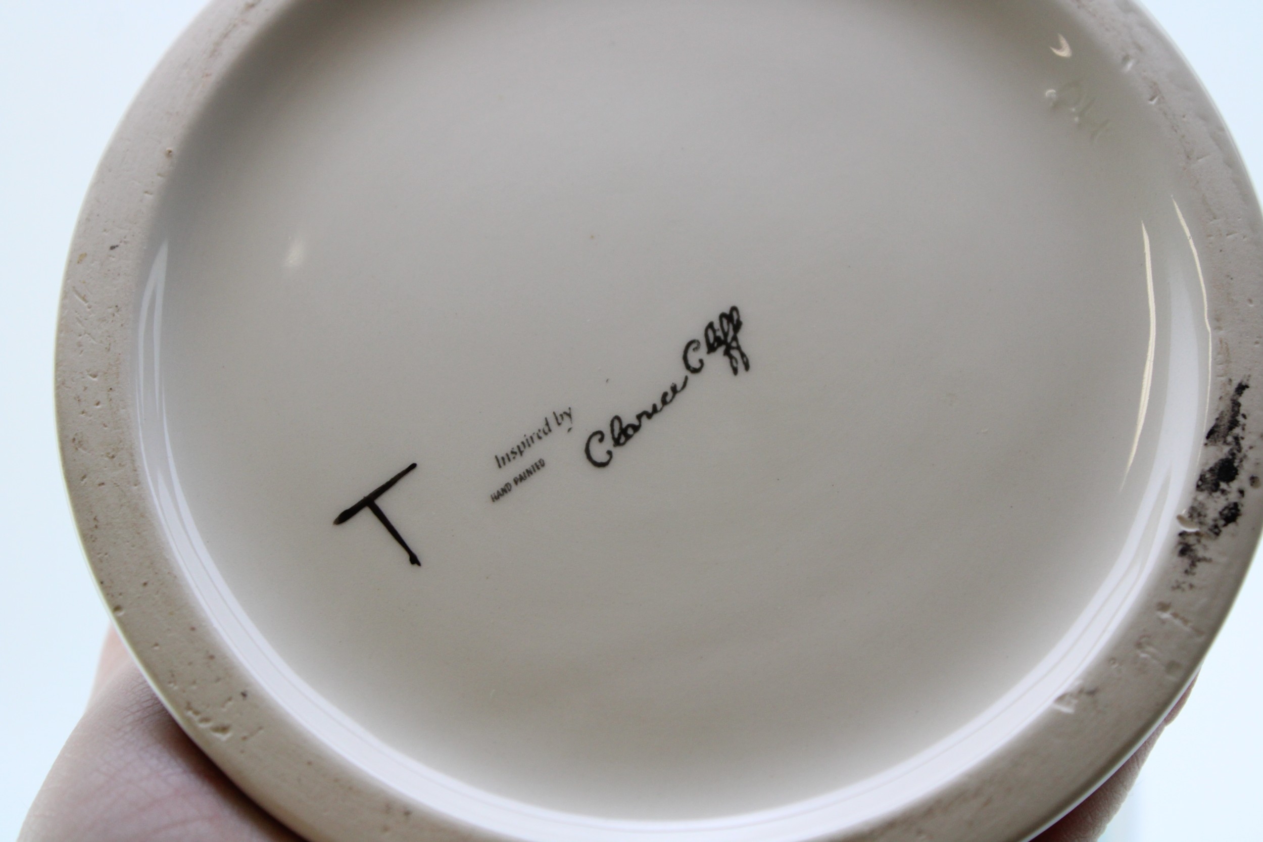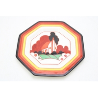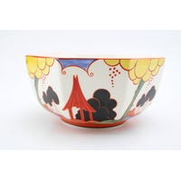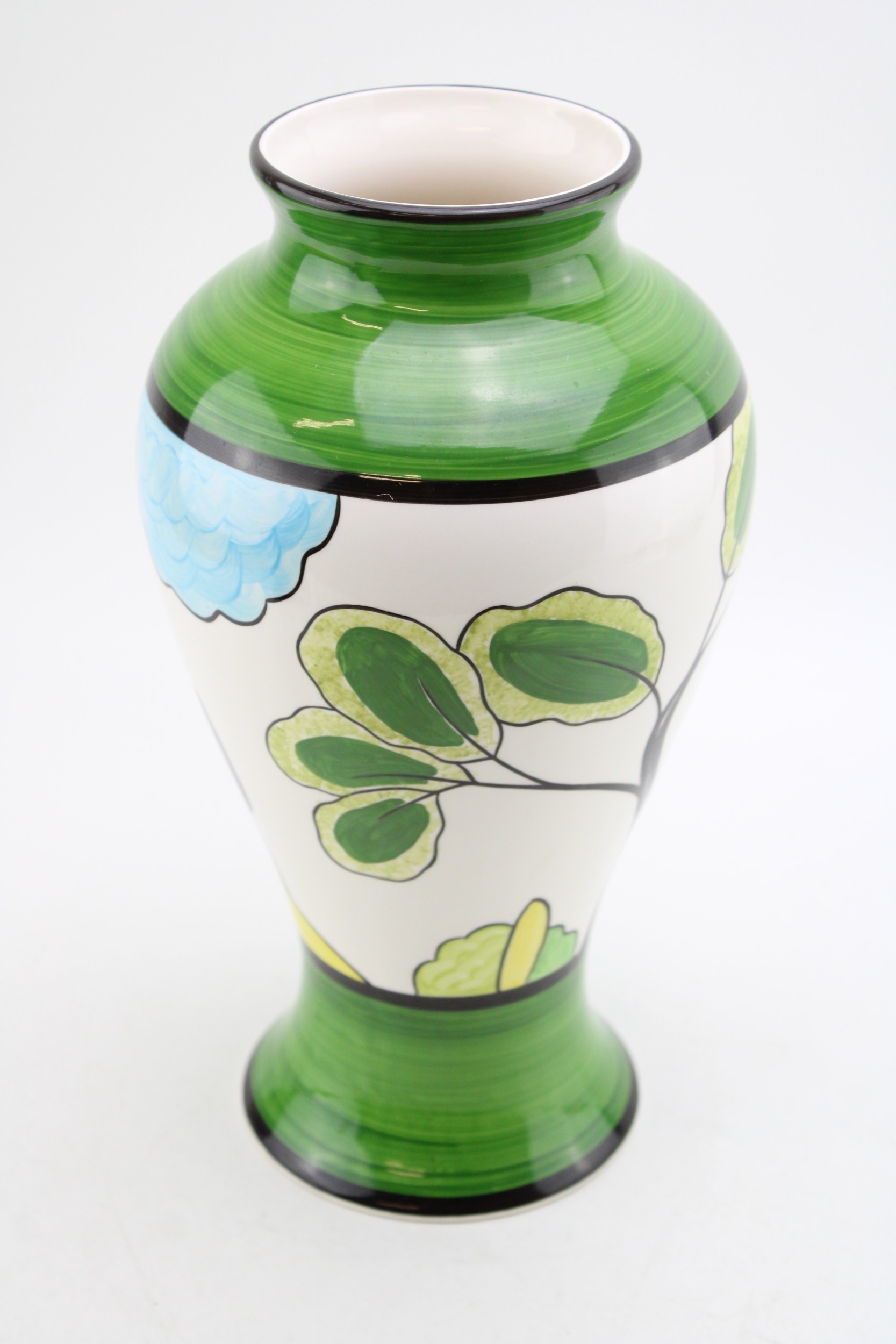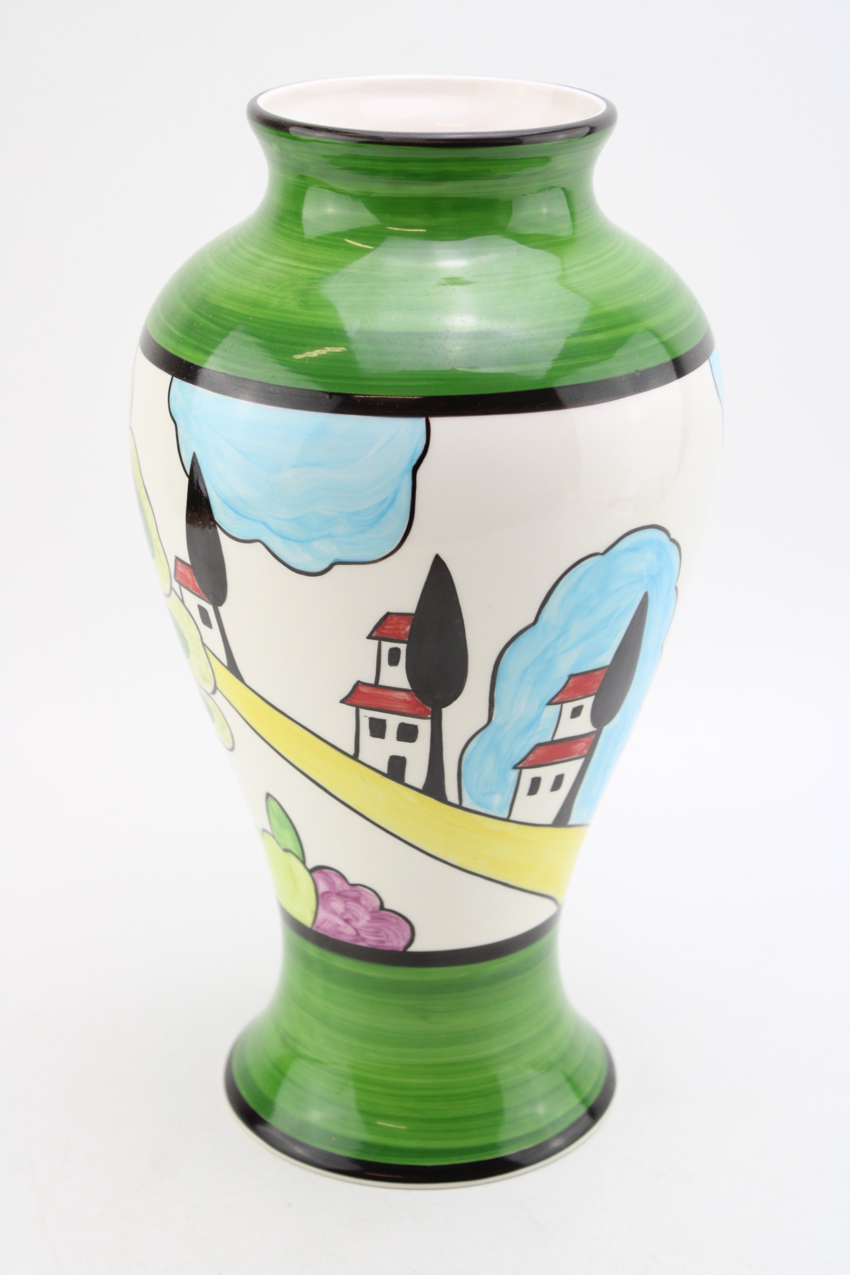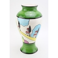 Inspired by Clarice Cliff, probably Wedgwood, a trial vase in the May Avenue design in unusual green colourway, stamped to base, 30.5cm tall.