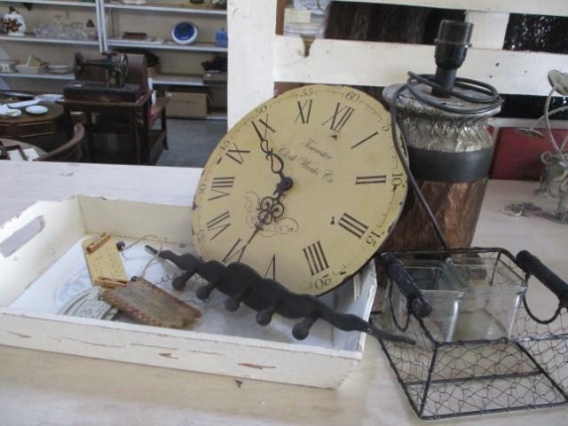 Collection of Assorted Items inc Wall Clock, Wooden Tray, Hand Made Table Lamp & others