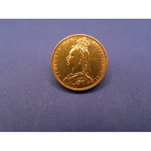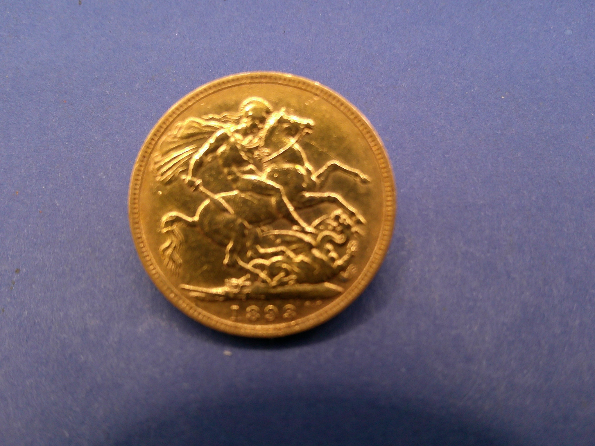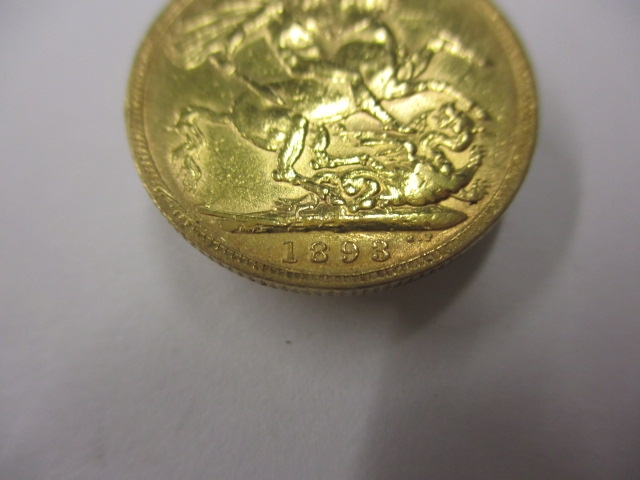 A Victorian gold sovereign dated 1893, a circulated coin with very fine definition of features
