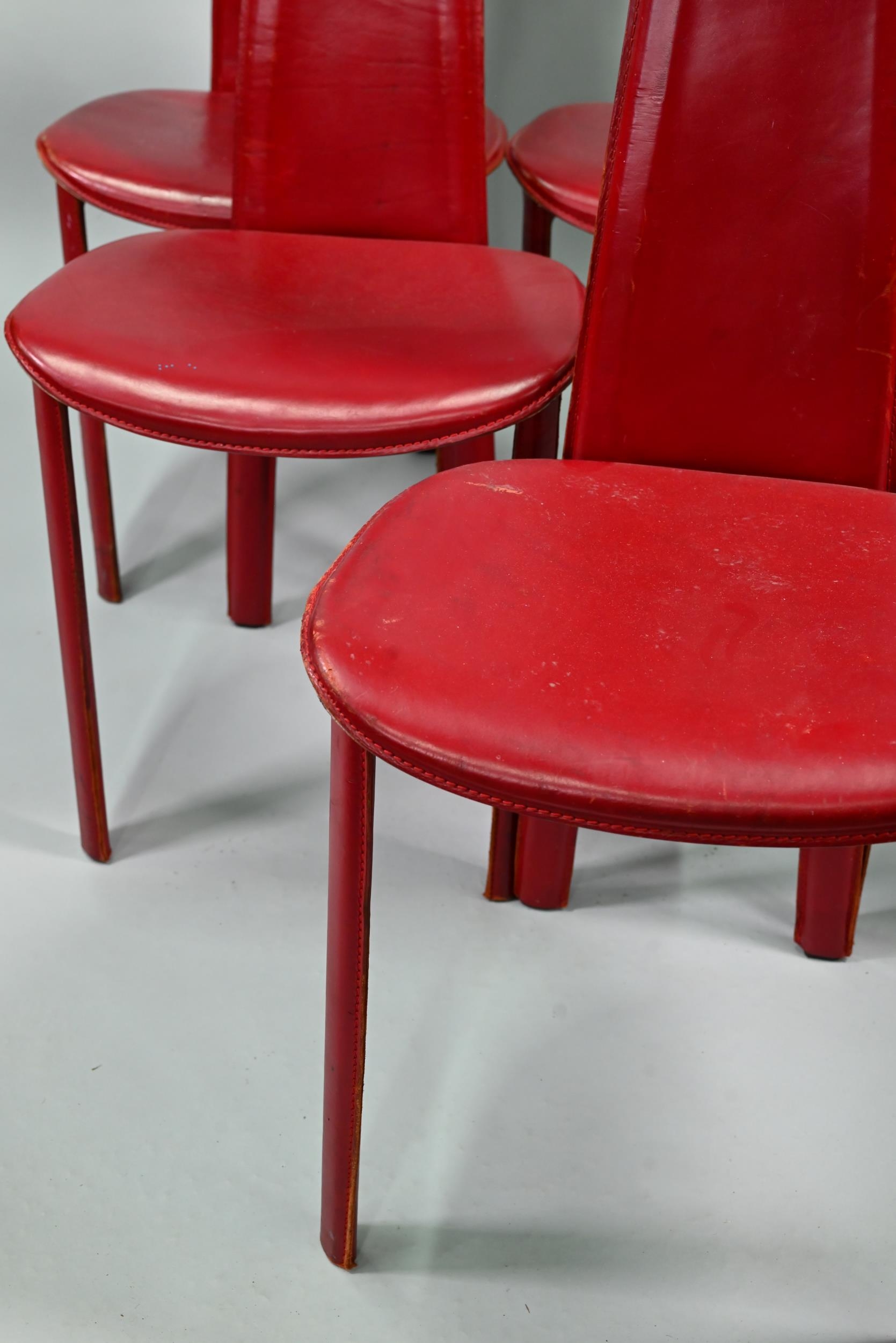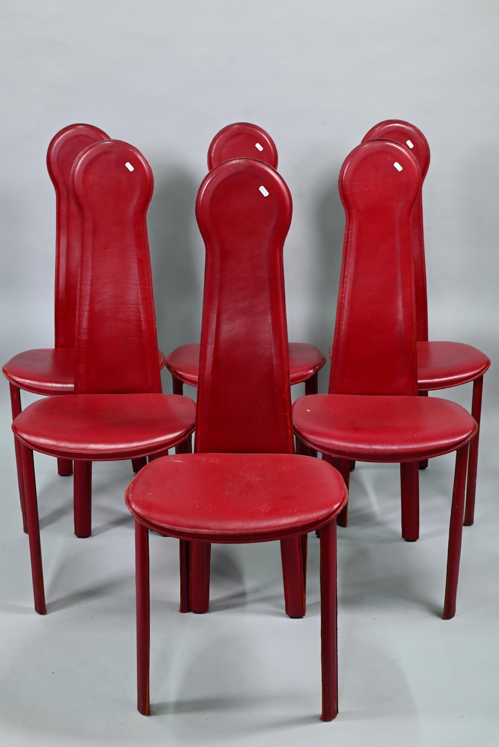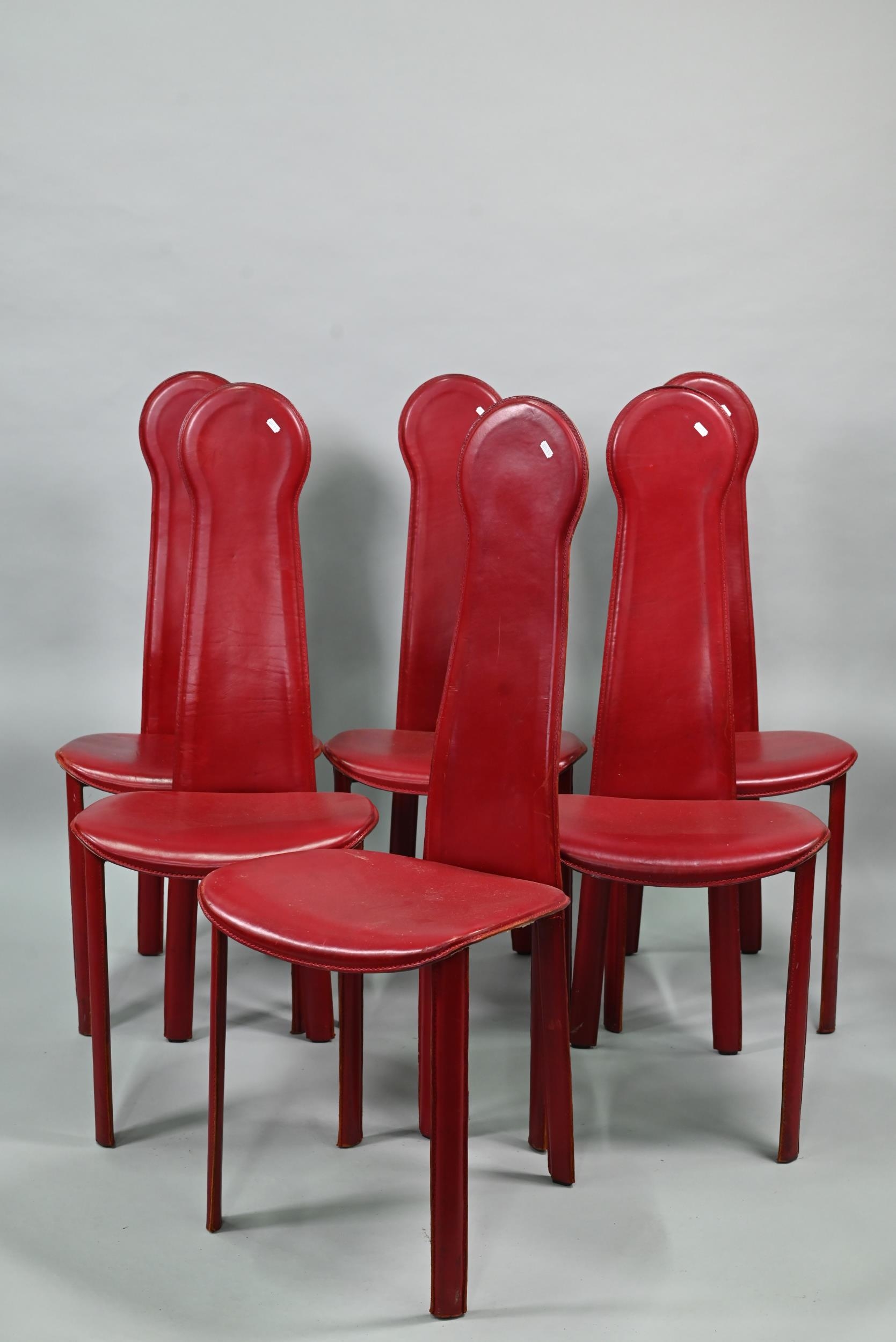 A set of six Italian 'Arper' red leather covered dining side chairs (6)