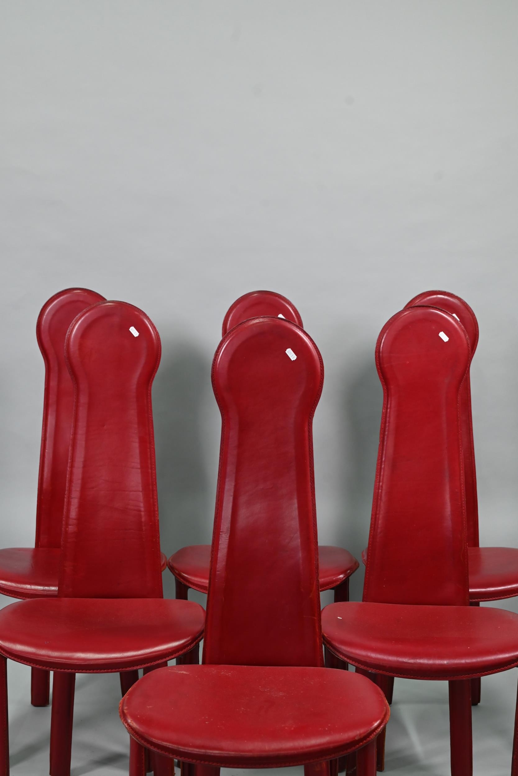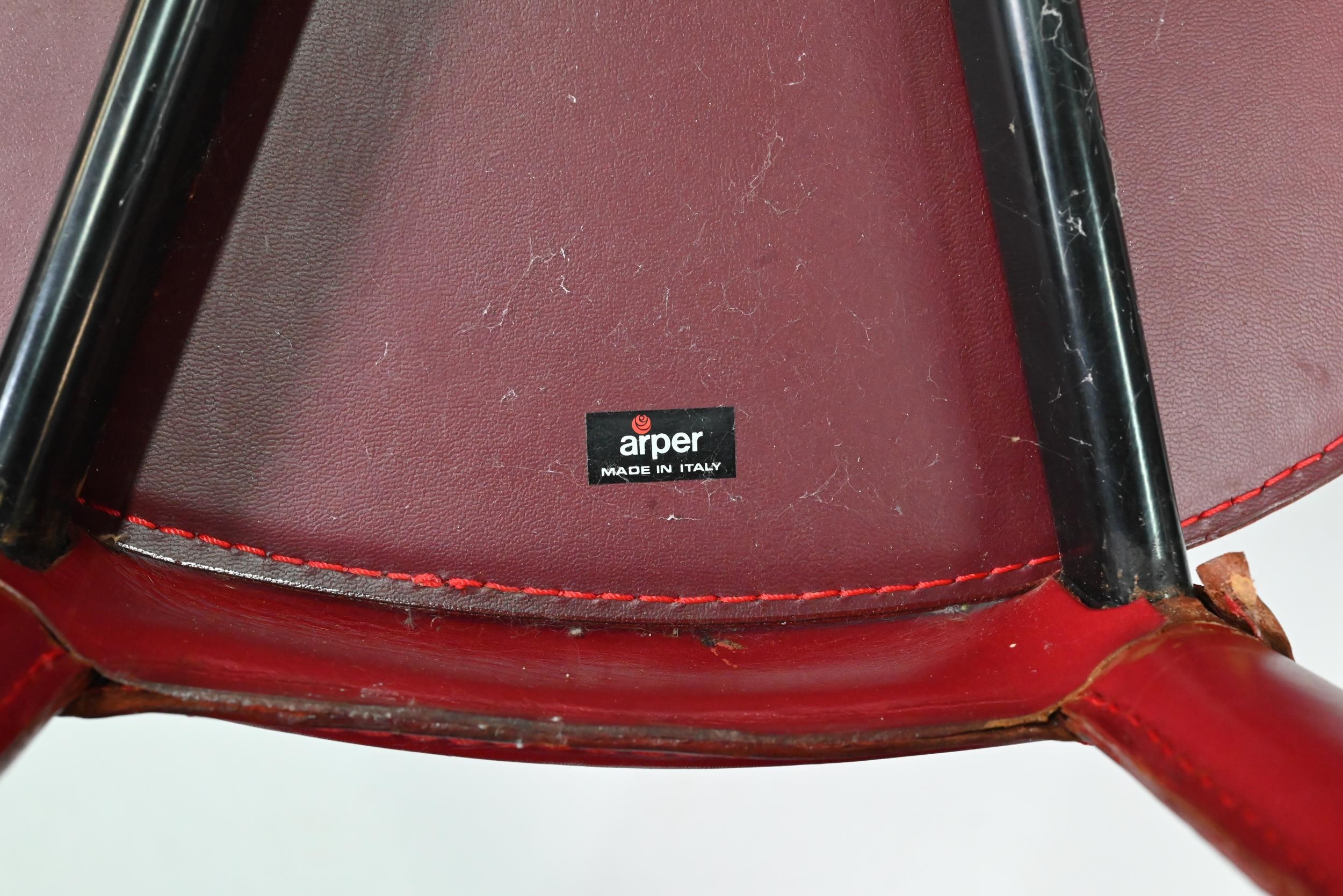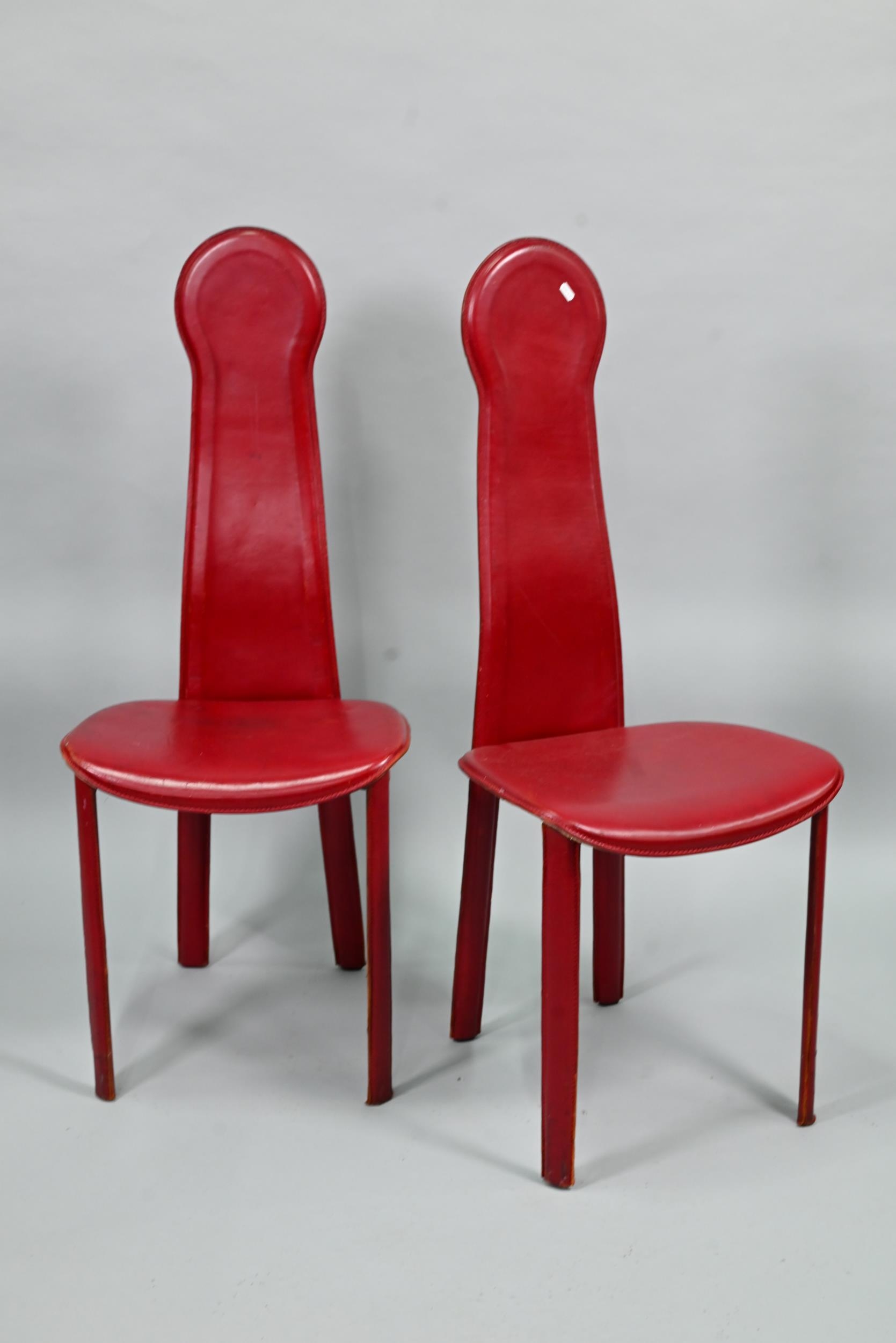 A set of six Italian 'Arper' red leather covered dining side chairs (6)