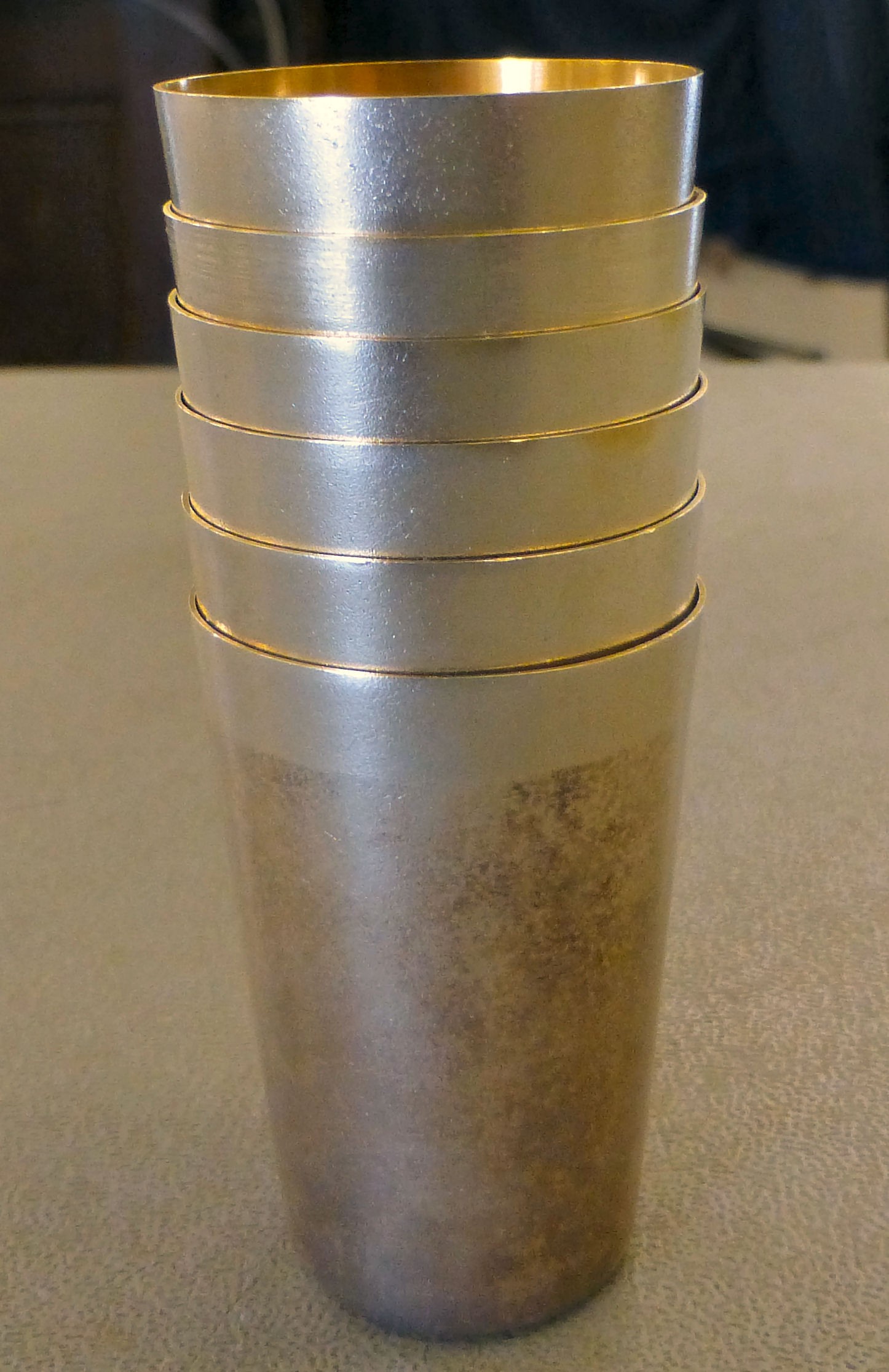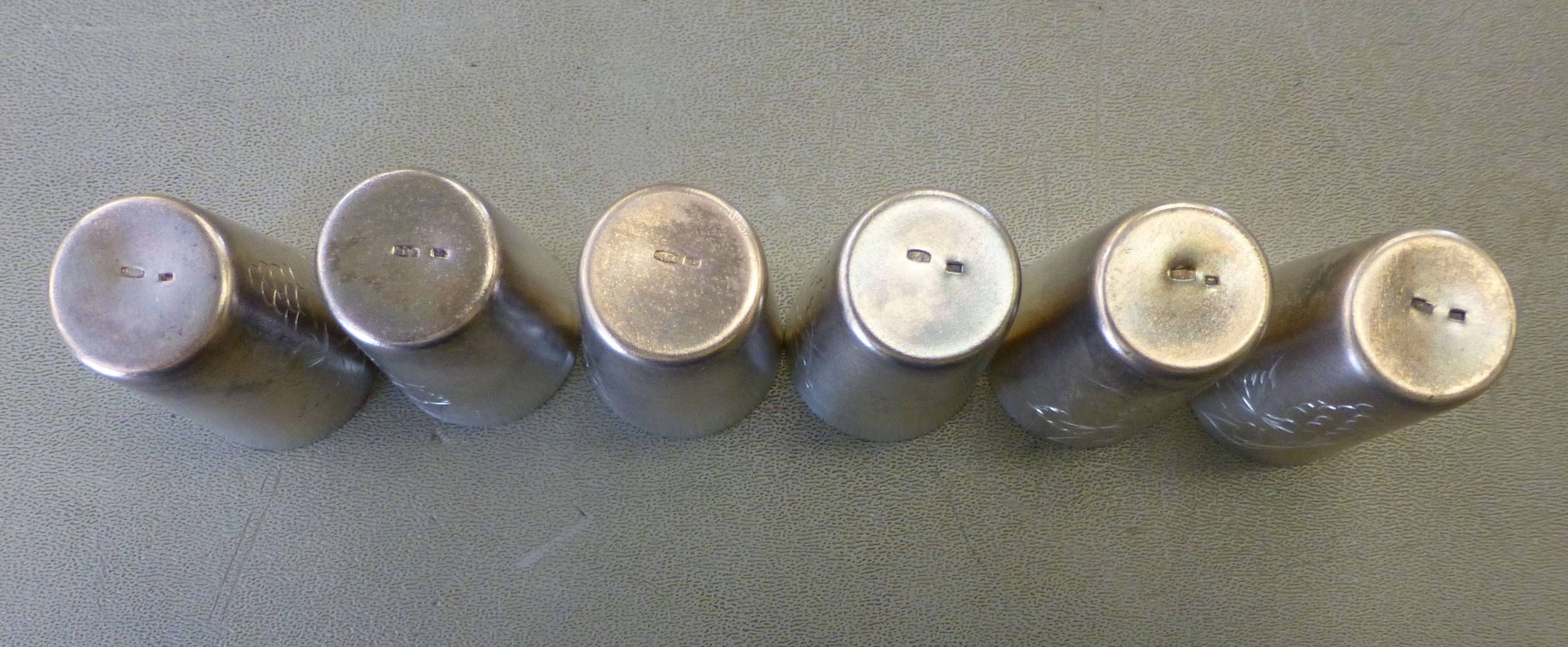 Six silver gilt tot cups stamped 875 (combined gross weight 140grms)
